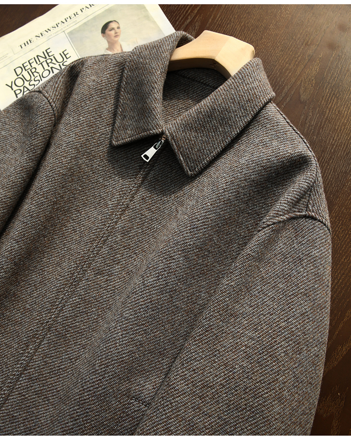 Повседневная повседневная мужская куртка на молнии из овечьей шерсти с лацканами/короткое пальто