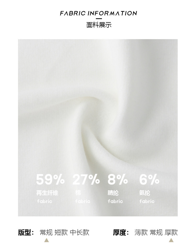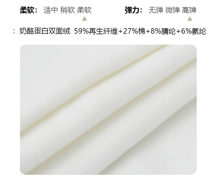 Composición de materiales Fibra de celulosa regenerada 59%, algodón 27%, fibra de poliacrilonitrilo (acrílico) 8%, fibra elástica de poliuretano (spandex) 6%