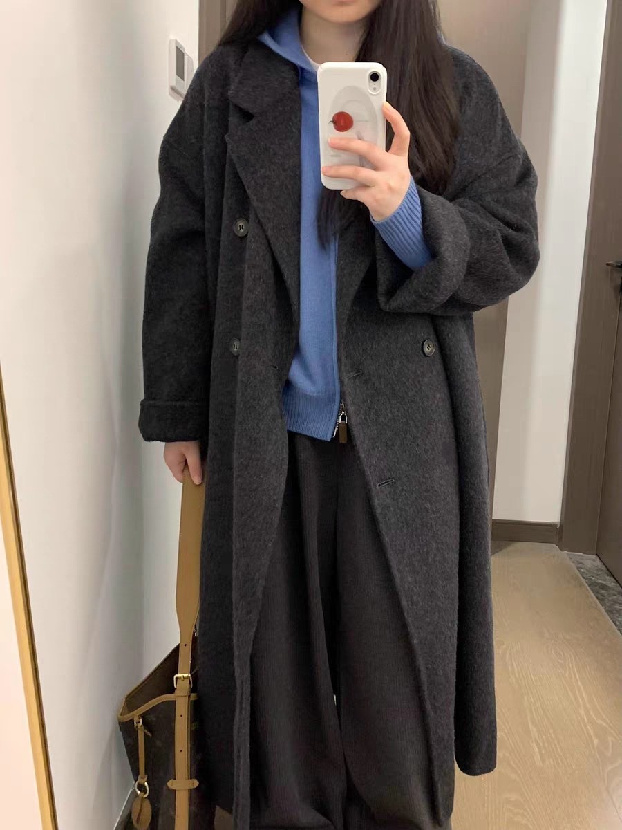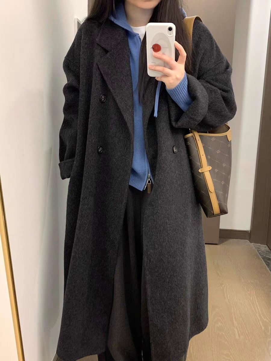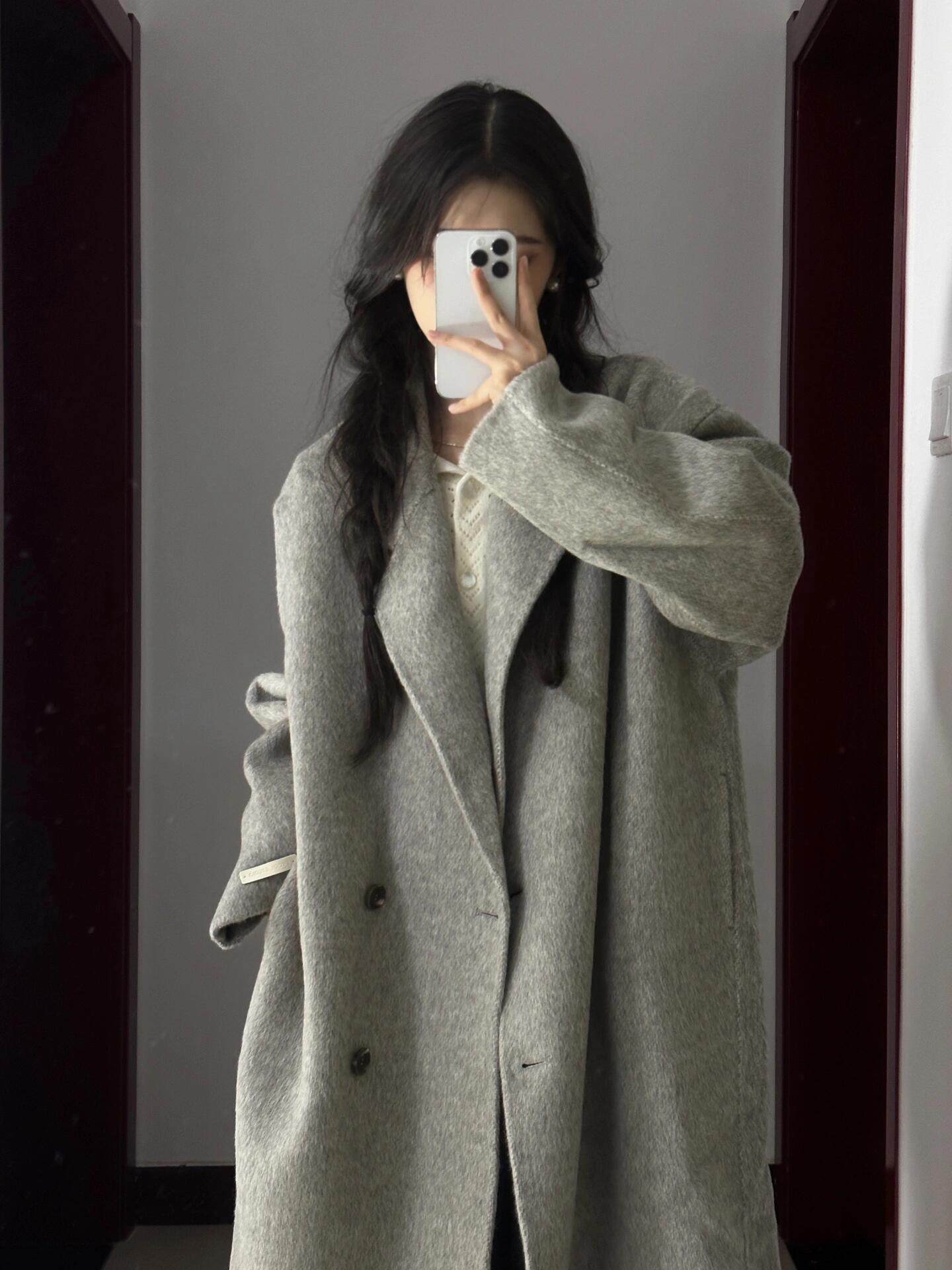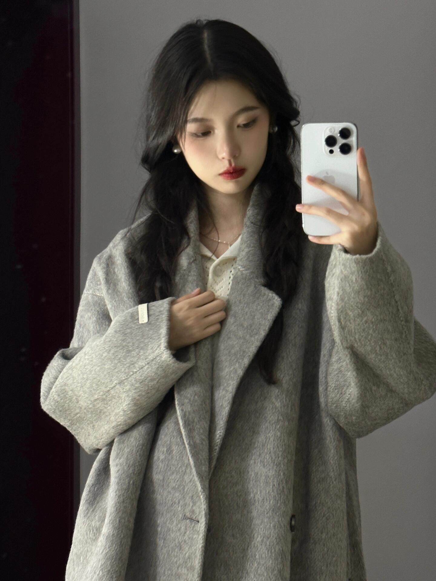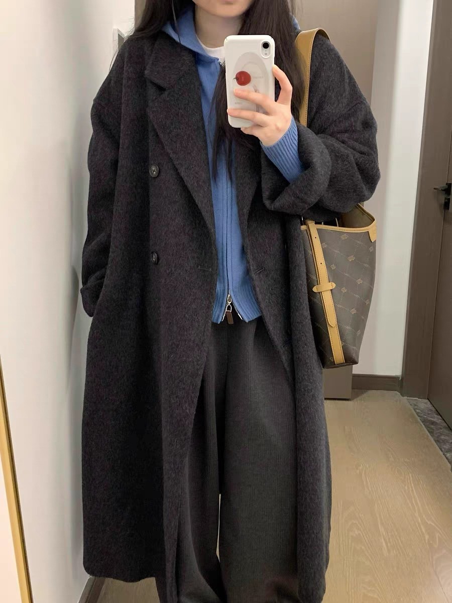 Double-Sided Cashmere Coat for Women, Korean Style, Mid-Length, 2025 Autumn and Winter New Style, Loose Fit, High-End Woolen Coat for Petite Women