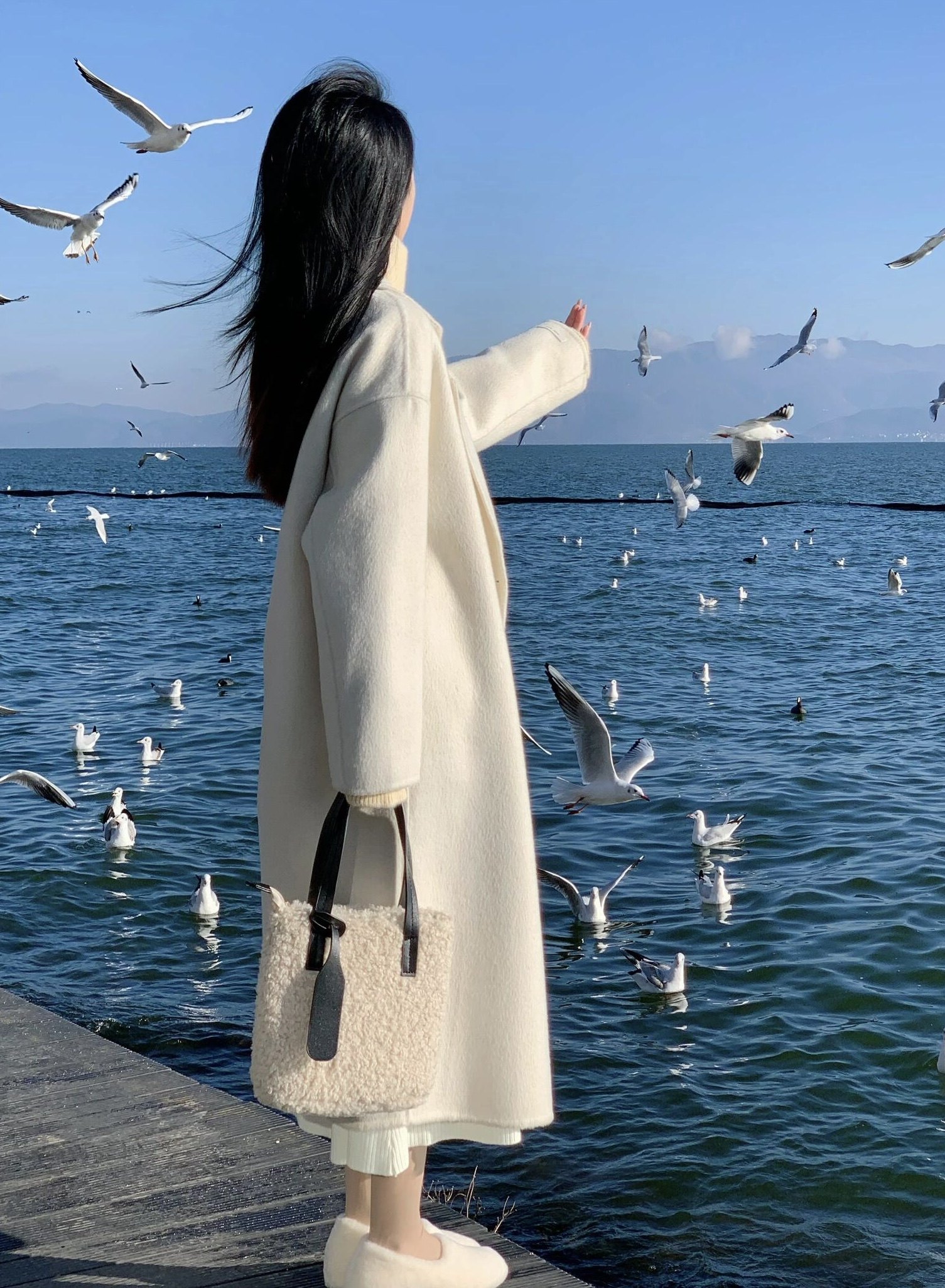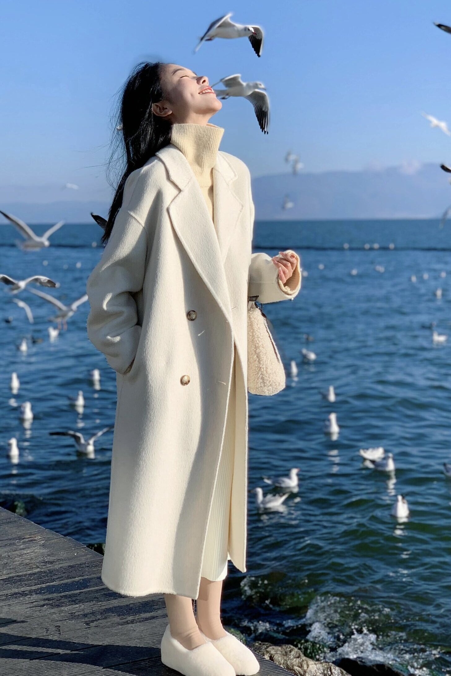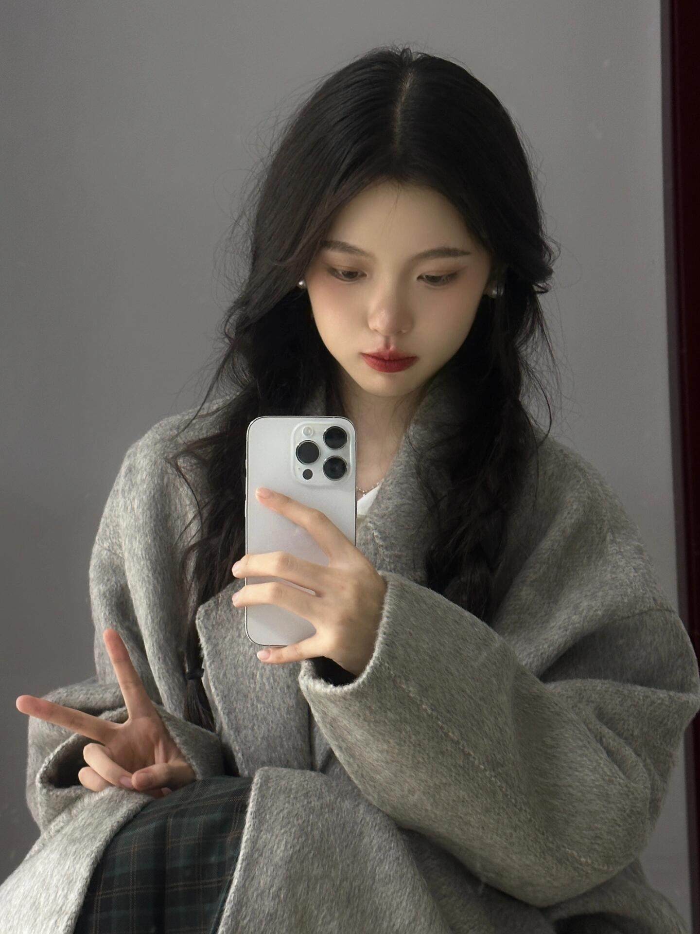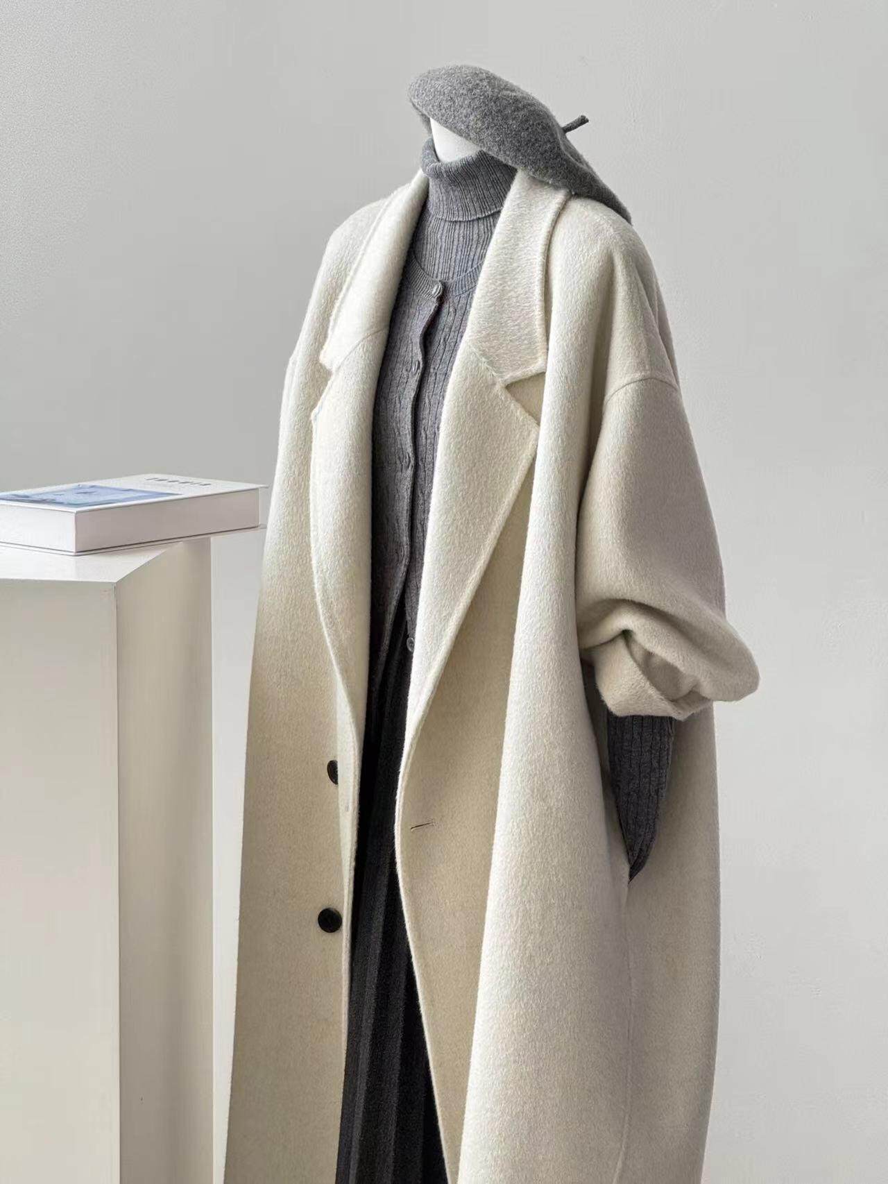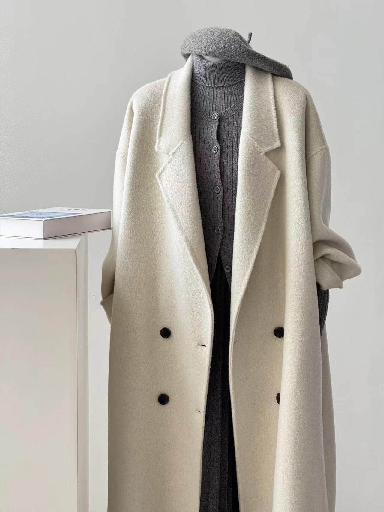 Double-Sided Cashmere Coat for Women, Korean Style, Mid-Length, 2025 Autumn and Winter New Style, Loose Fit, High-End Woolen Coat for Petite Women