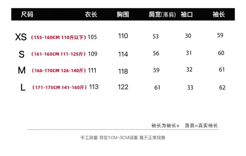 Size XS Recommended 153-160cm,S Recommended 161-170cm,M Recommended 165-170cm,L Recommended 168-175cm