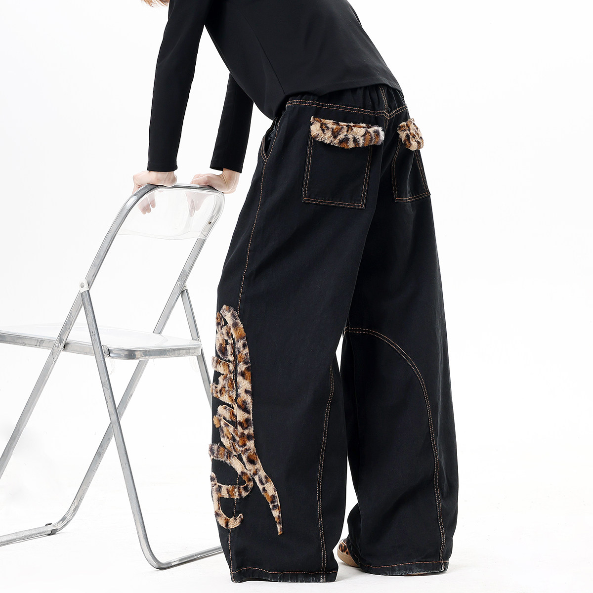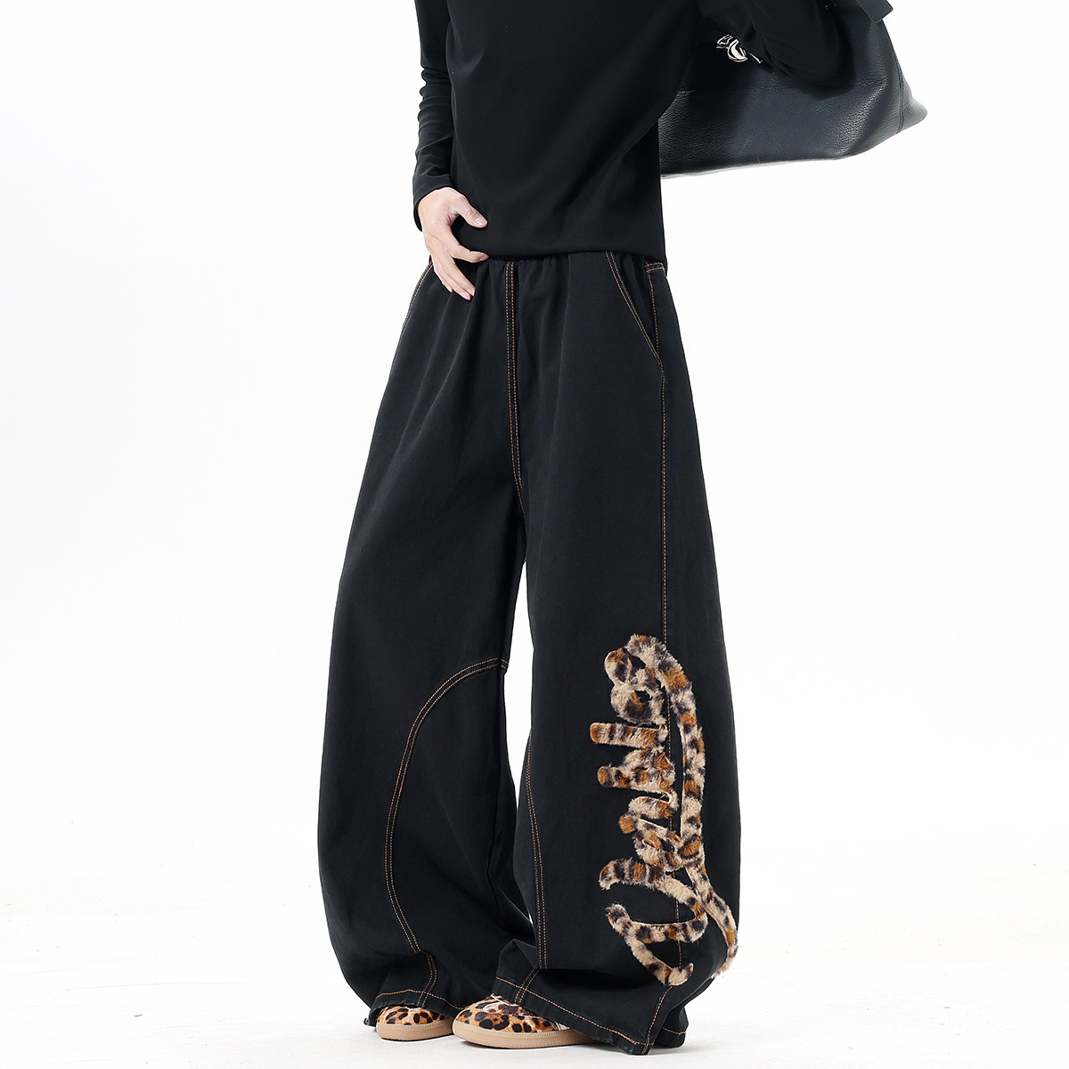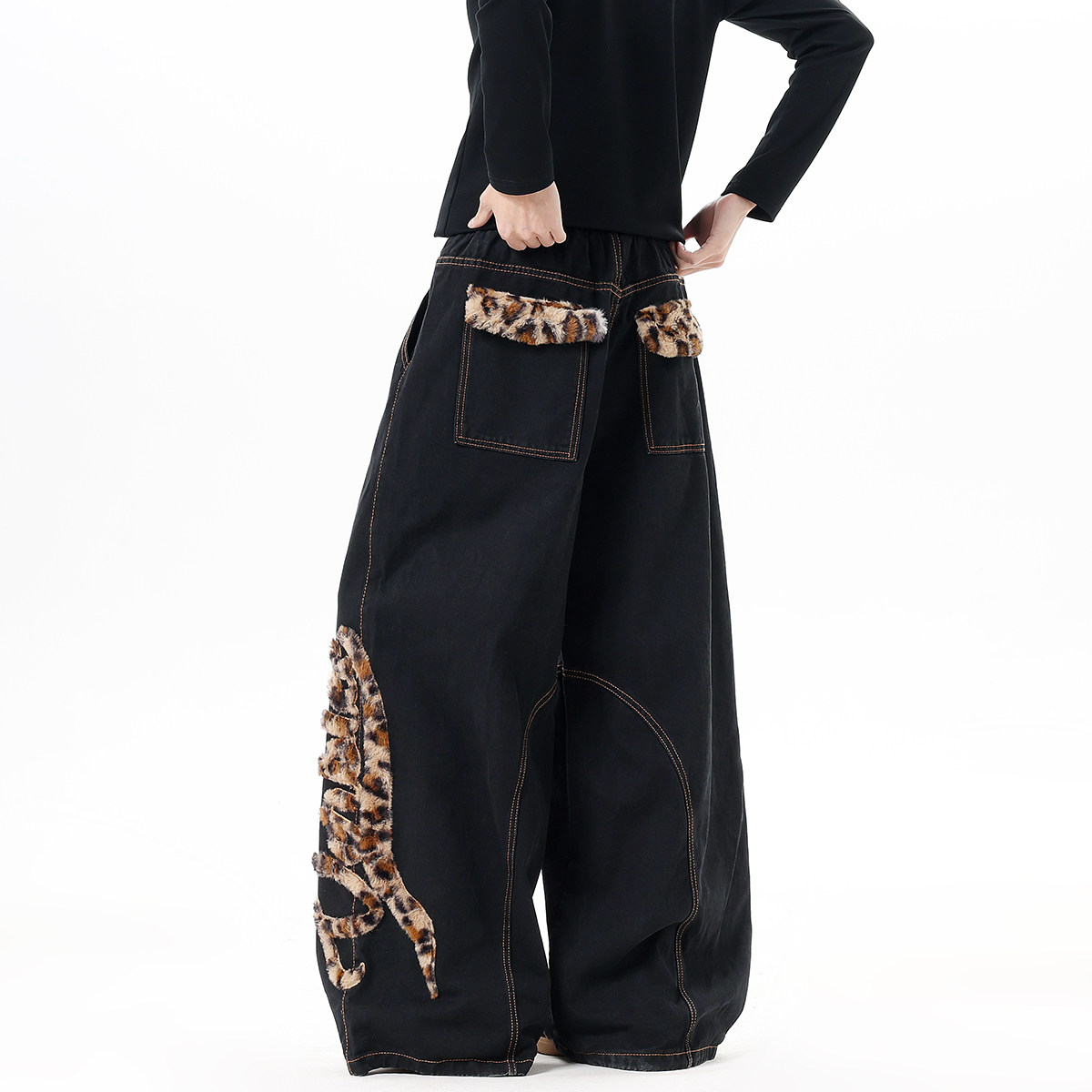 Мужские джинсы в американском стиле с модным леопардовым принтом, весенние брюки-сцимитары с вышивкой, винтажные широкие брюки в пол