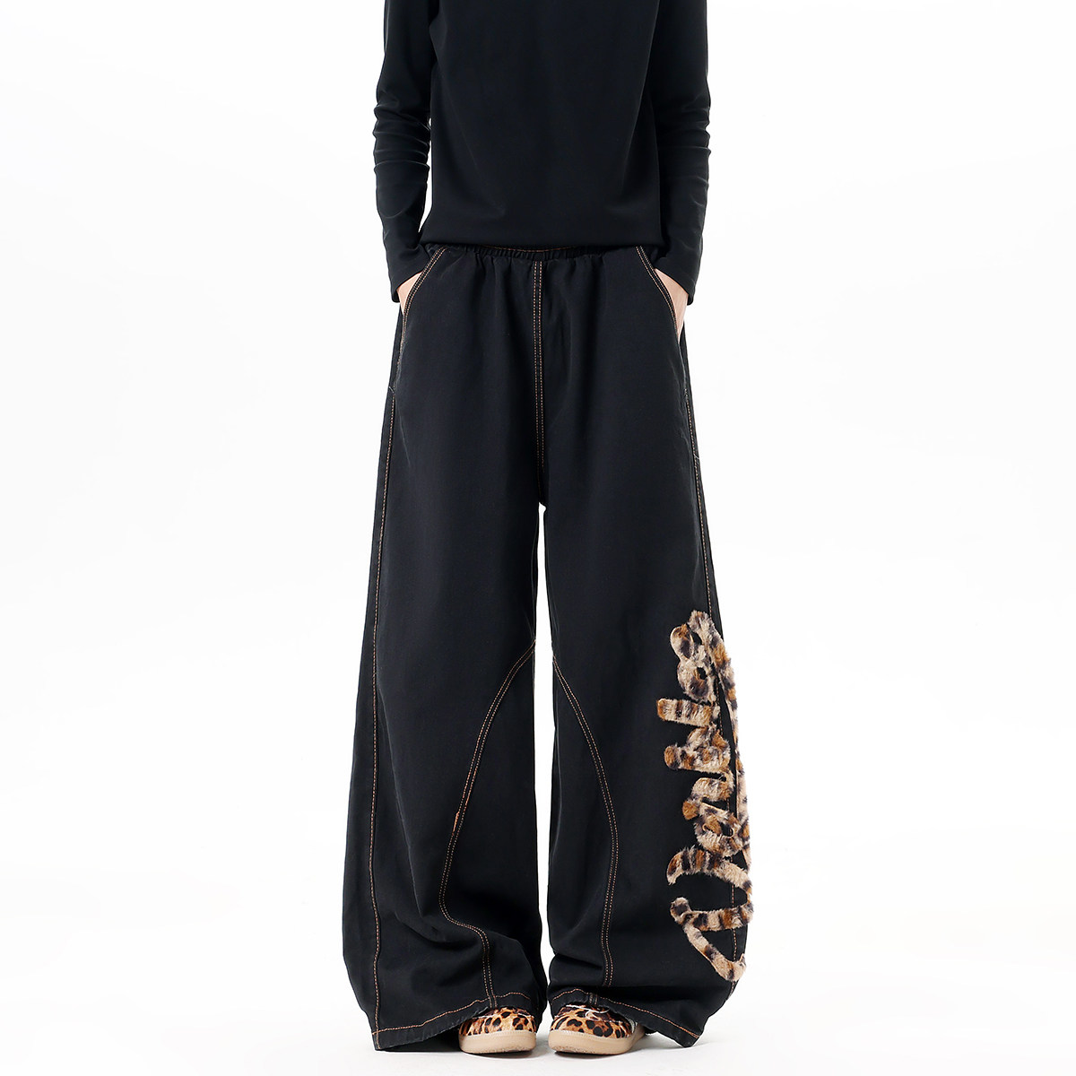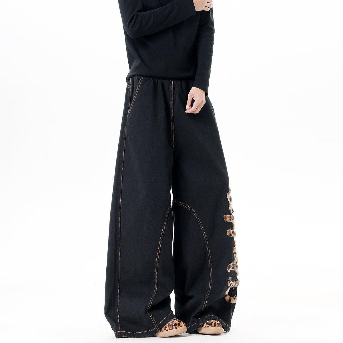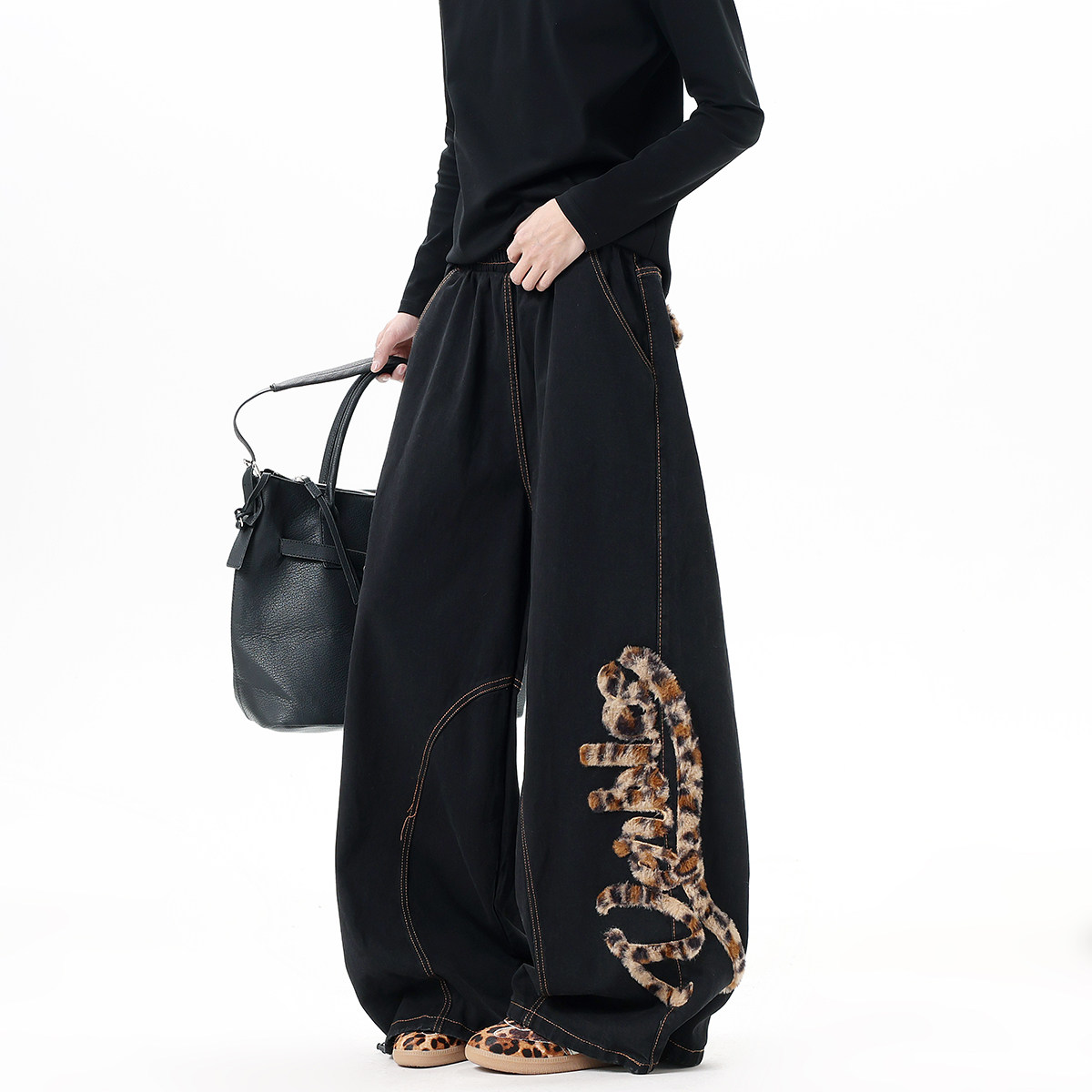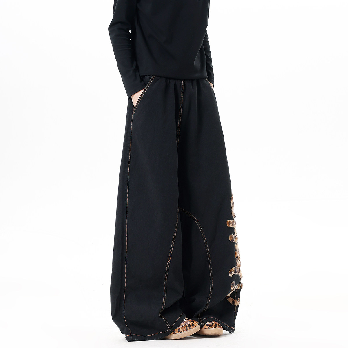 Мужские джинсы в американском стиле с модным леопардовым принтом, весенние брюки-сцимитары с вышивкой, винтажные широкие брюки в пол
