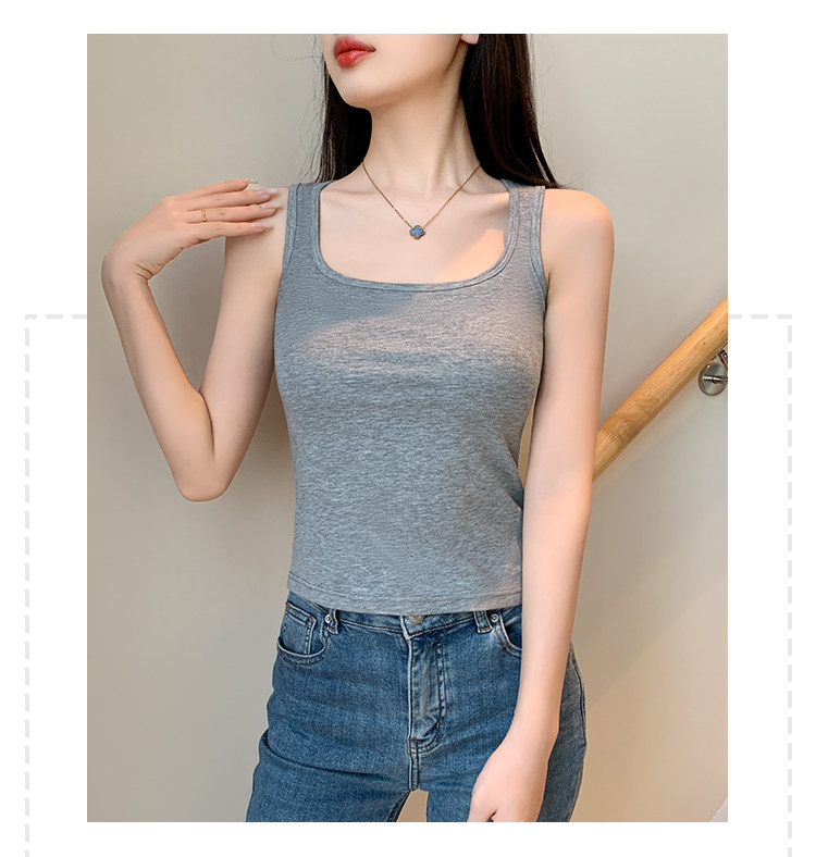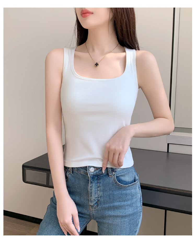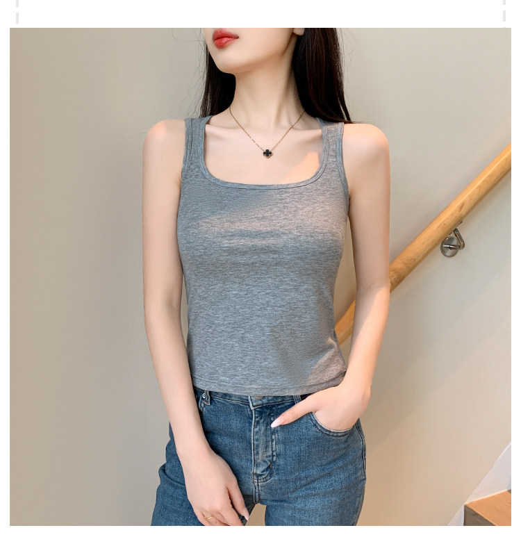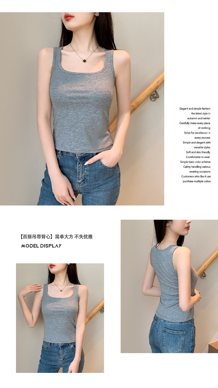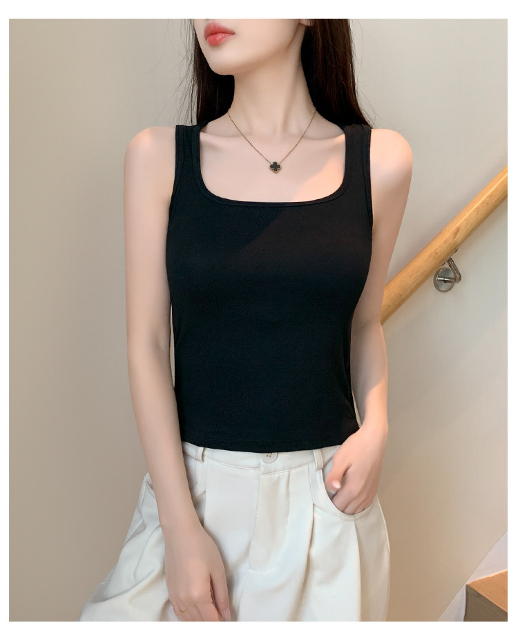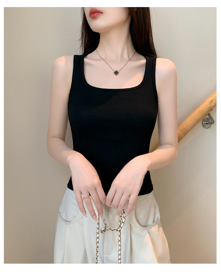 方领黑色吊带背心女带胸垫内搭美背一体遮副乳打底工字无袖上衣