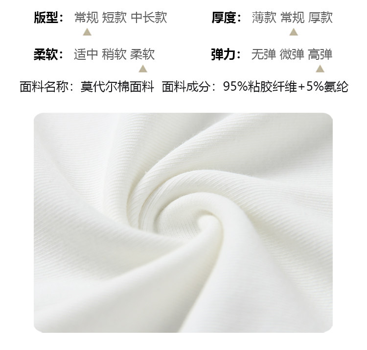 材质成分 粘胶纤维(粘纤)95% 聚氨酯弹性纤维(氨纶)5%