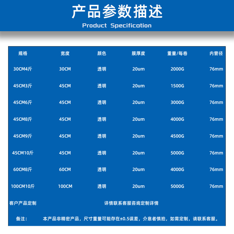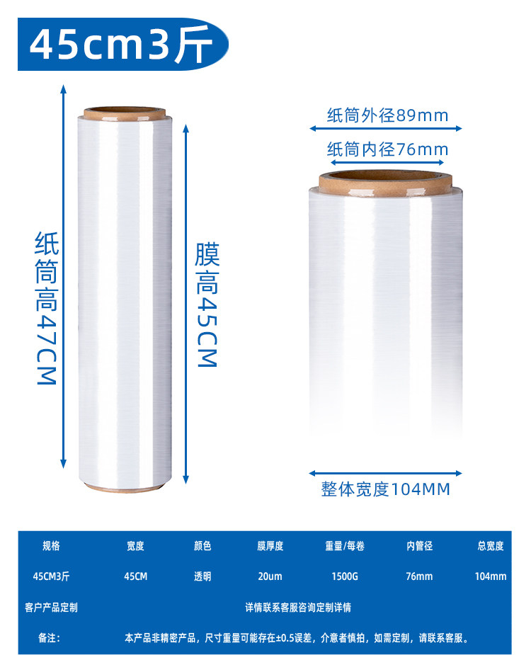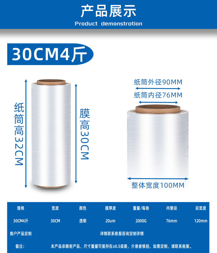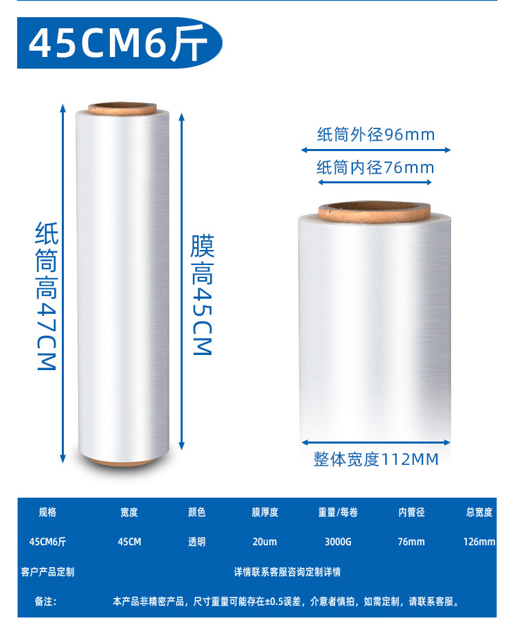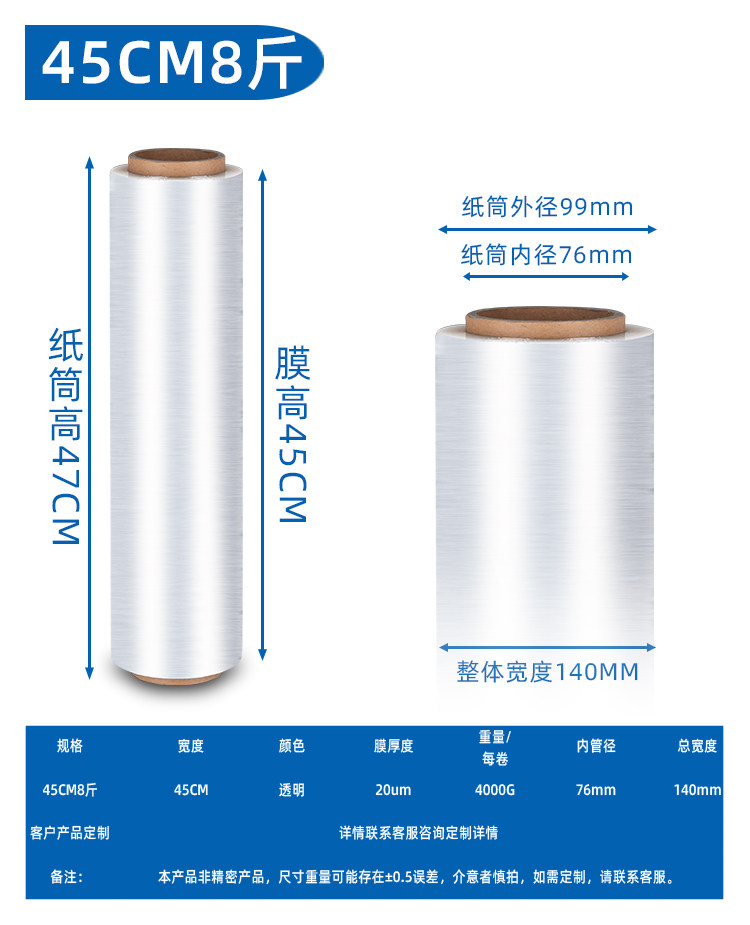 Pe Stretch Film Industrial Cling Film Packaging Film Stretch Film Protective Film Packaging Film Thin Circumference Film 4.0Kg45Cm