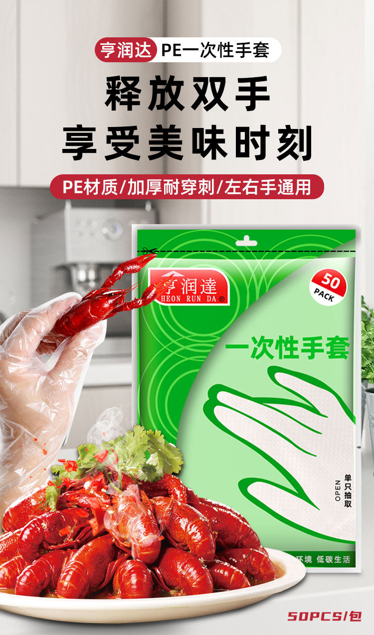 Disposable Gloves Food Catering Film Transparent Thickened Plastic Gloves Lobster Gloves Beauty Hand Mask Pe Gloves