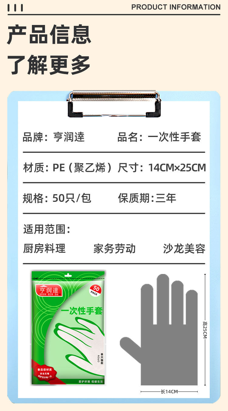 Color Classification Transparent,50 Pe Gloves Thickened Version