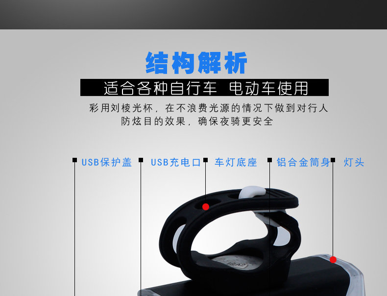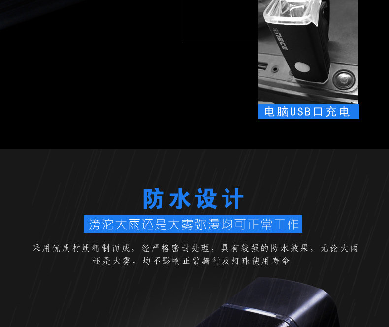 自行车灯山地车前灯强光手电筒USB充电防水骑行装备配件