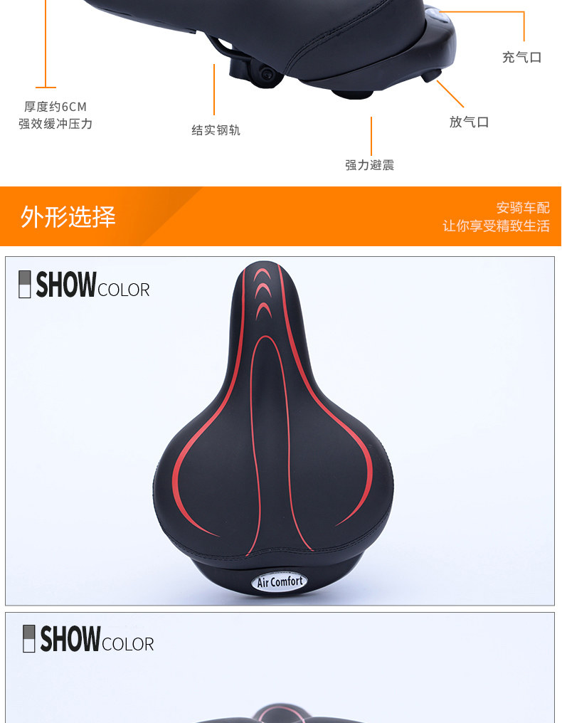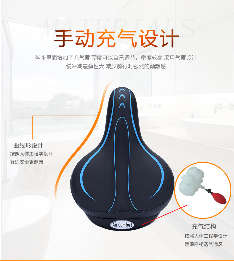Inflatable Mountain Bike Seat, Soft Bicycle Cushion, Large Butt Saddle, Comfortable, Widened and Thickened Equipment Accessories