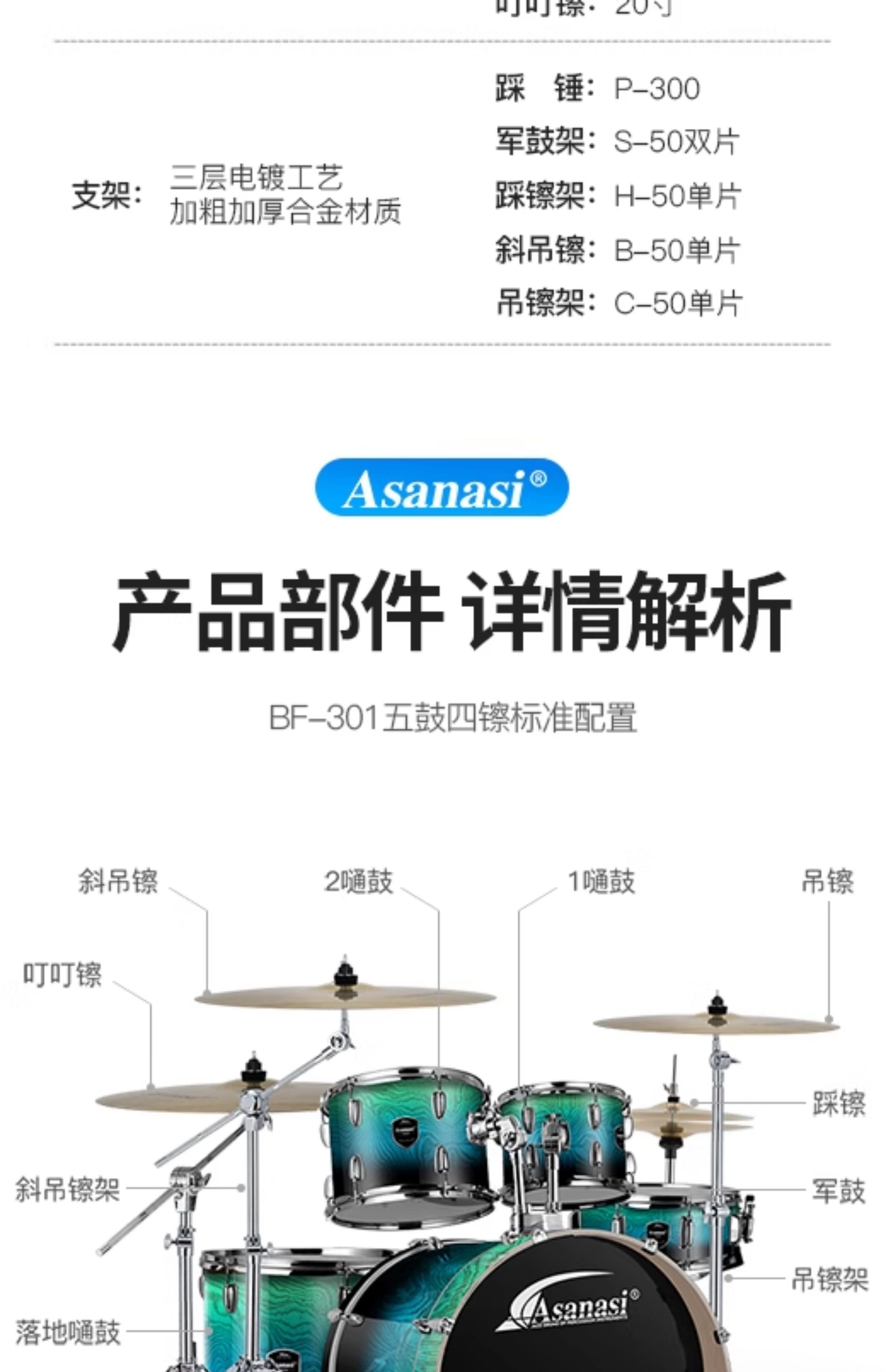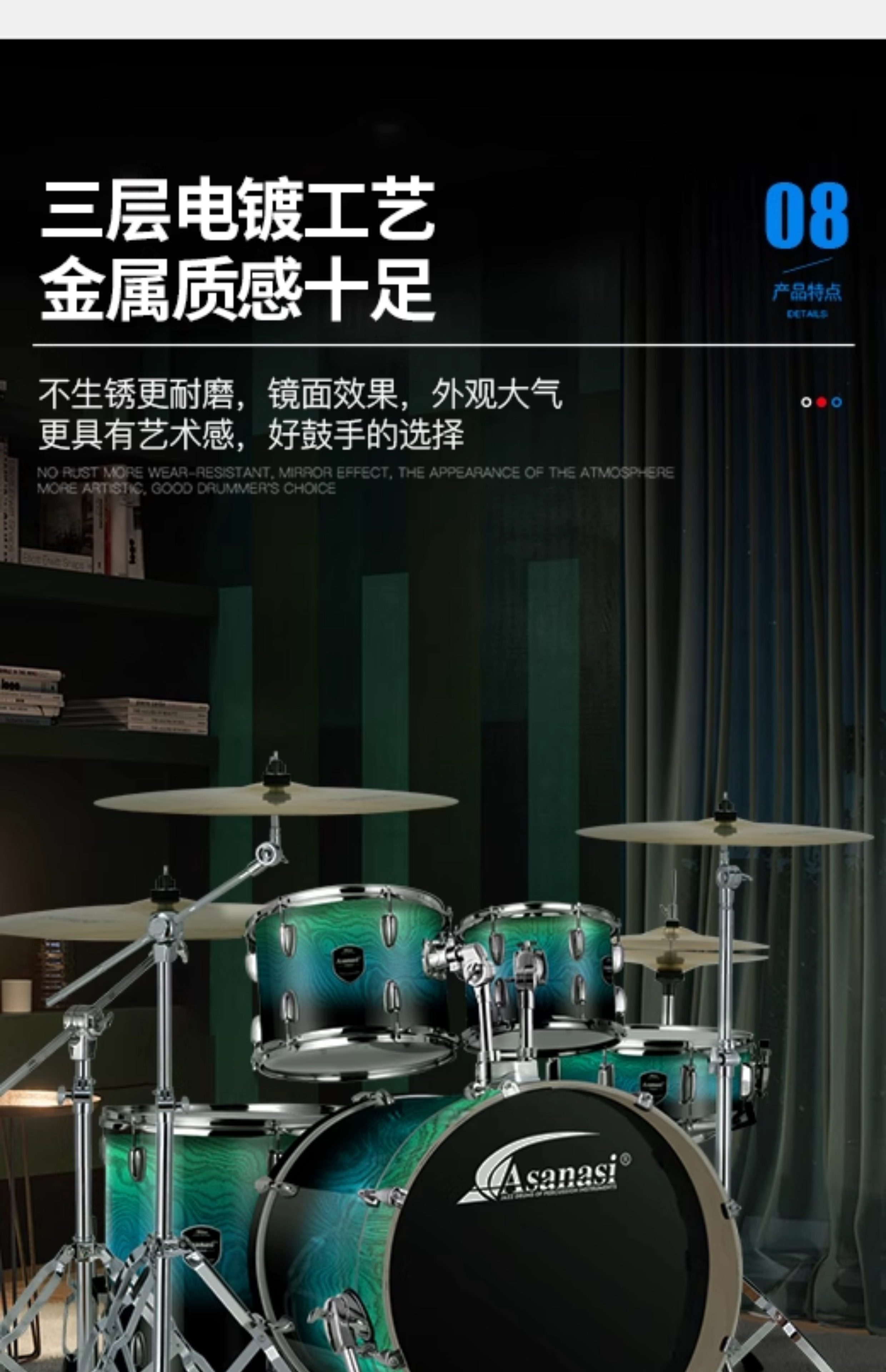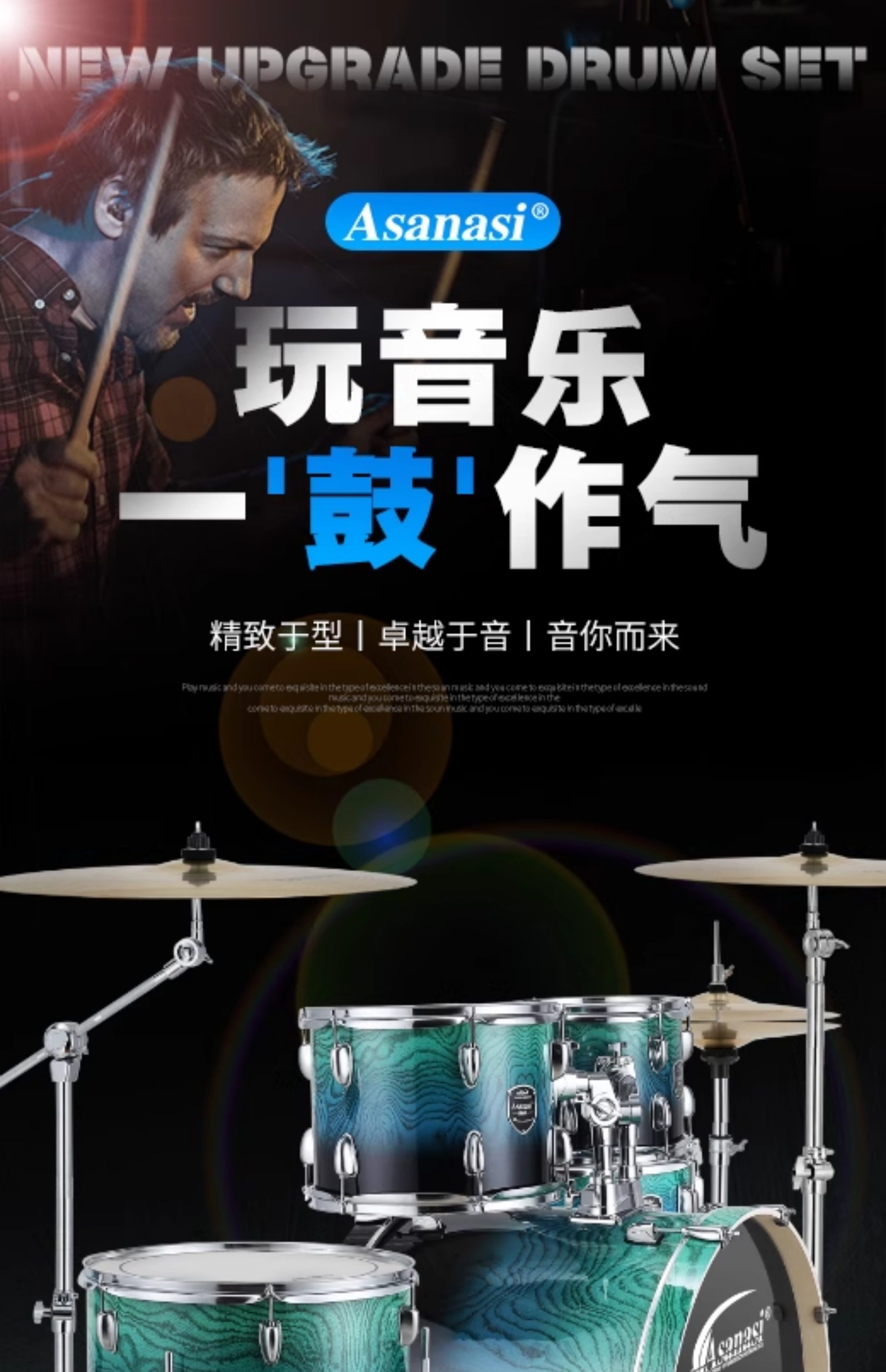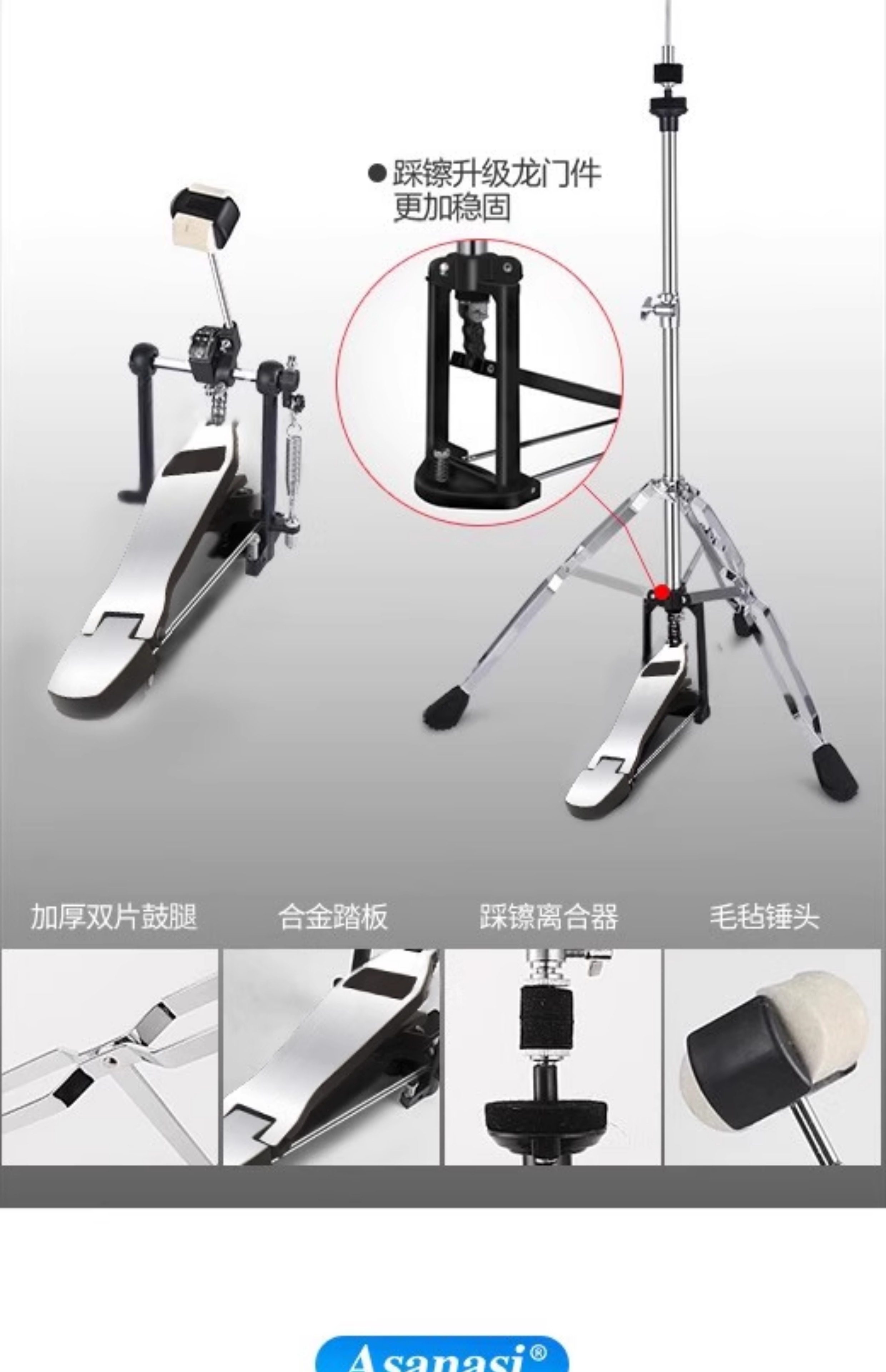 Asanasi架子鼓成人儿童初学者家用爵士鼓5鼓34镲入门练习专业演奏