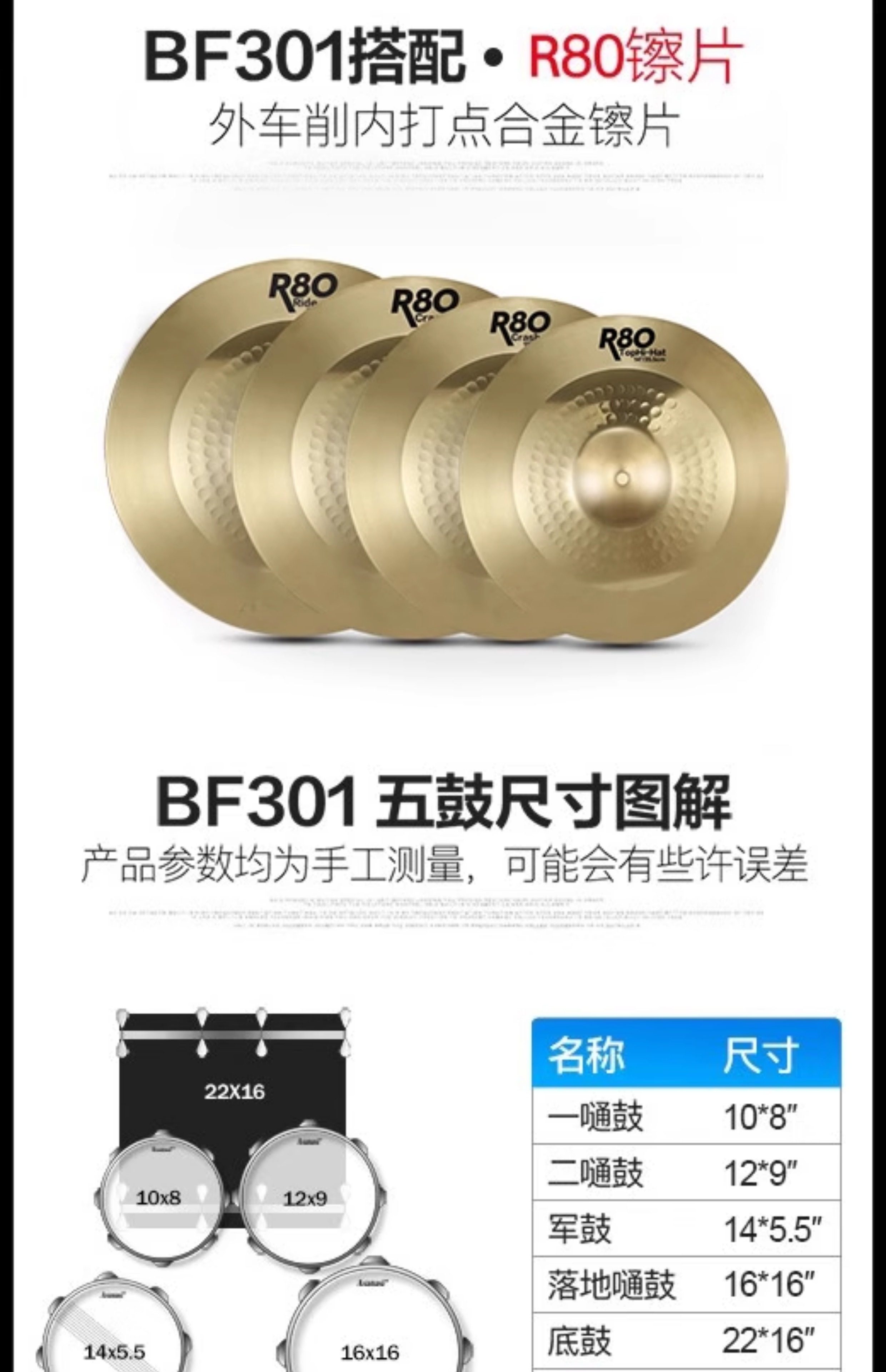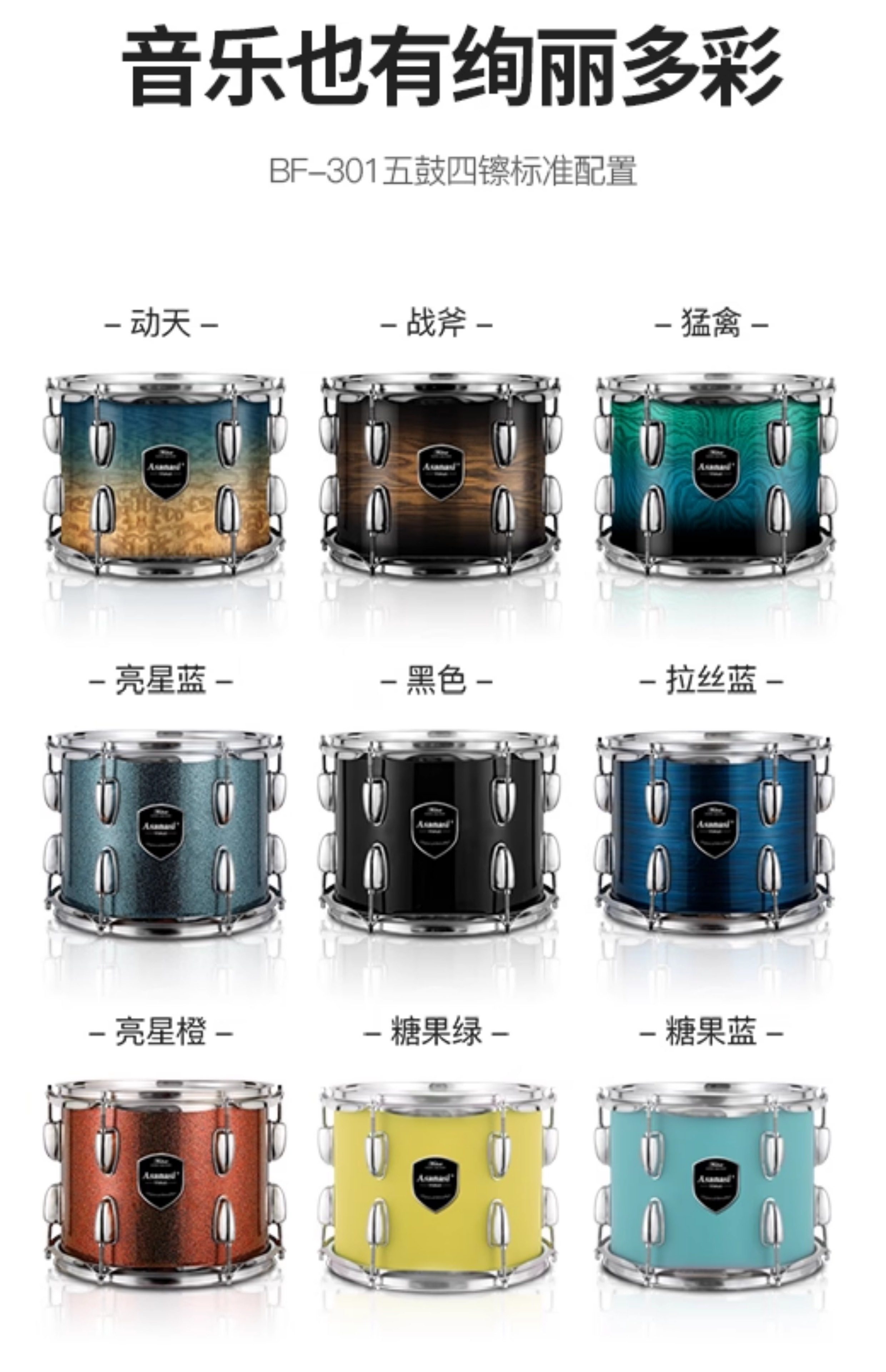 颜色分类 亮黑色5鼓2镲【R70镲片】无赠品,拉丝蓝5鼓2镲【R70镲片】无赠品,酒红色5鼓2镲【R70镲片】无赠品,亮黑色5鼓3镲【R70镲片】,拉丝蓝5鼓3镲【R70镲片】,酒红色5鼓3镲【R70镲片】,拉丝蓝5鼓4镲【R70镲片】,亮黑色5鼓4镲【R70镲片】,酒红色5鼓4镲【R70镲片】,升级版BF301拉丝蓝5鼓3镲【R80镲片】,升级版BF301亮星蓝5鼓3镲【R80镲片】,升级版BF301亮黑色5鼓3镲【R80镲片】,升级版BF301拉丝蓝5鼓4镲【R80镲片】,升级版BF301亮星蓝5鼓4镲【R80镲片】,升级版BF301亮黑色5鼓4镲【R80镲片】,新升级BF301猛禽款5鼓3镲【R80镲片】,新升级BF301猛禽款5鼓4镲【R80镲片】,新升级BF301战斧款5鼓3镲【R80镲片】,新升级BF301战斧款5鼓4镲【R80镲片】,新升级BF301动天款5鼓3镲【R80镲片】,新升级BF301动天款5鼓4镲【R80镲片】,配弱音鼓皮请联系客服