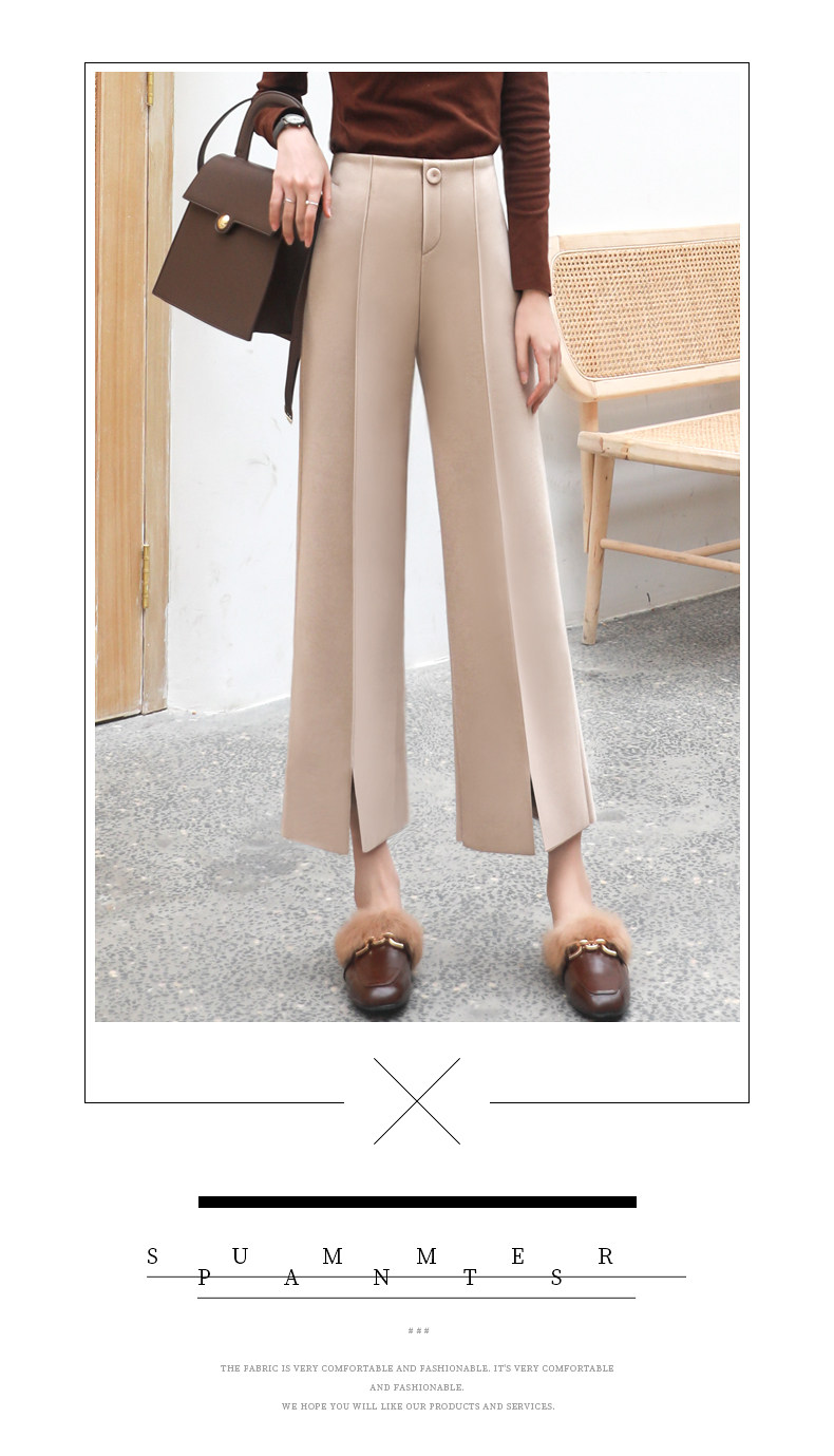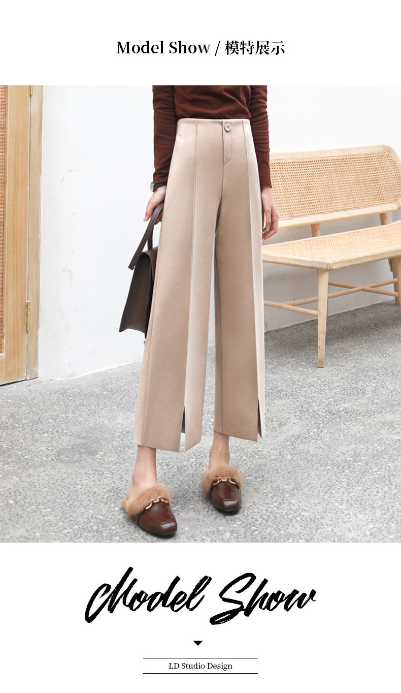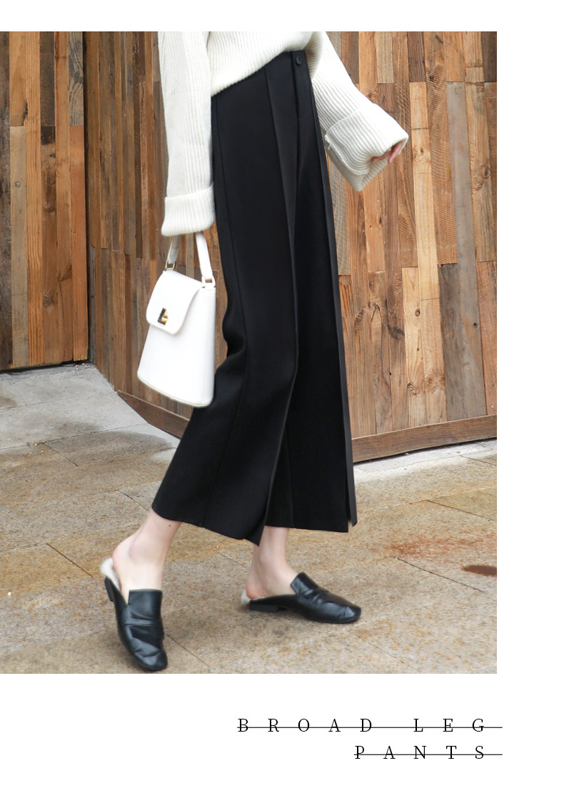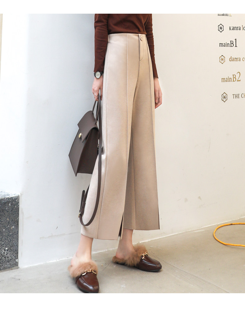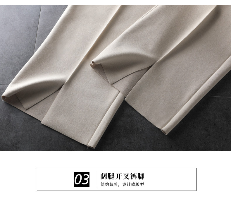 Wollhose mit weitem Bein für Damen, neuer Stil für Frühling, Herbst und Winter 2025, drapiert, hoch tailliert, schmal, lässig, neun Punkte, klein, gebrochenes Weiß