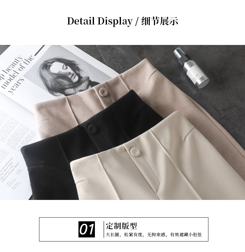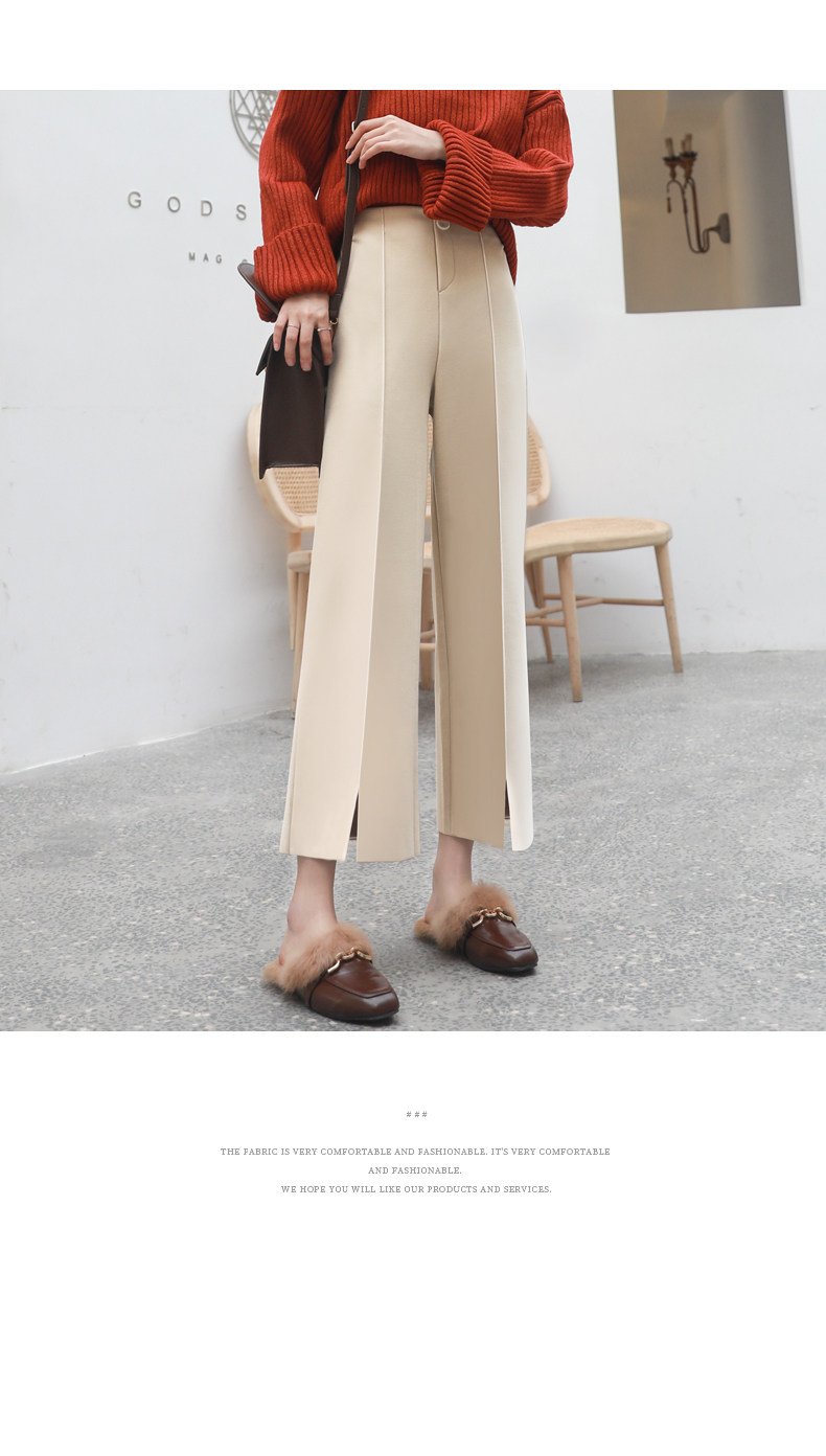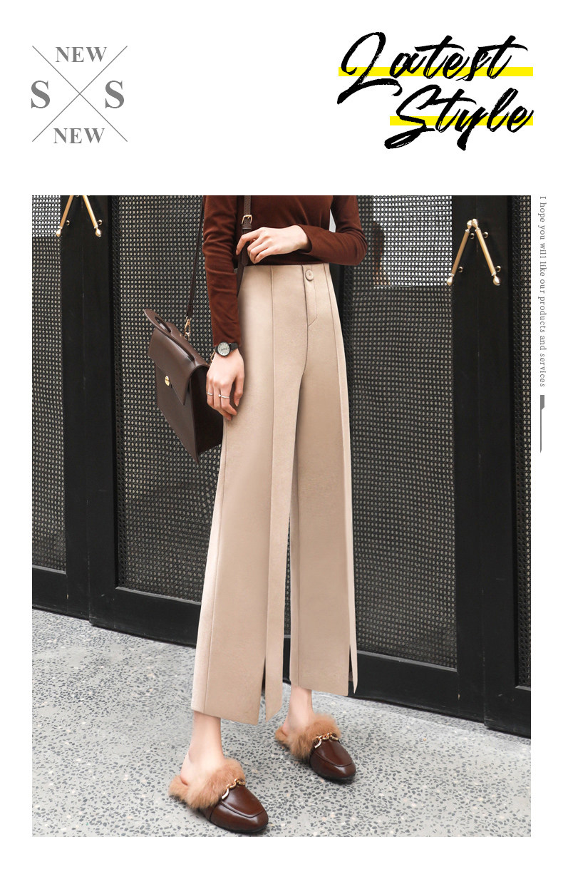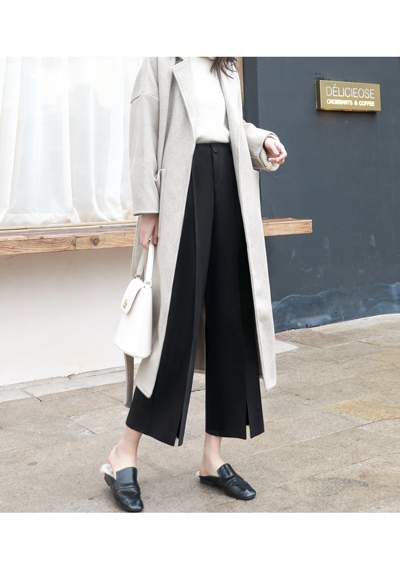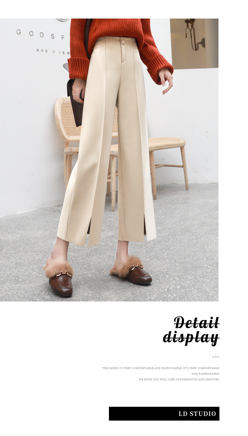 Wollhose mit weitem Bein für Damen, neuer Stil für Frühling, Herbst und Winter 2025, drapiert, hoch tailliert, schmal, lässig, neun Punkte, klein, gebrochenes Weiß