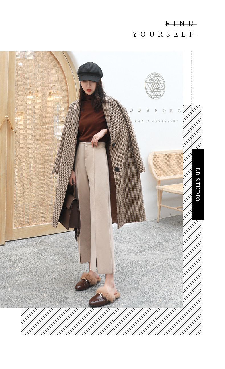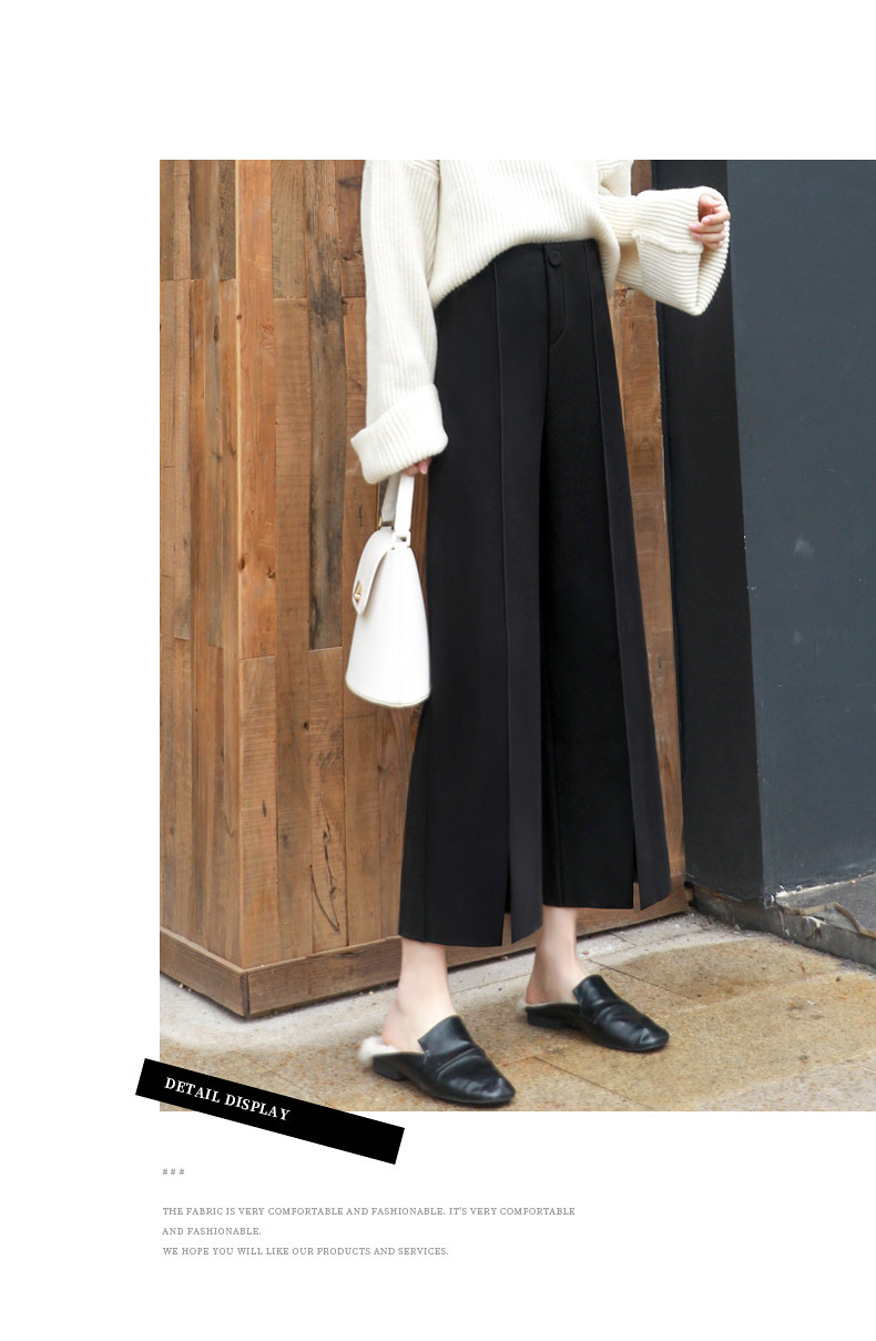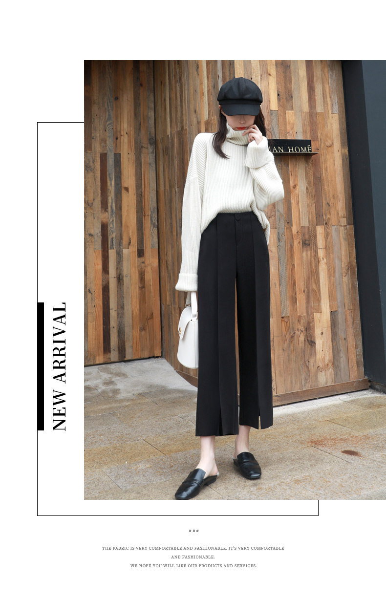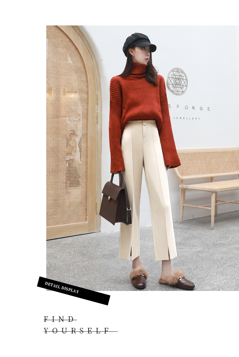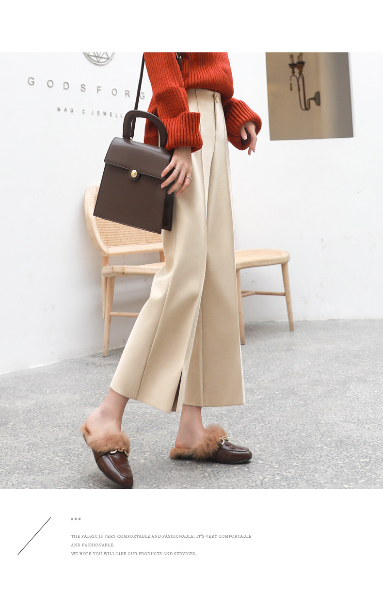 Wollhose mit weitem Bein für Damen, neuer Stil für Frühling, Herbst und Winter 2025, drapiert, hoch tailliert, schmal, lässig, neun Punkte, klein, gebrochenes Weiß