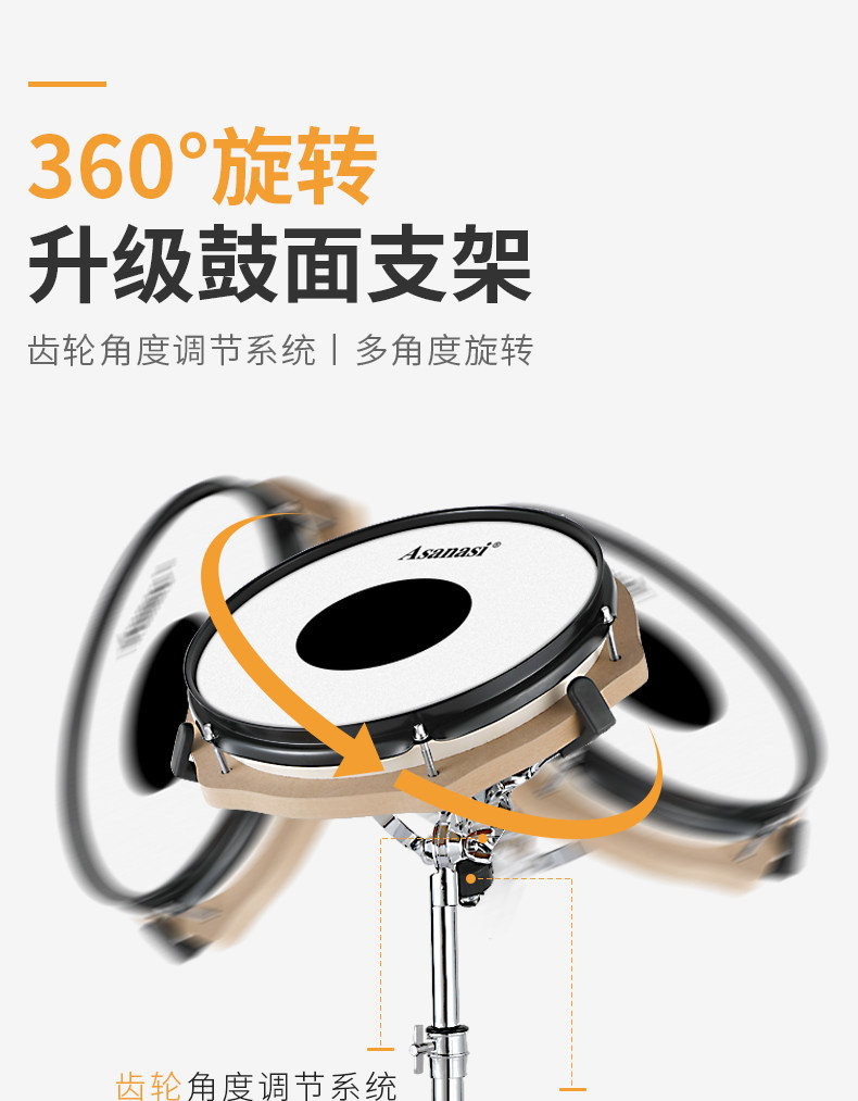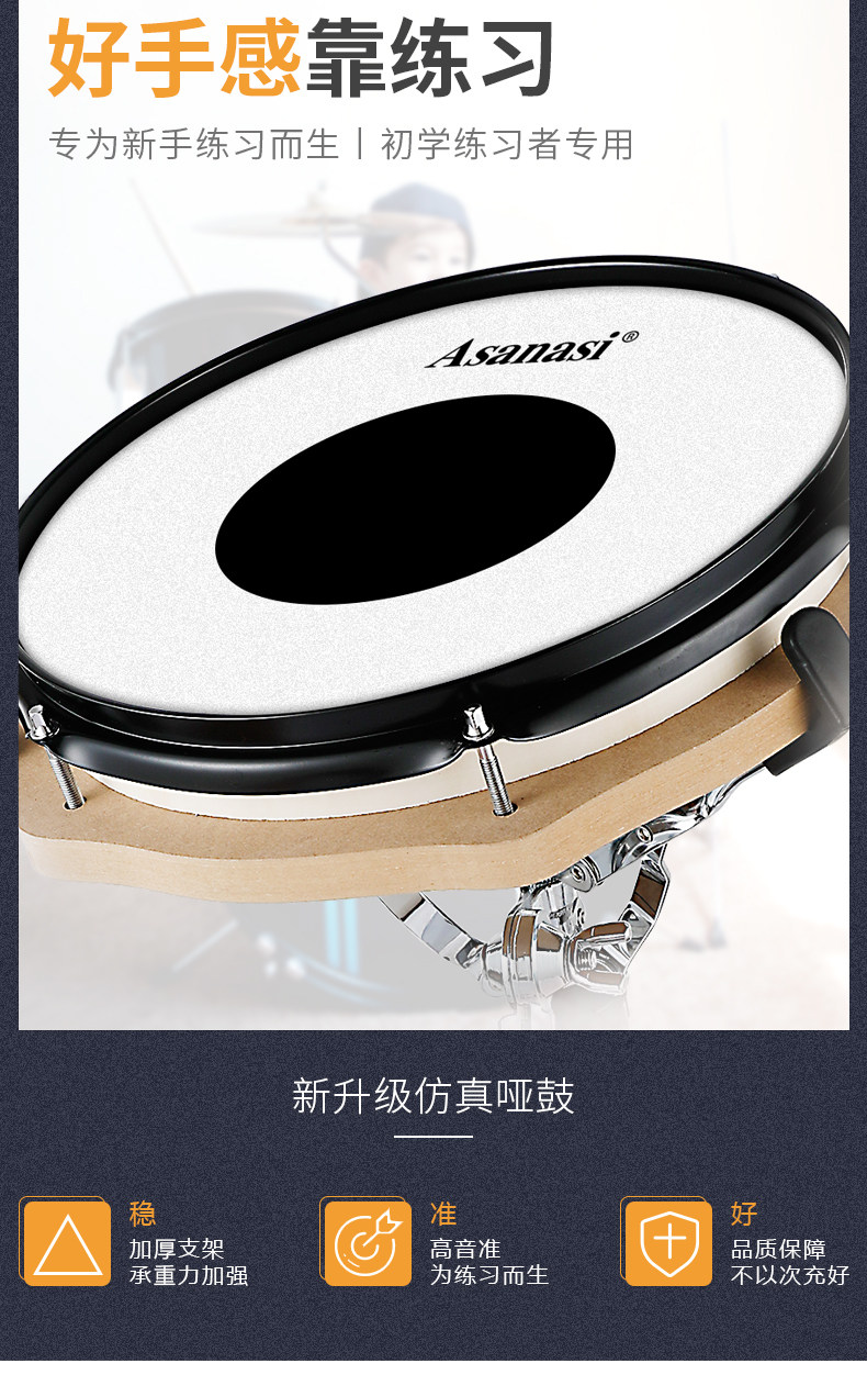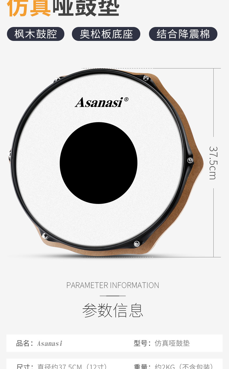 Asanasi 12inch Simulated Mute Drum Practice Device Mute Drum Pad Mute Drum Board Drum Set Mesh Skin Mute Drum Practice Set