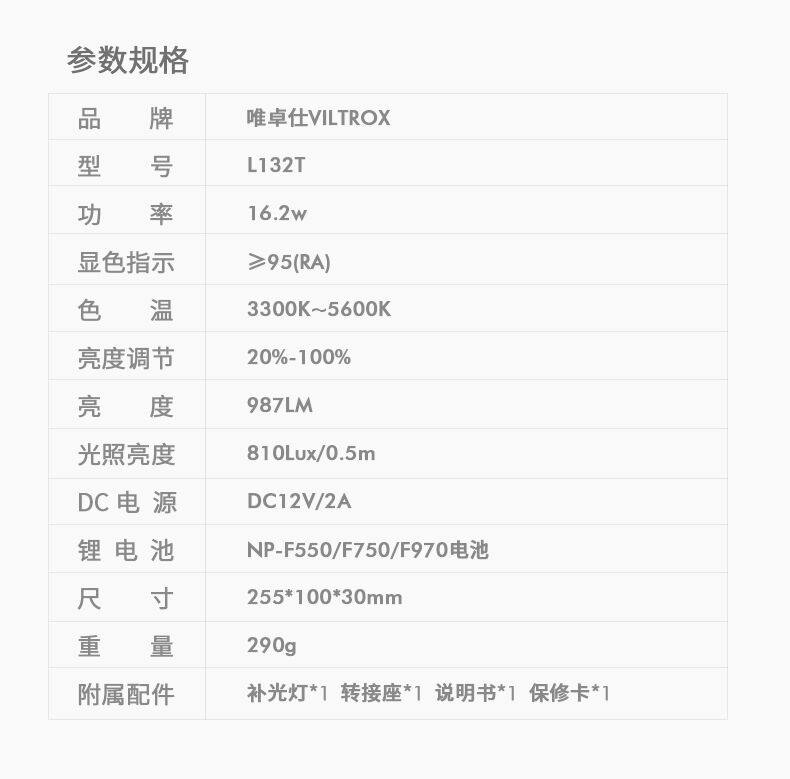 Farbklassifizierung L132T Standardkonfiguration + Geschenke,Der L132T wird standardmäßig mit + F750-Akku + Geschenken geliefert,Der L132T wird standardmäßig mit + F970-Akku + Geschenken geliefert,Der L132T wird standardmäßig mit einem 2-Meter-Lichtstativ und Geschenkartikeln geliefert,L132T wird standardmäßig mit + F970-Akku + 2-Meter-Lichtstativ + Geschenken geliefert