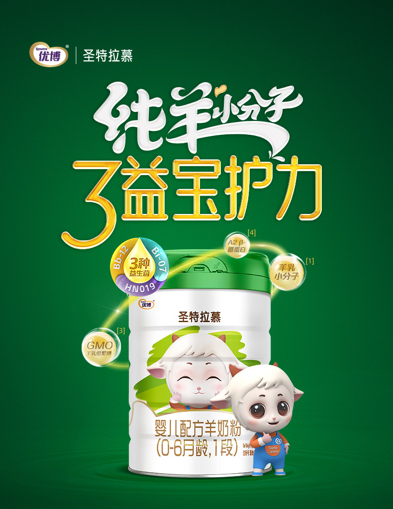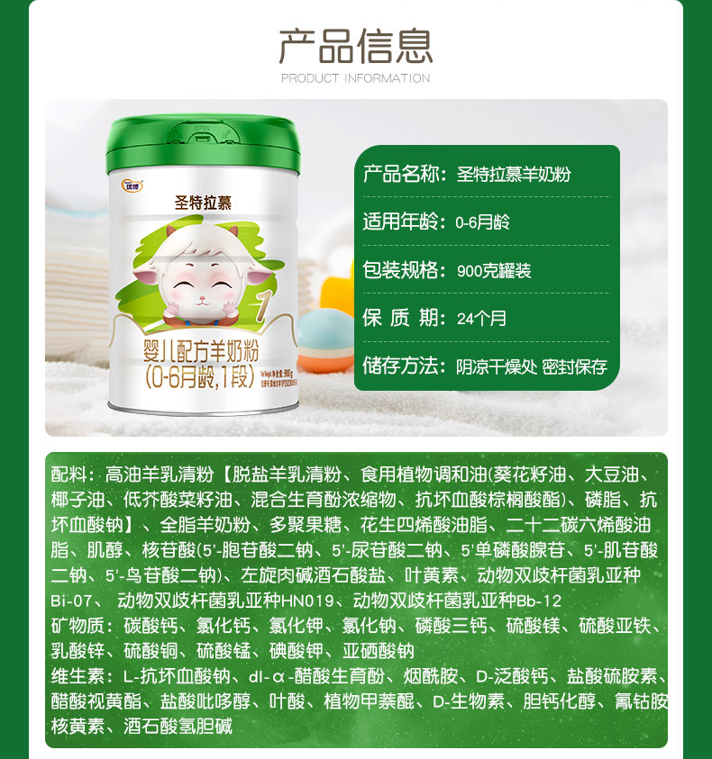 【买六送6】圣特拉慕优博羊奶粉婴儿1段0-6个月900g6罐荷兰奶源