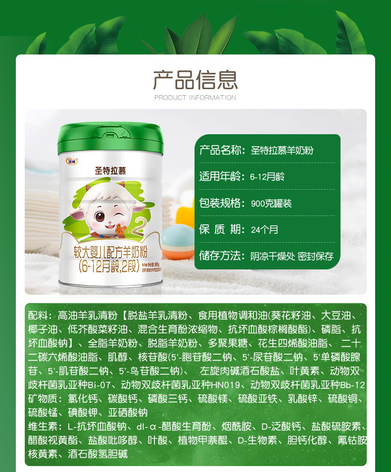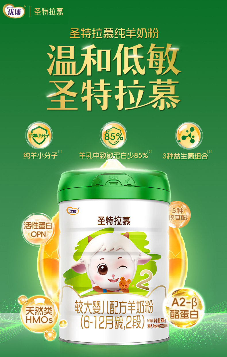 [Free 150g] Sheng Yuan Youbo Infant Goat Milk Powder for 6-12 Months, Stage 2, 900g, 1 Can