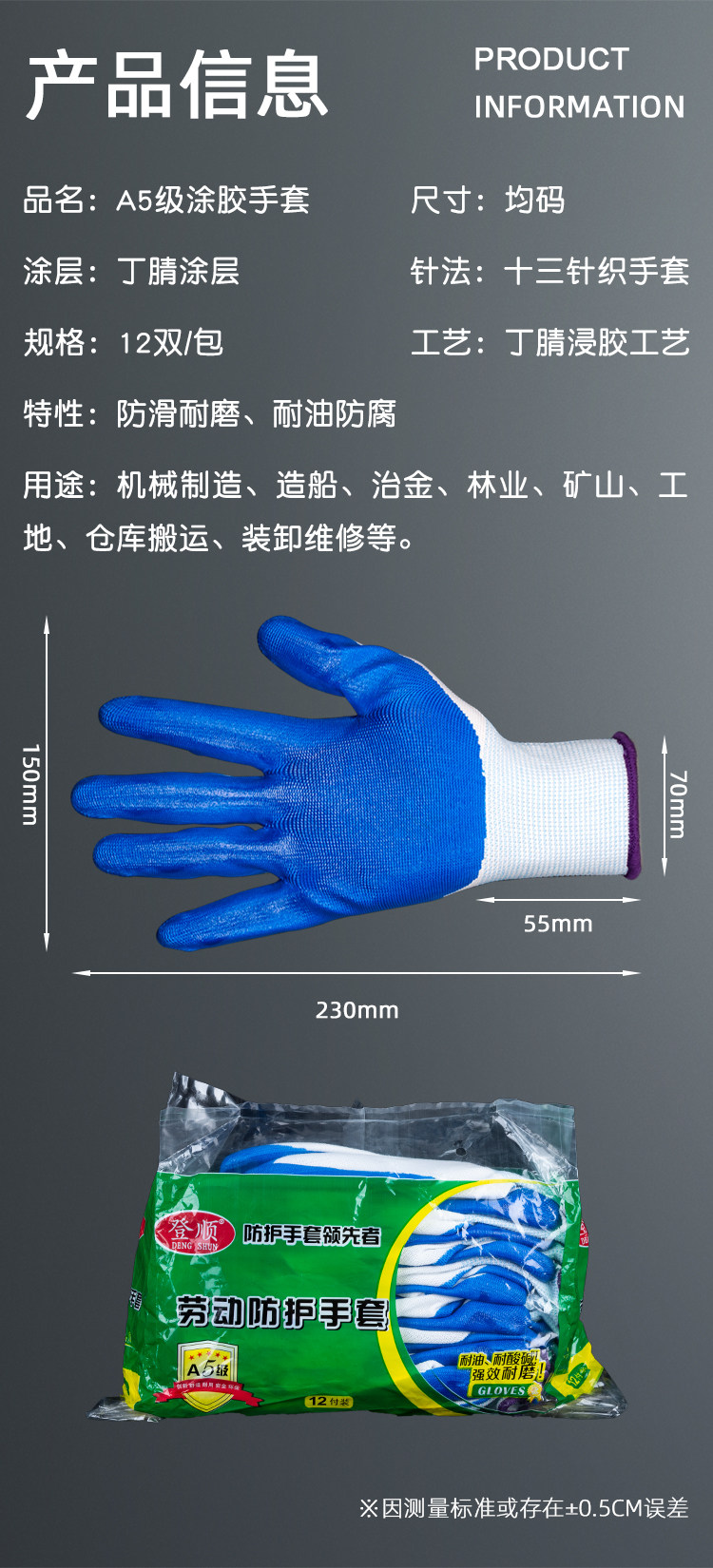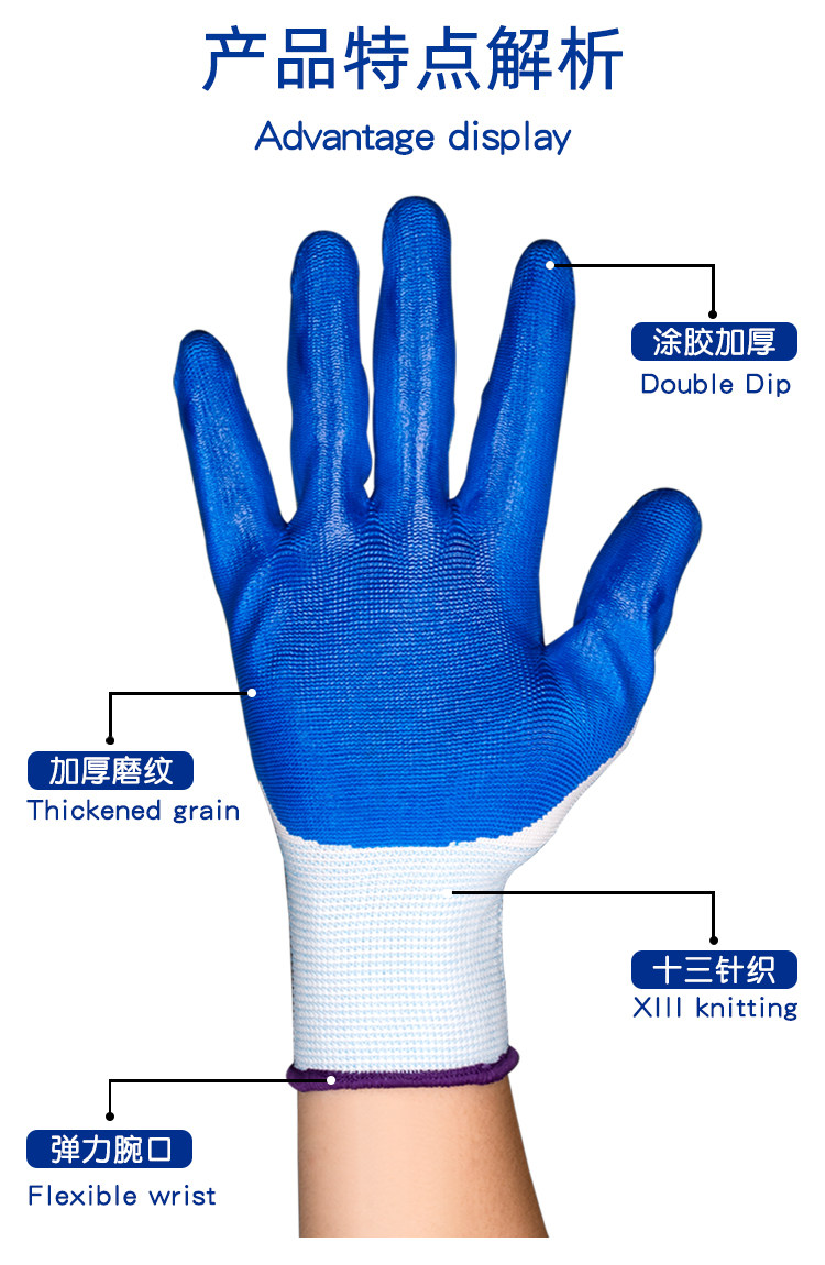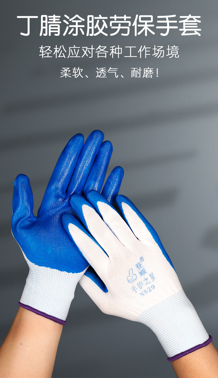 Nitrile Labor Protection Rubber-Coated Gloves for Men Working on Construction Sites, Wear-Resistant, Oil-Proof, Non-Slip, Waterproof, Breathable Work Gloves