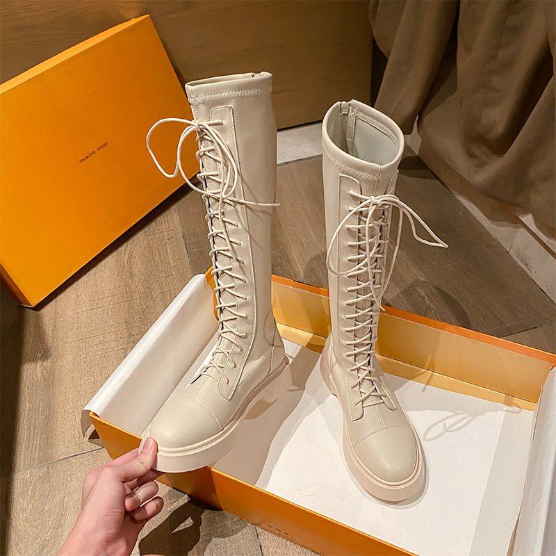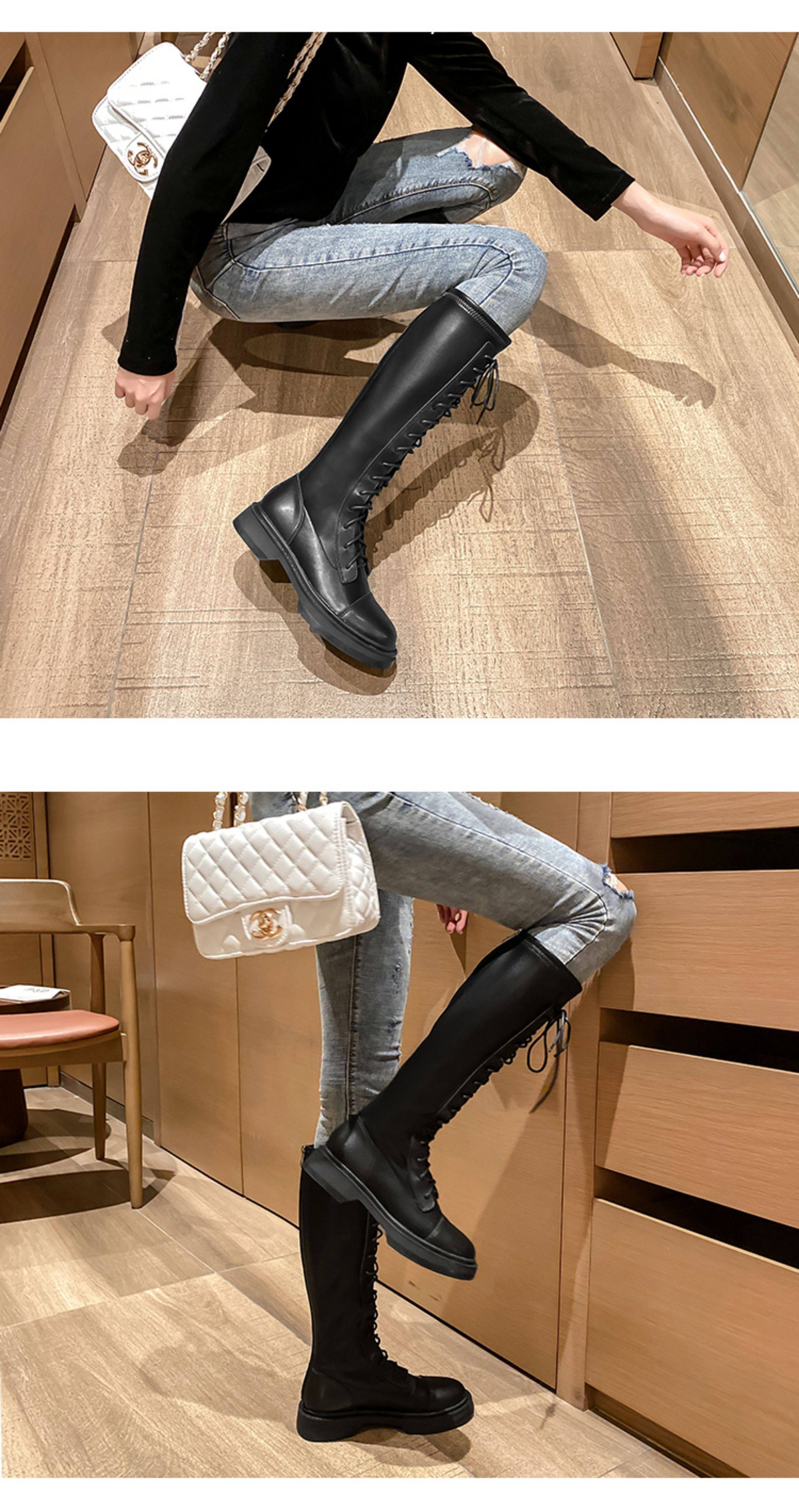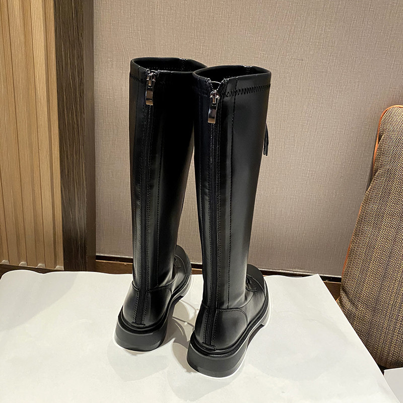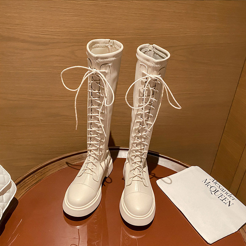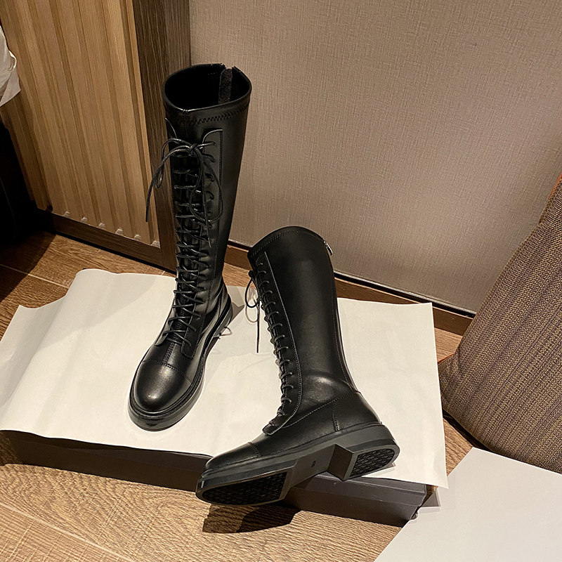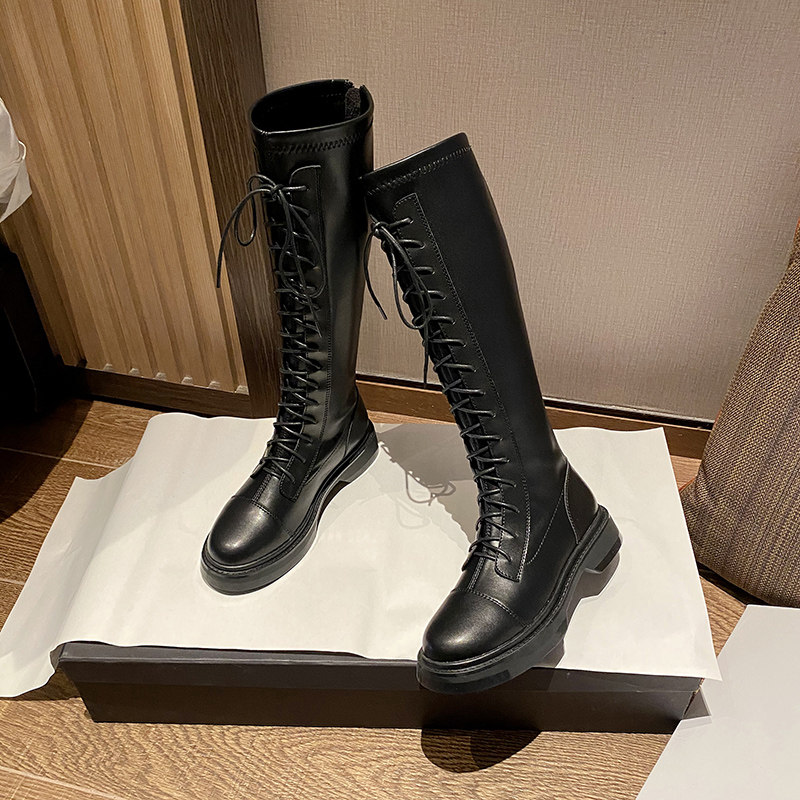 胖mm长筒靴女大筒围不过膝2025秋冬新款长靴高筒骑士靴小个子系带