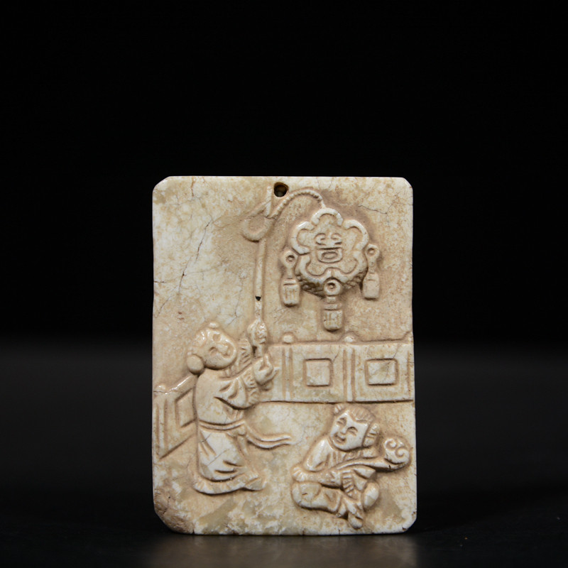 古玩古董收藏老物件玉器古玉包老保真清代老和田玉张灯结彩图挂件