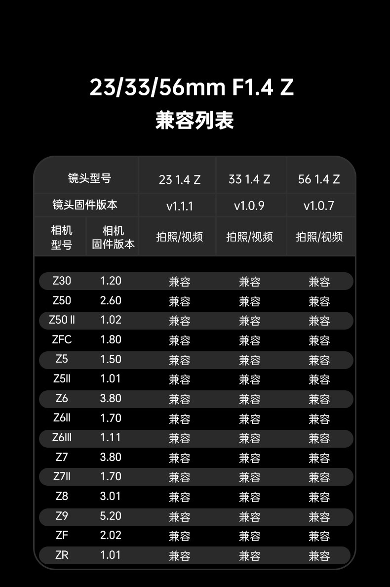 Vitrox Z mount lens 23mm/33mm/56mmF1.4 mirrorless camera Z5 Z6Z7 ZFC fixed focus lens