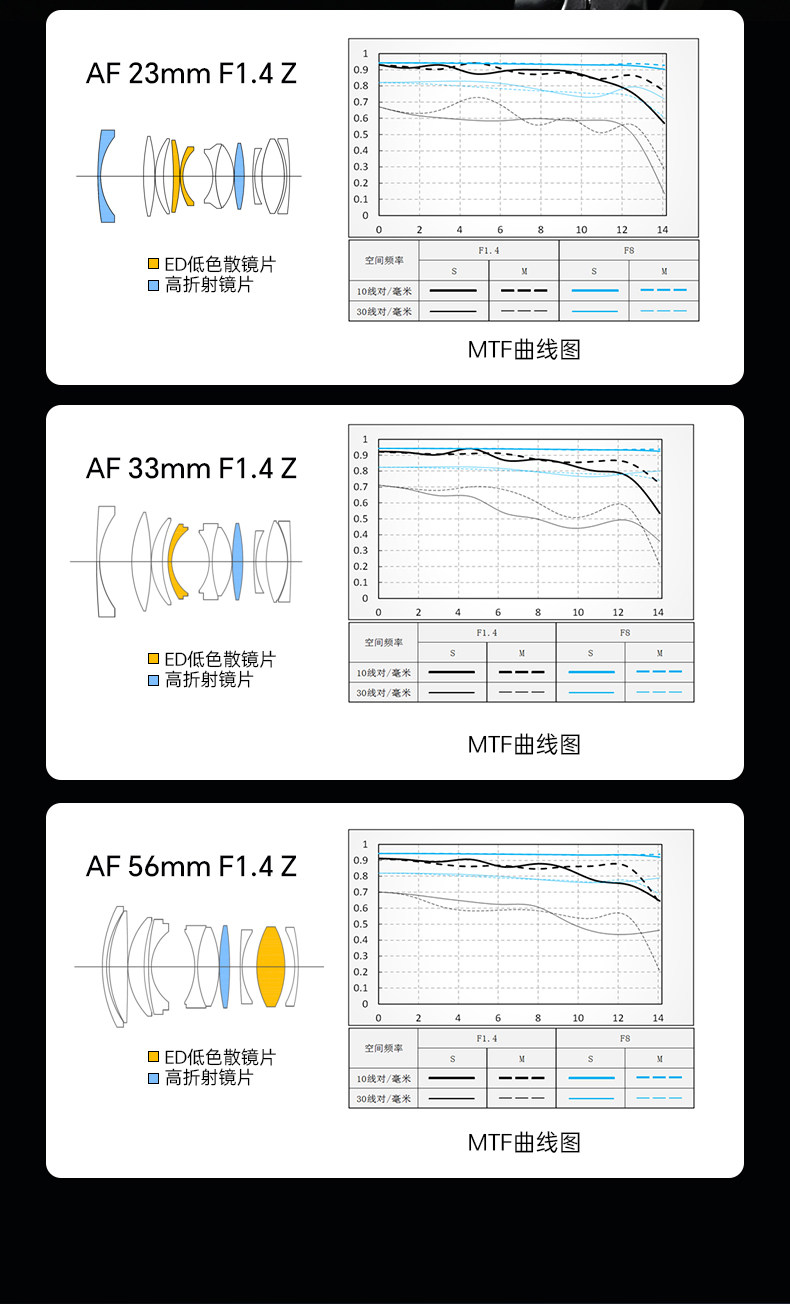Lens model AF 23/F1.4Z,AF 33/F1.4Z,AF 56/F1.4Z