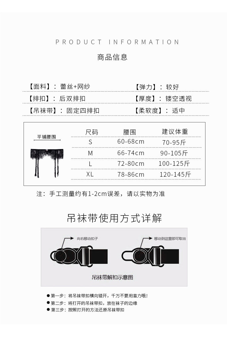 Garter Belt for Women, French Mesh Lace, Black, Sexy, Integrated Duckbill Clip, Palace Style, New Waist Belt Clip