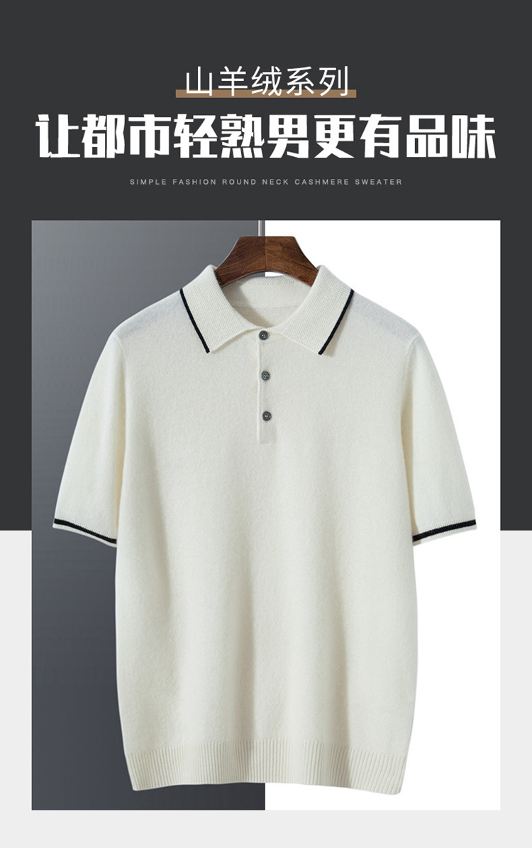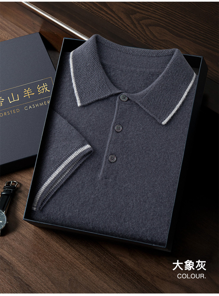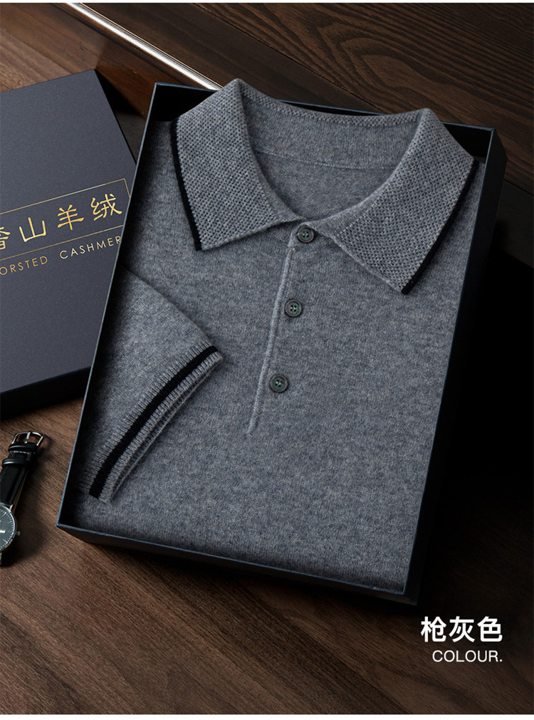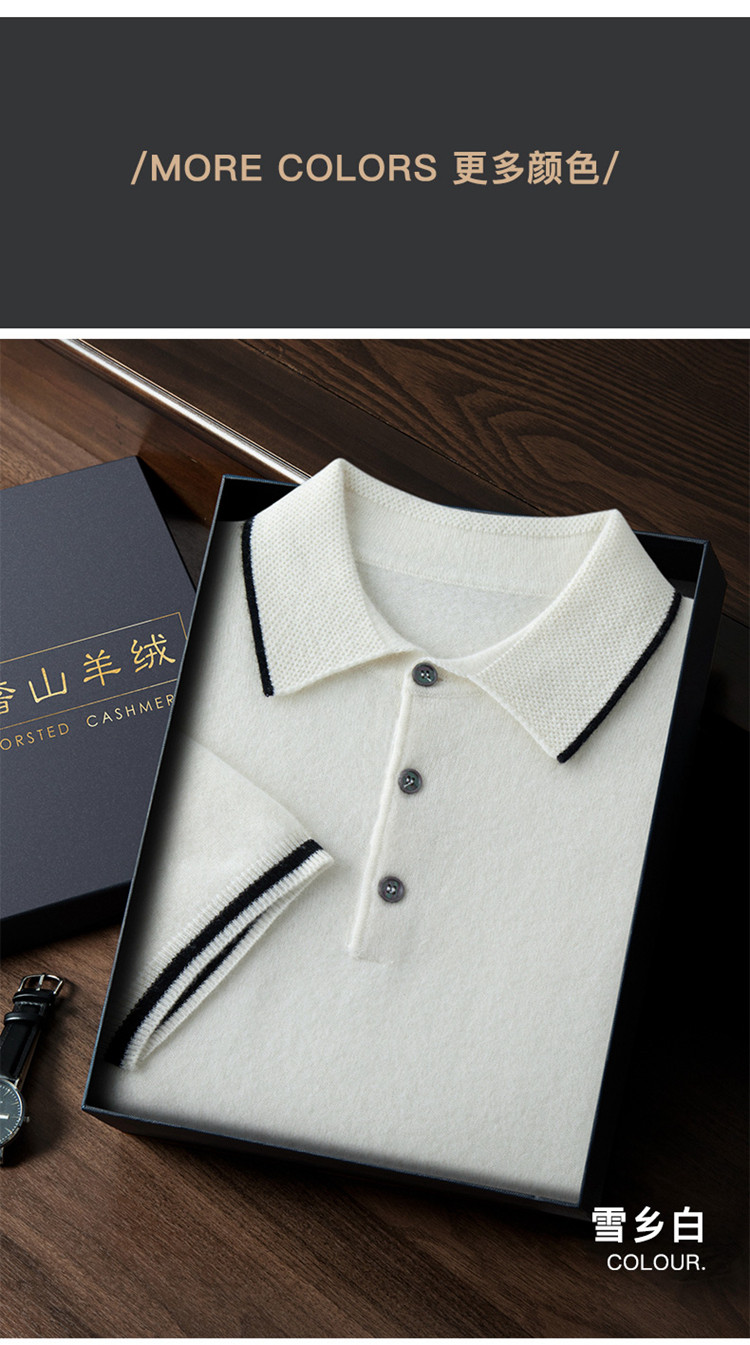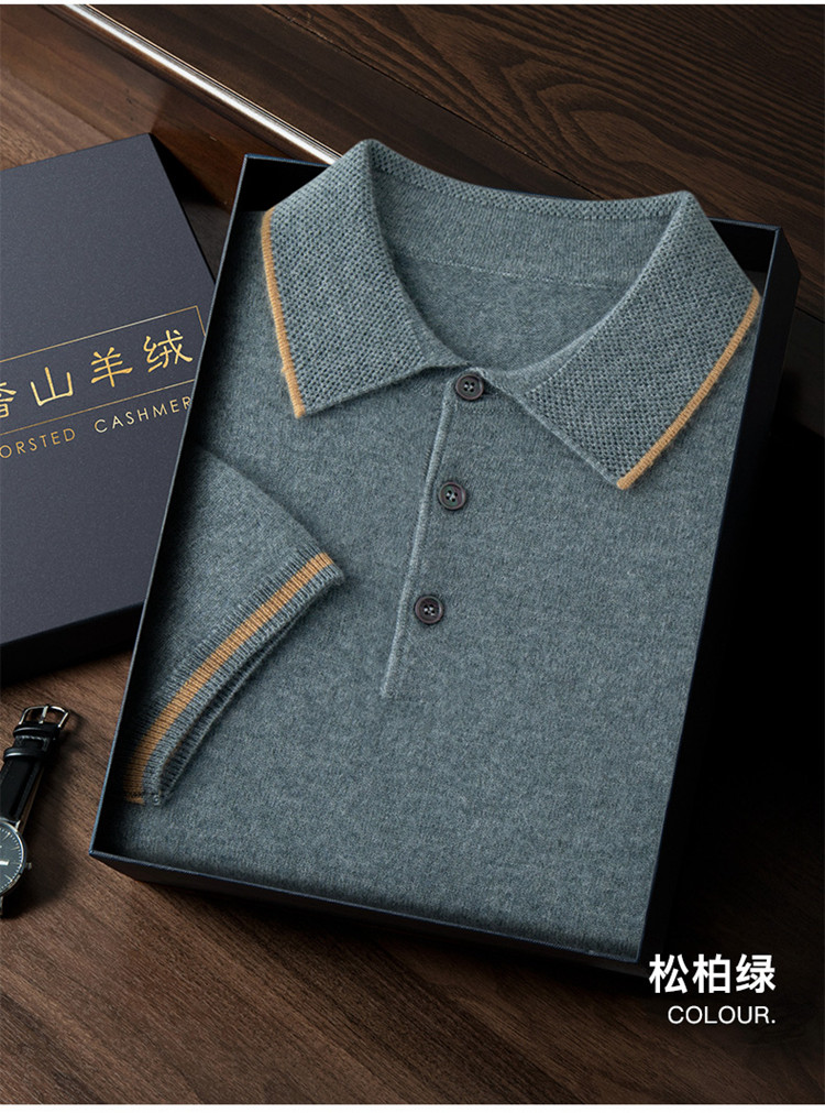 High-end autumn and winter cashmere short-sleeved cashmere sweater men's fashion contrasting color half-sleeved Polo shirt lapel T-shirt knitted sweater