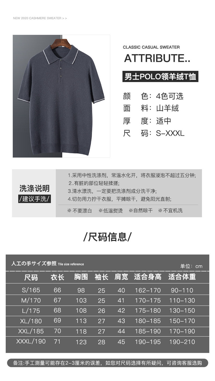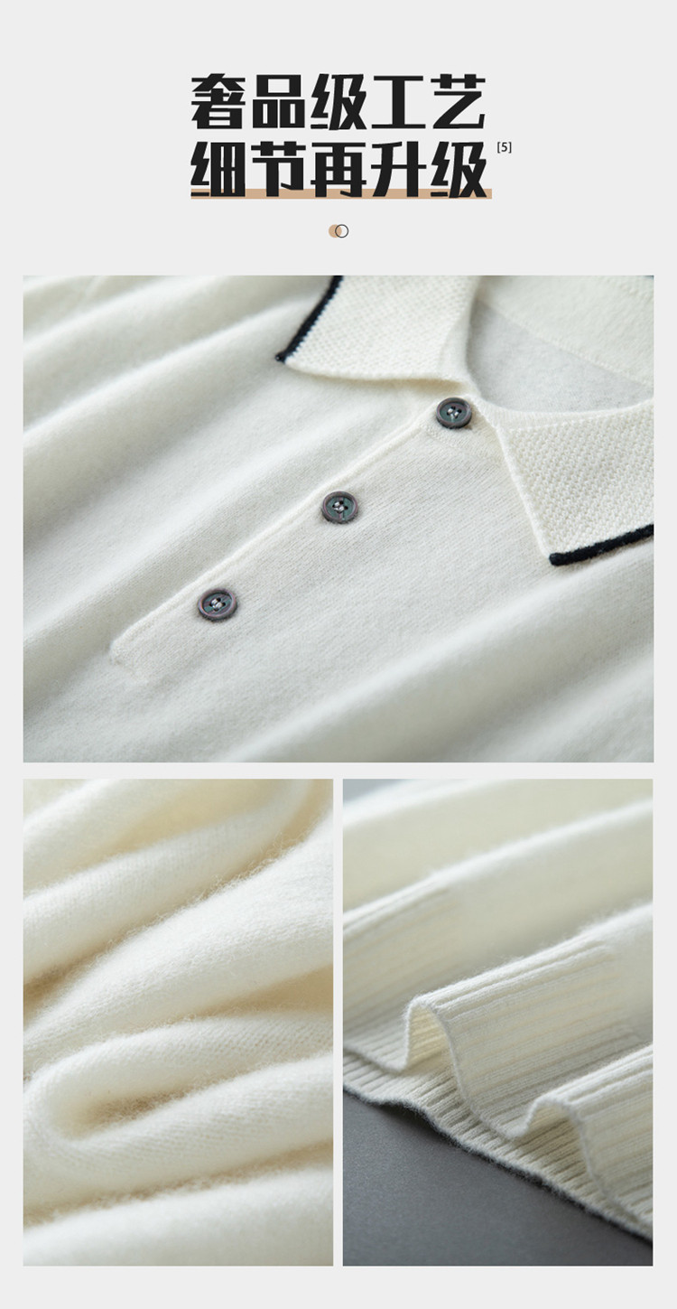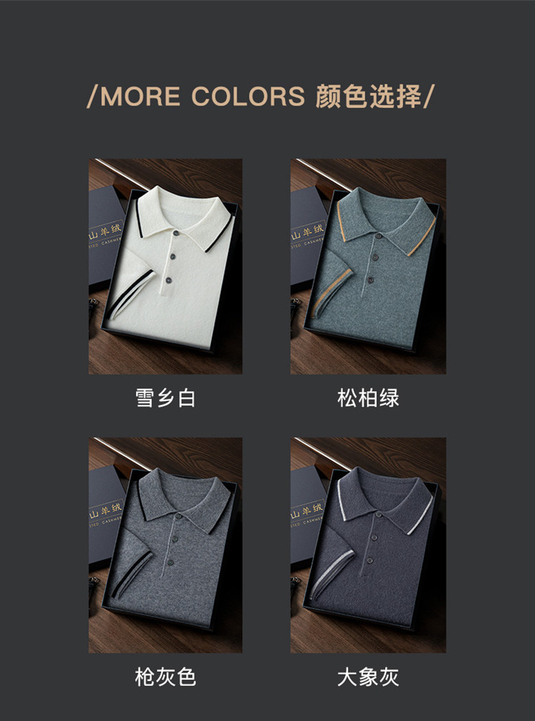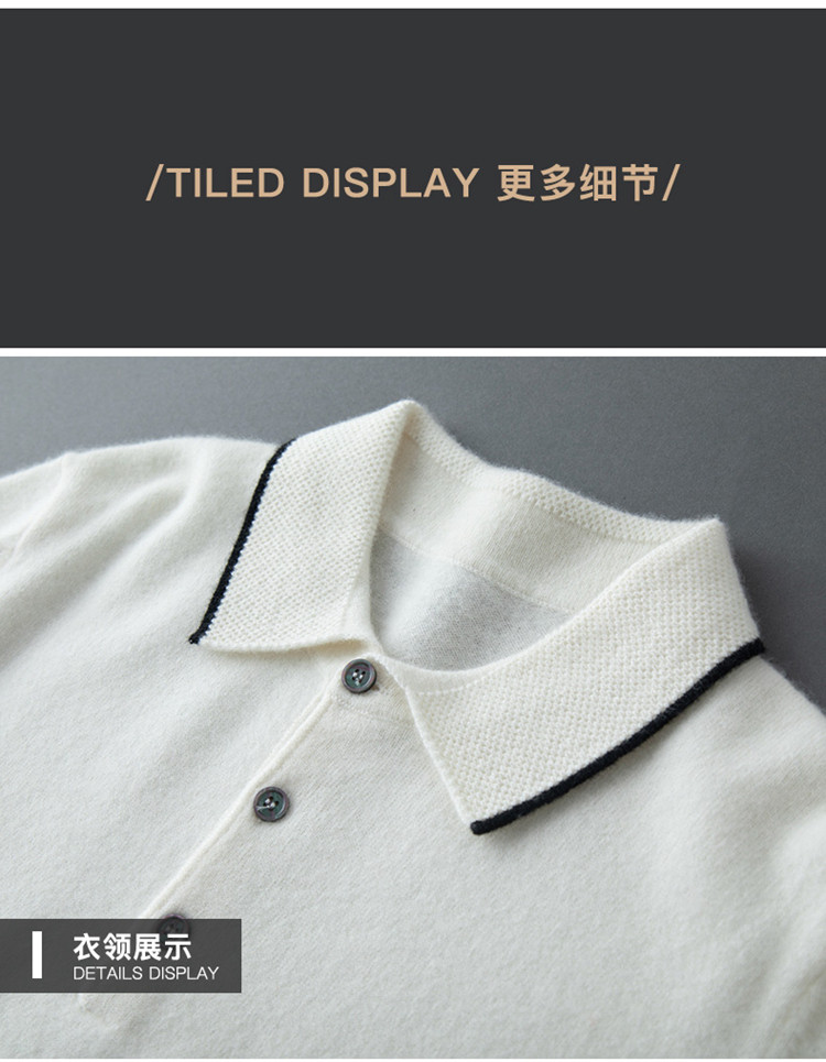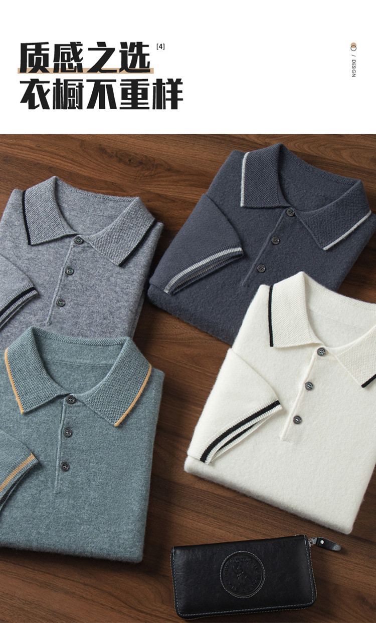 High-end autumn and winter cashmere short-sleeved cashmere sweater men's fashion contrasting color half-sleeved Polo shirt lapel T-shirt knitted sweater
