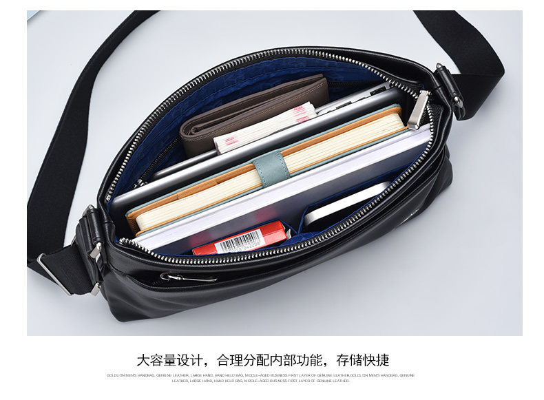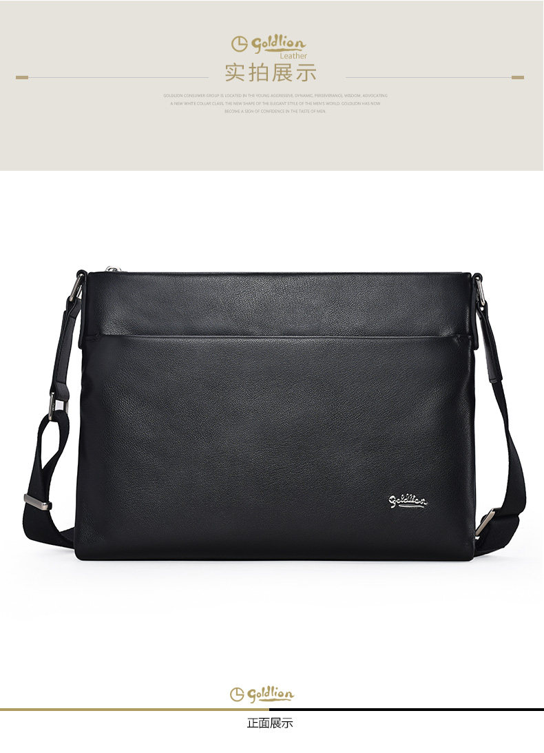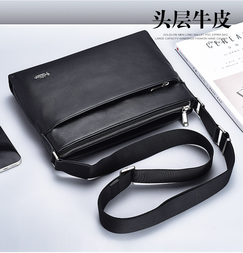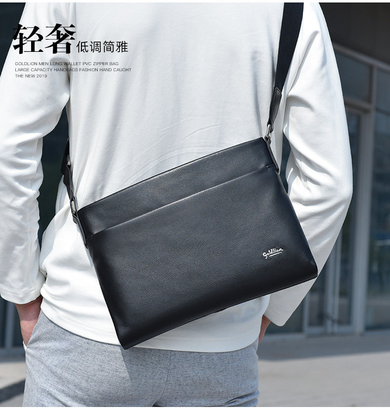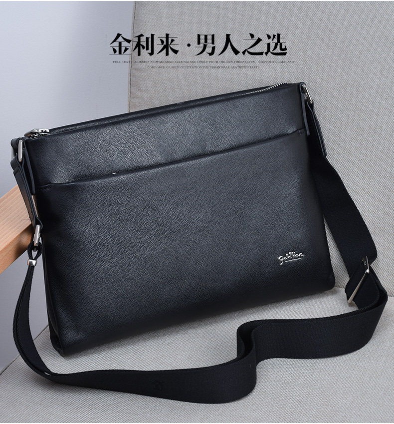 Goldlion Men's Shoulder Bag, Cowhide Business Crossbody Bag, Fashionable Genuine Leather Horizontal Style Casual Multifunctional Men's Bag, New Model