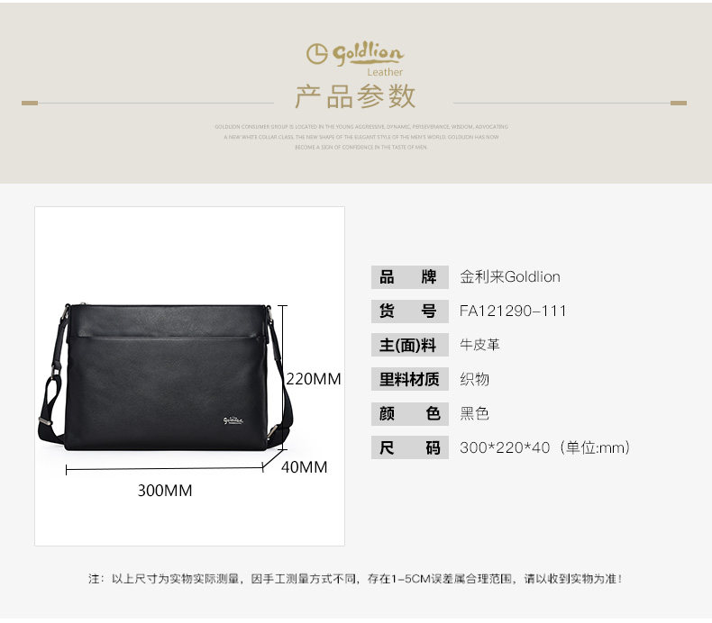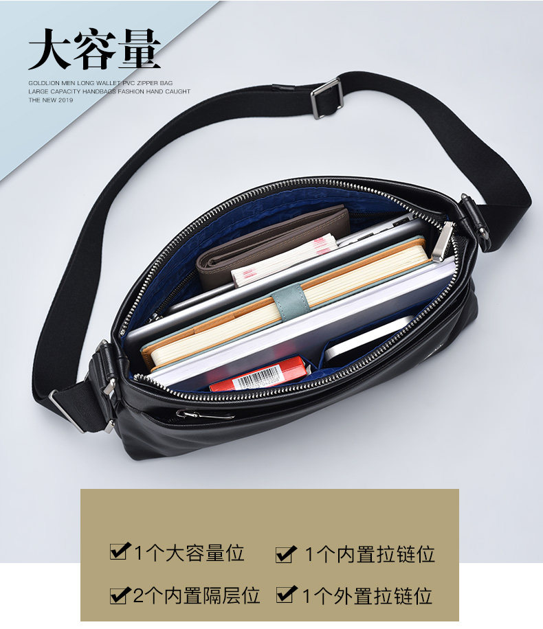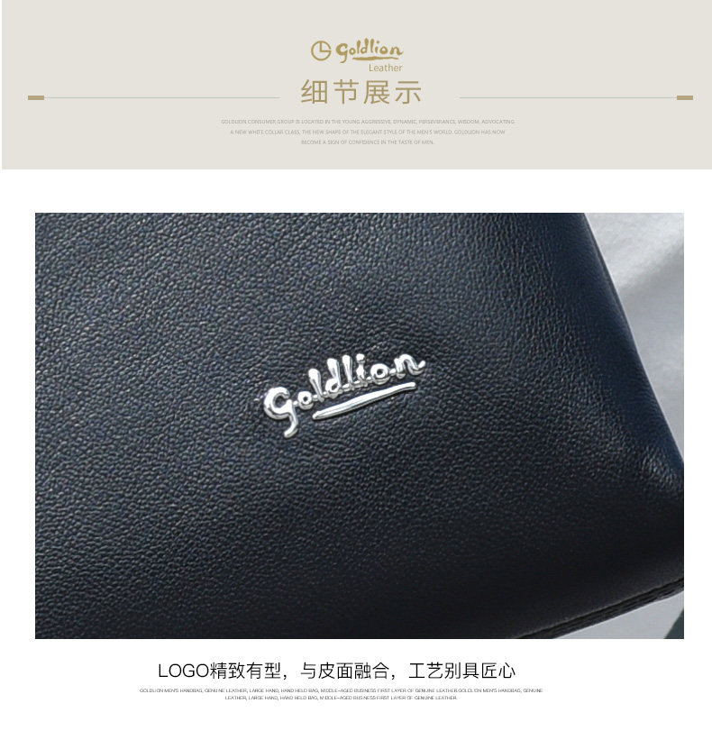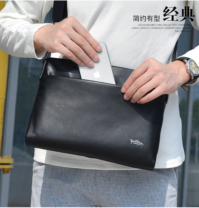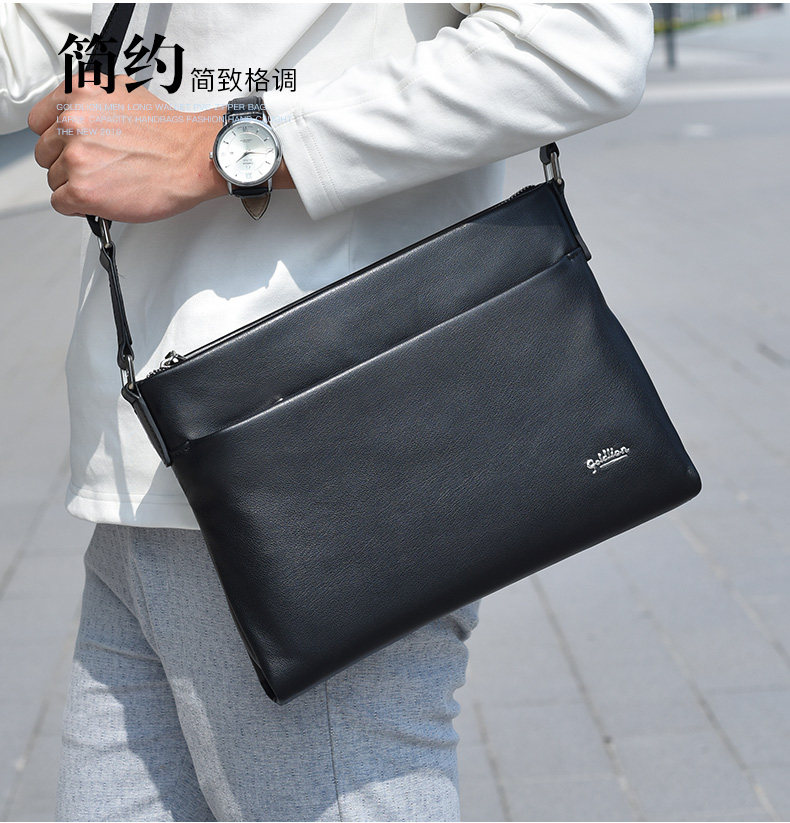 Goldlion Men's Shoulder Bag, Cowhide Business Crossbody Bag, Fashionable Genuine Leather Horizontal Style Casual Multifunctional Men's Bag, New Model