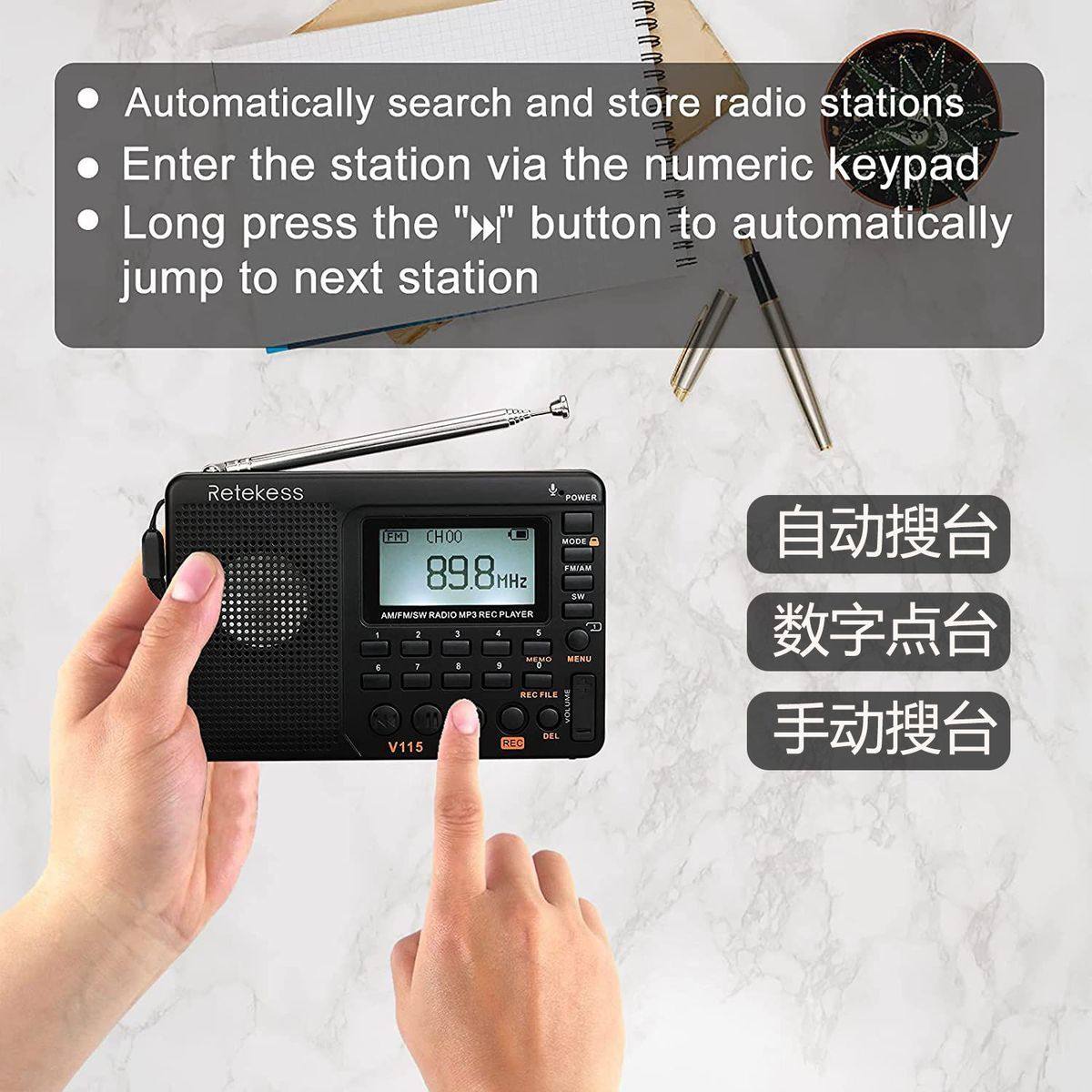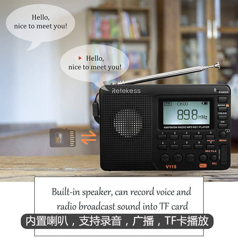 RETEKESS V115 экспортируется в США и Германию, полнодиапазонный радиорегистратор поддерживает вставку карт и воспроизведение FM.