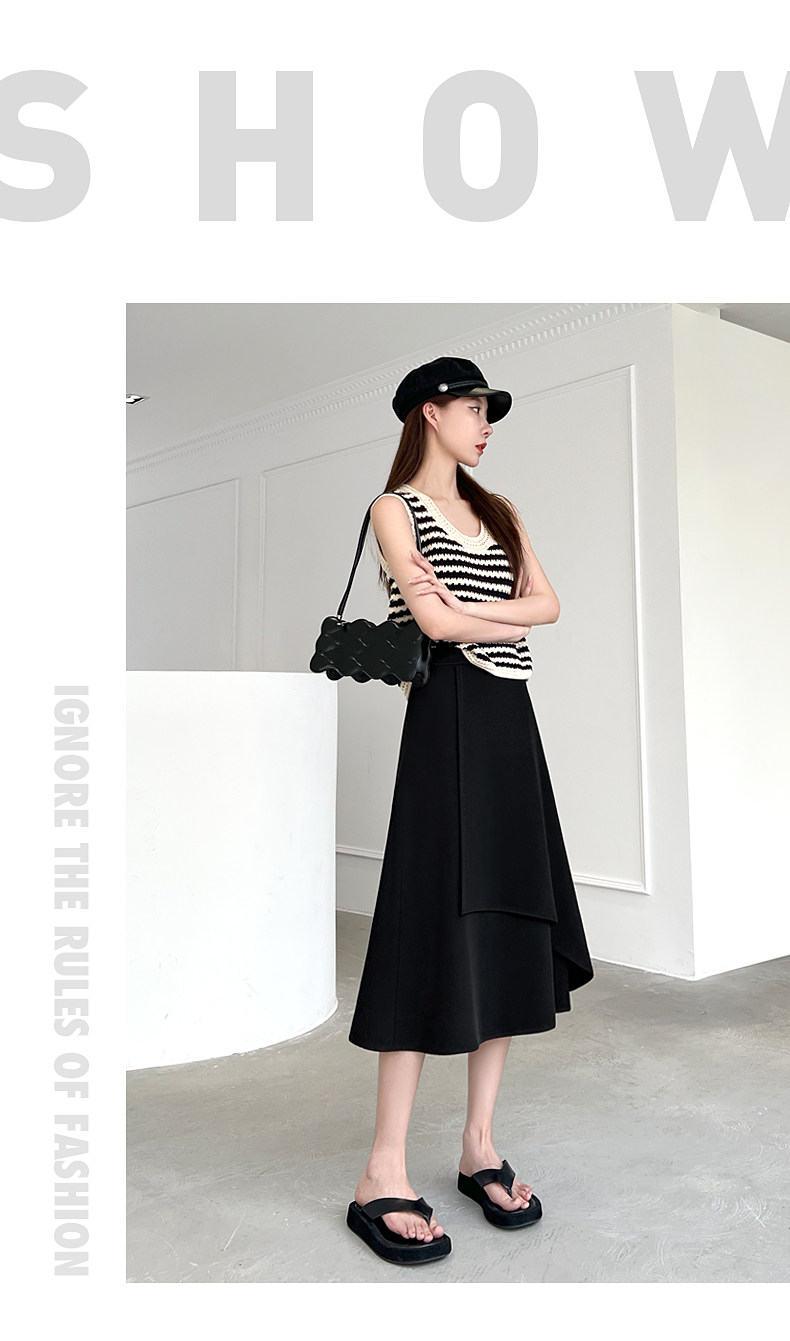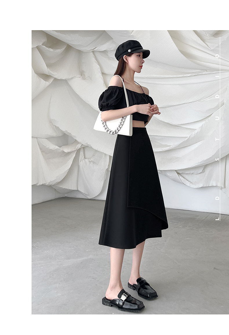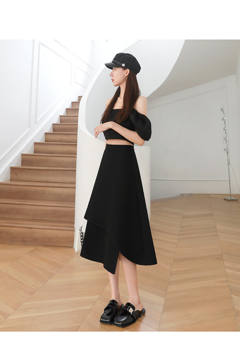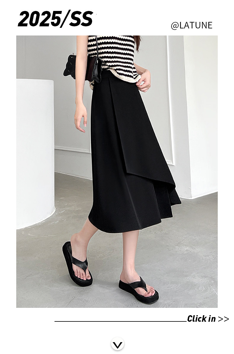 Anzug A-Linie Rock für Frauen Frühling und Herbst 2026 Neuer unregelmäßiger kleiner Rock Drapierender schwarzer langer Rock