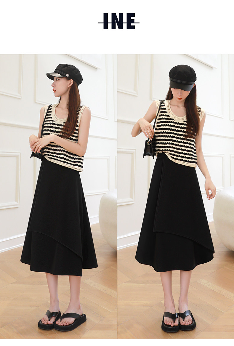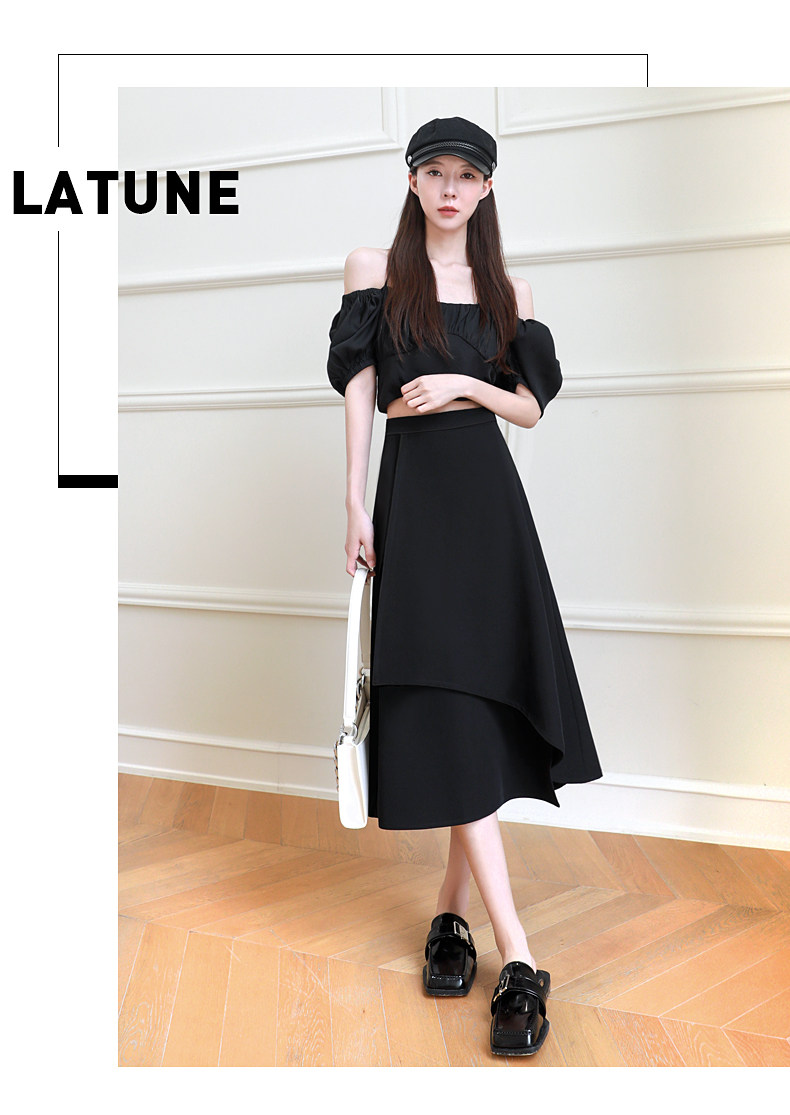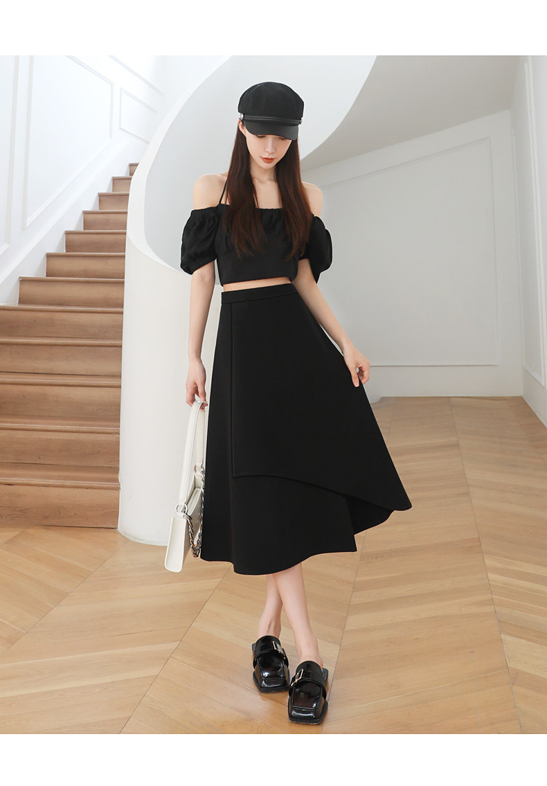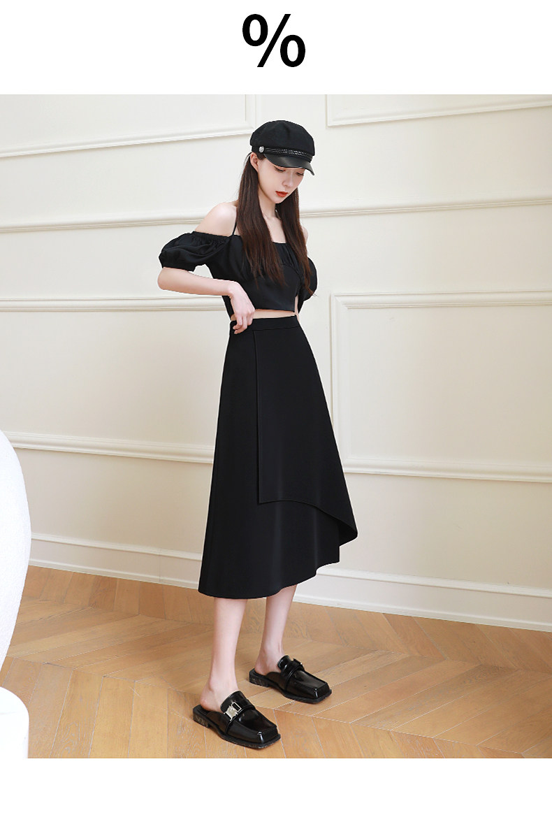 Anzug A-Linie Rock für Frauen Frühling und Herbst 2026 Neuer unregelmäßiger kleiner Rock Drapierender schwarzer langer Rock