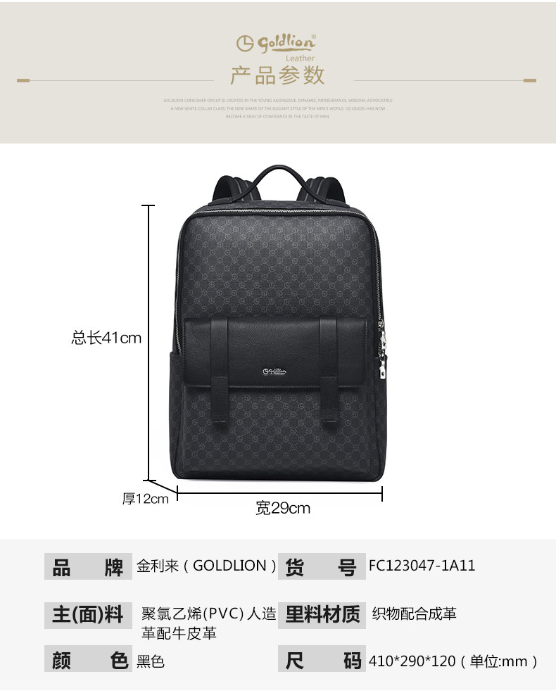 Goldlion Men's Backpack Large Capacity 2026 New Backpack Travel Business Style Computer Bag Commuting Men's Bag