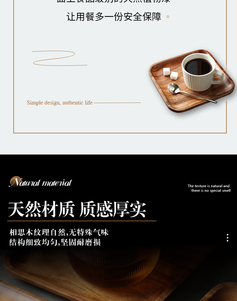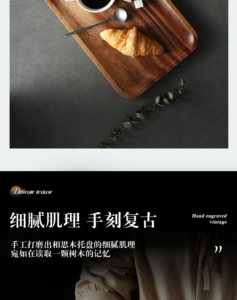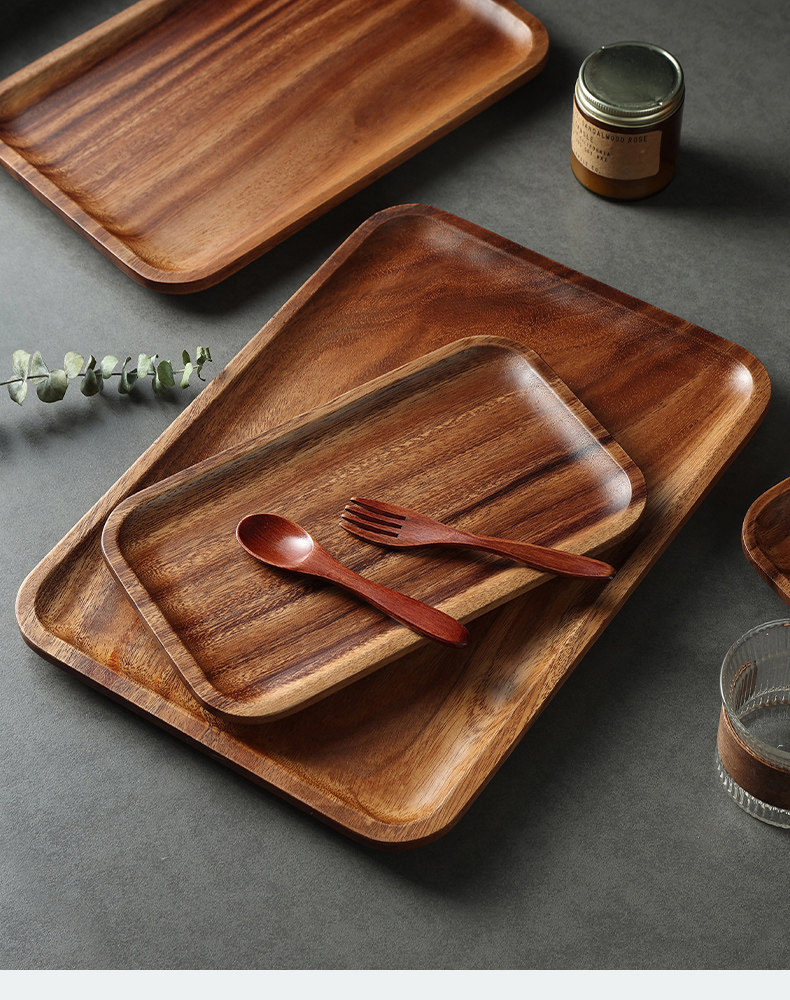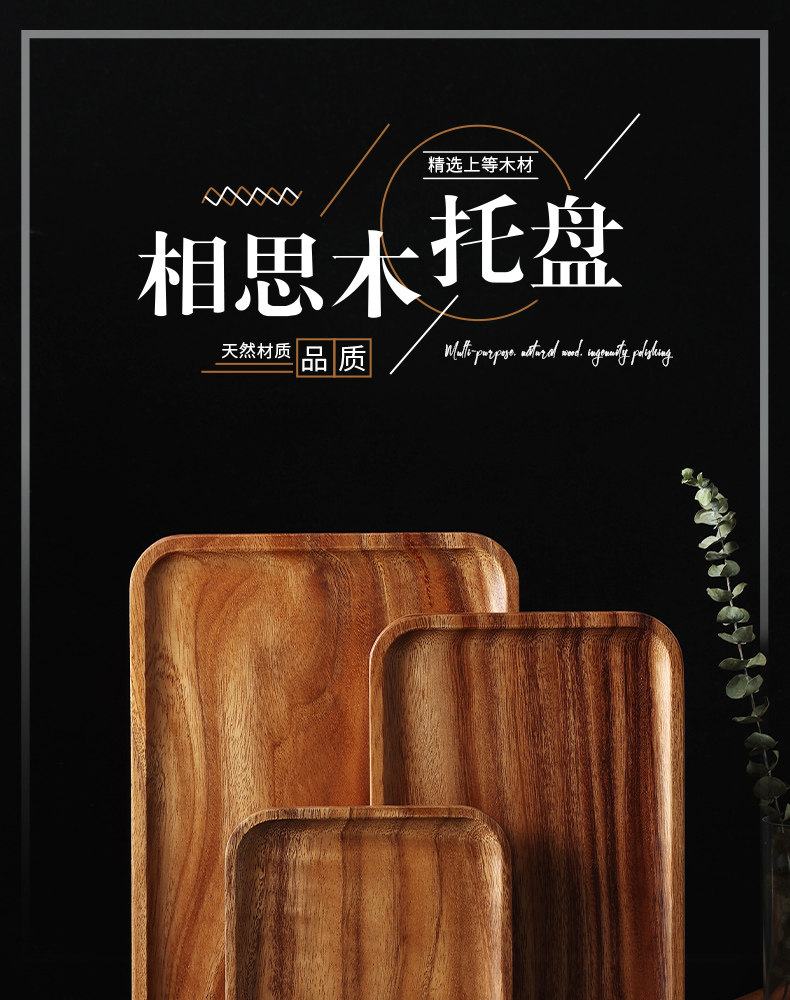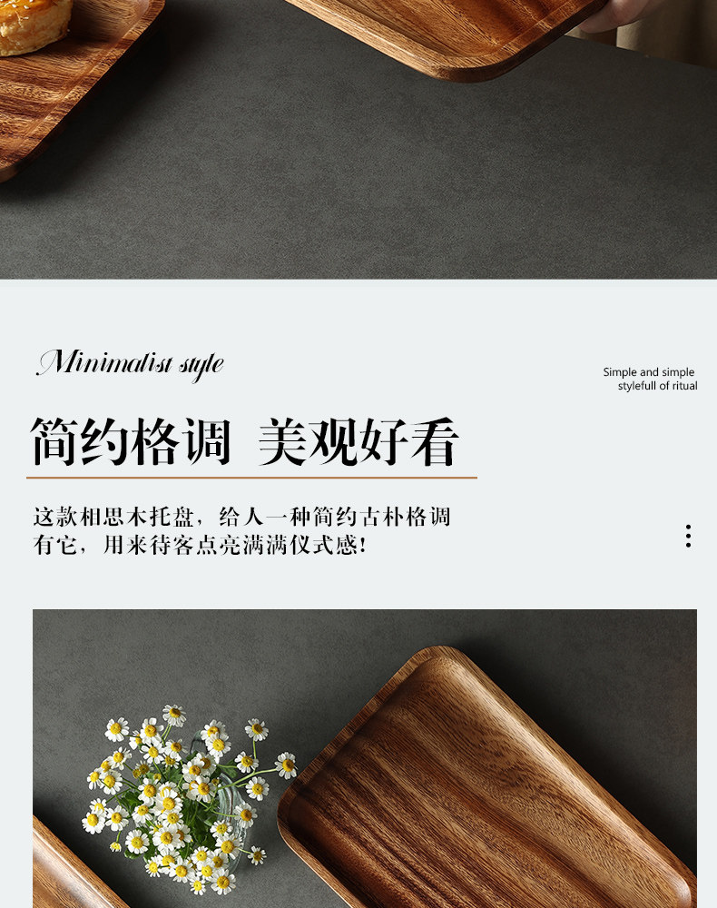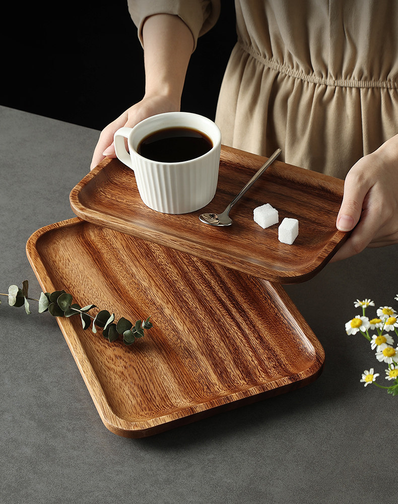 日式相思木长方形托盘木质家用客厅茶杯水杯收纳盘子面包点心餐盘