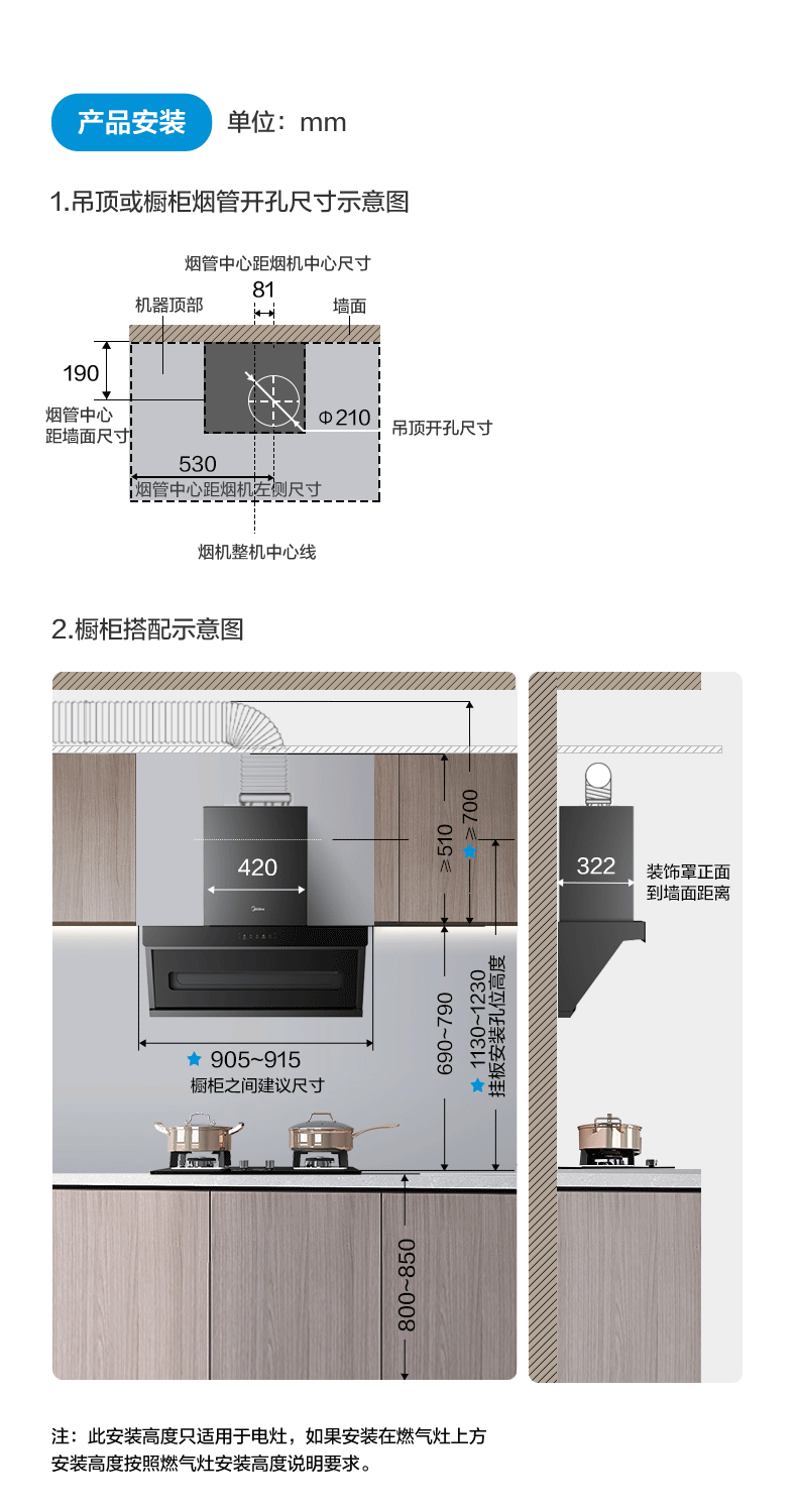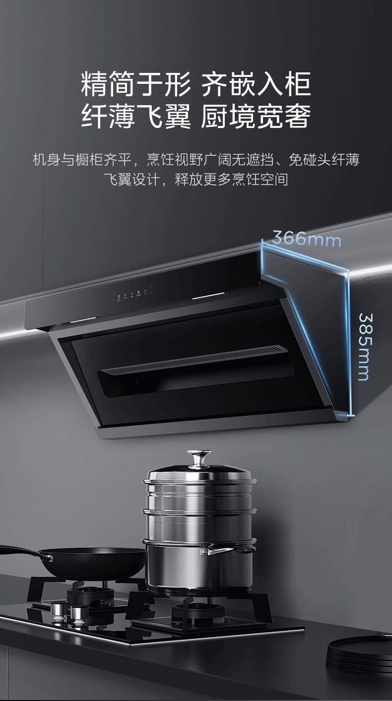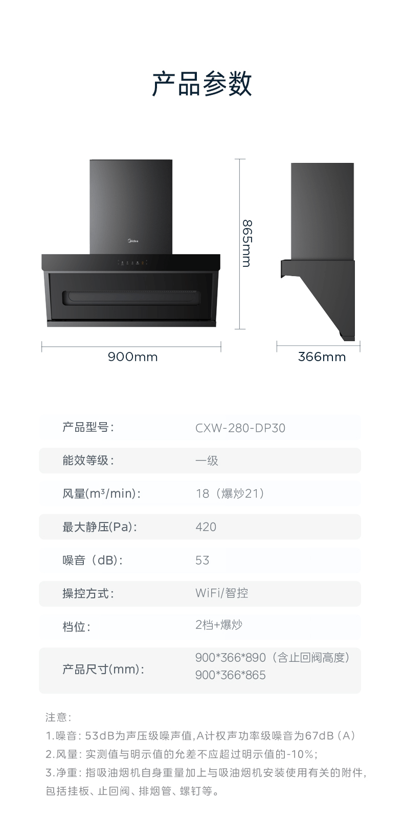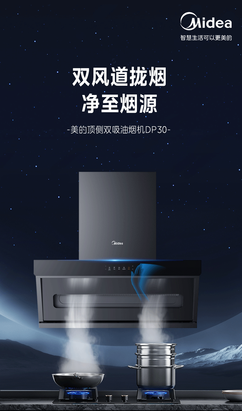 Midea Dp30 Range Hood for Home Kitchen, Large Suction Power, Top and Side Dual Suction, 7-Shaped, Self-Cleaning