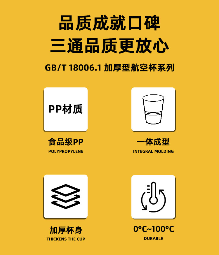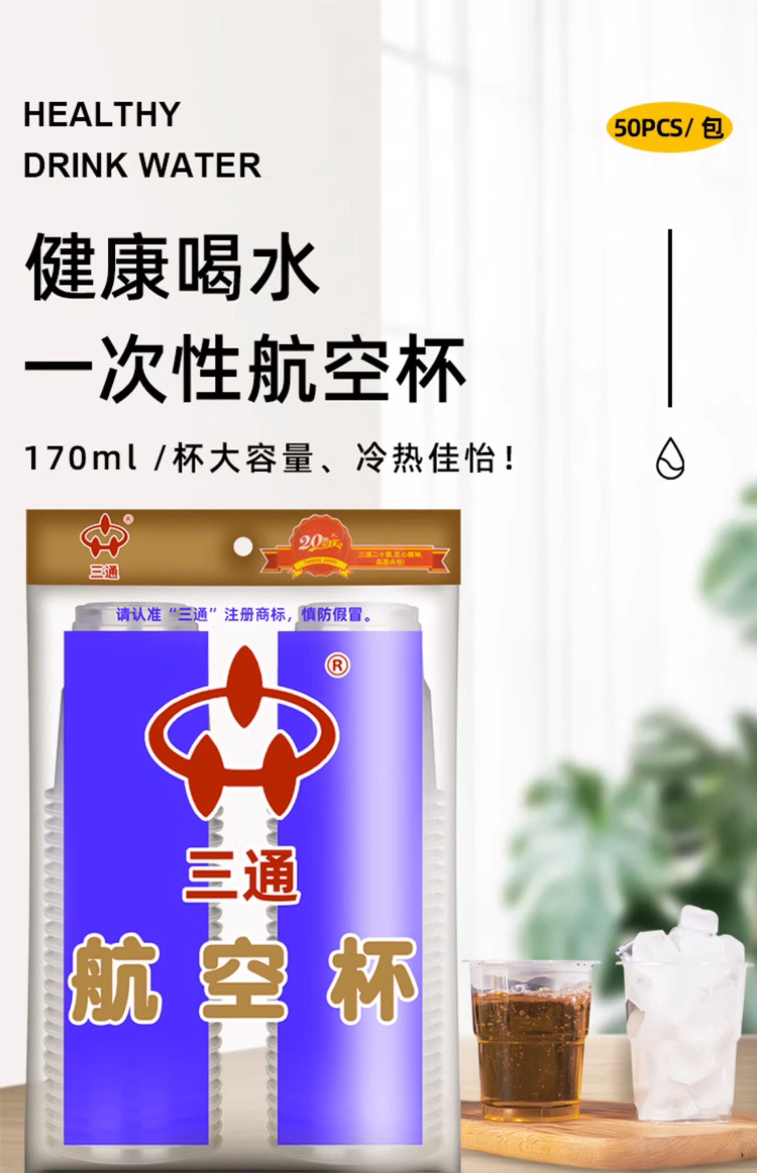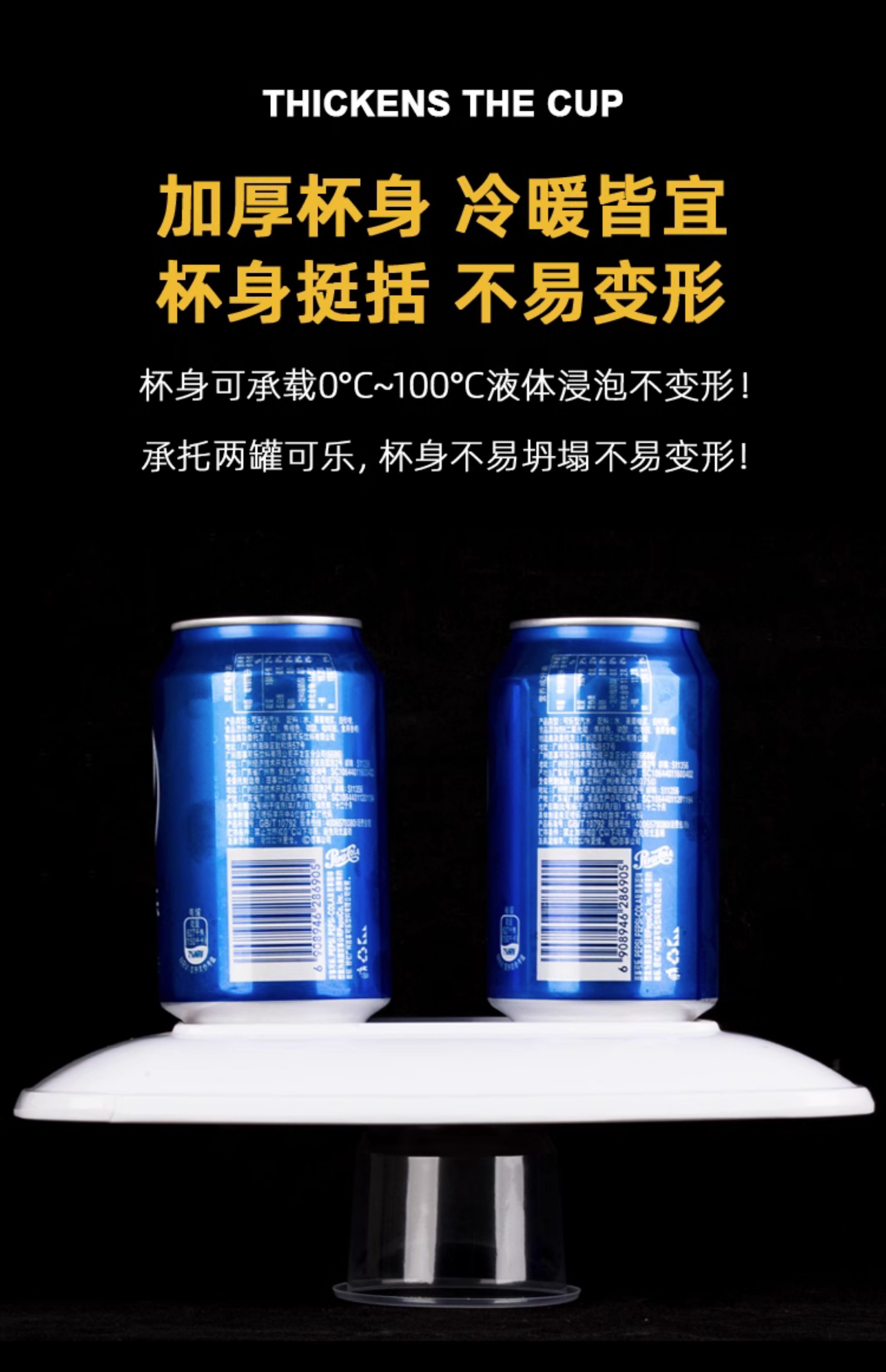 三通一次性杯子塑料杯pp家用透明加厚耐热大容量家用款航空杯水杯