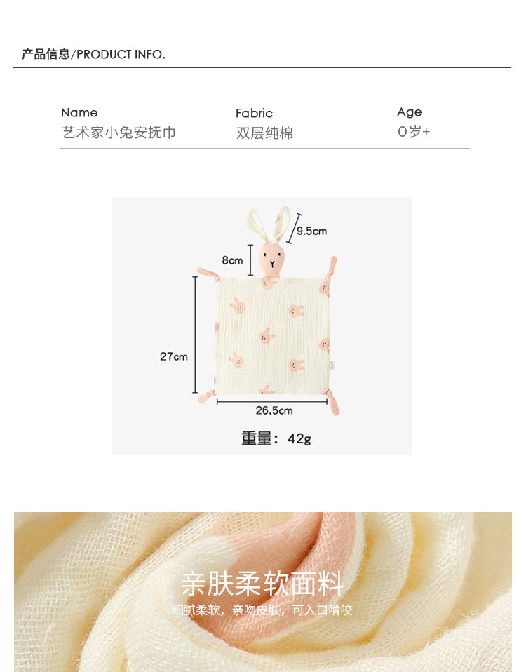 婴儿幼儿纯棉安抚巾小兔安抚玩偶阿贝贝新生的儿宝宝可入口可啃咬