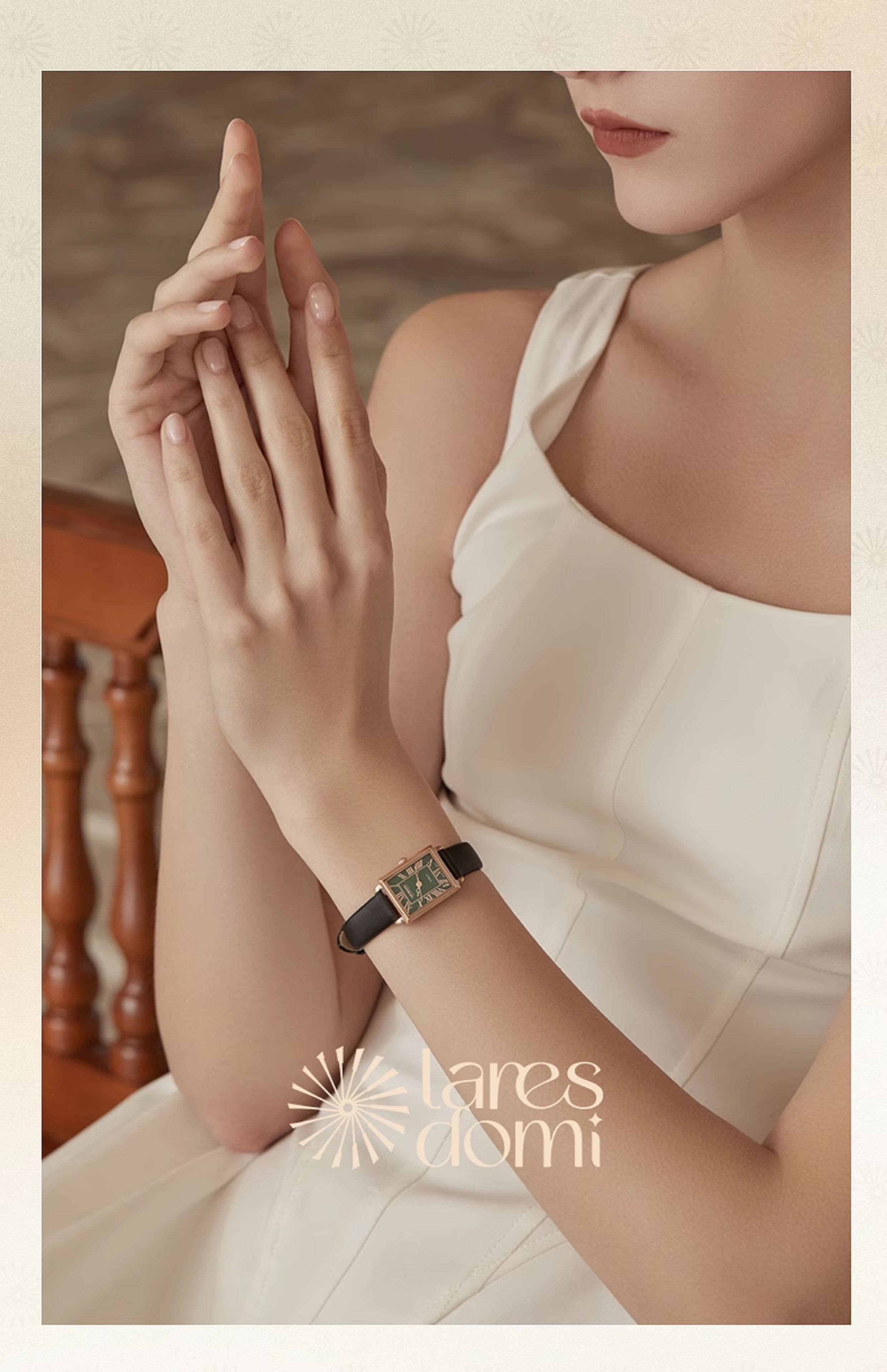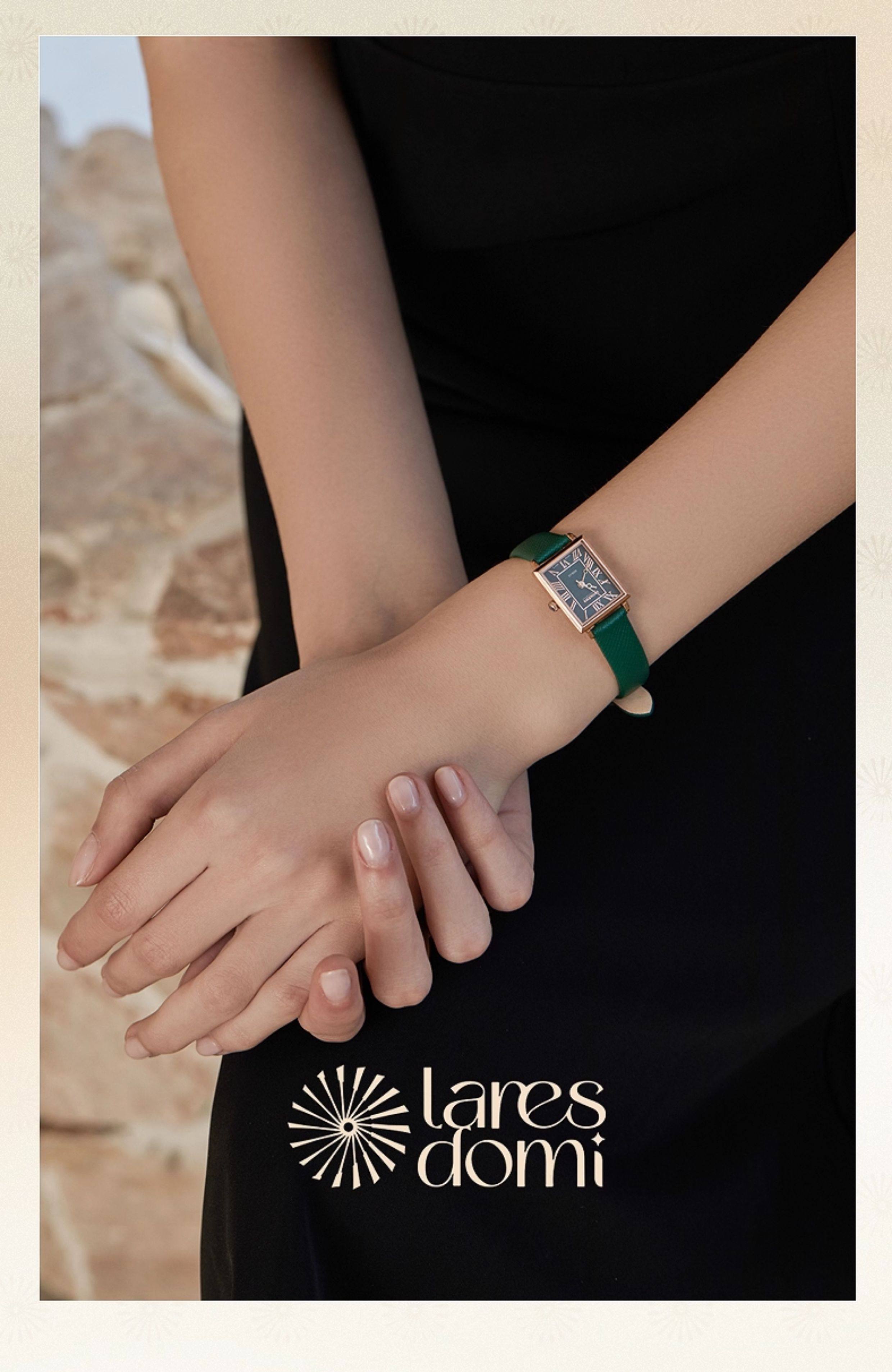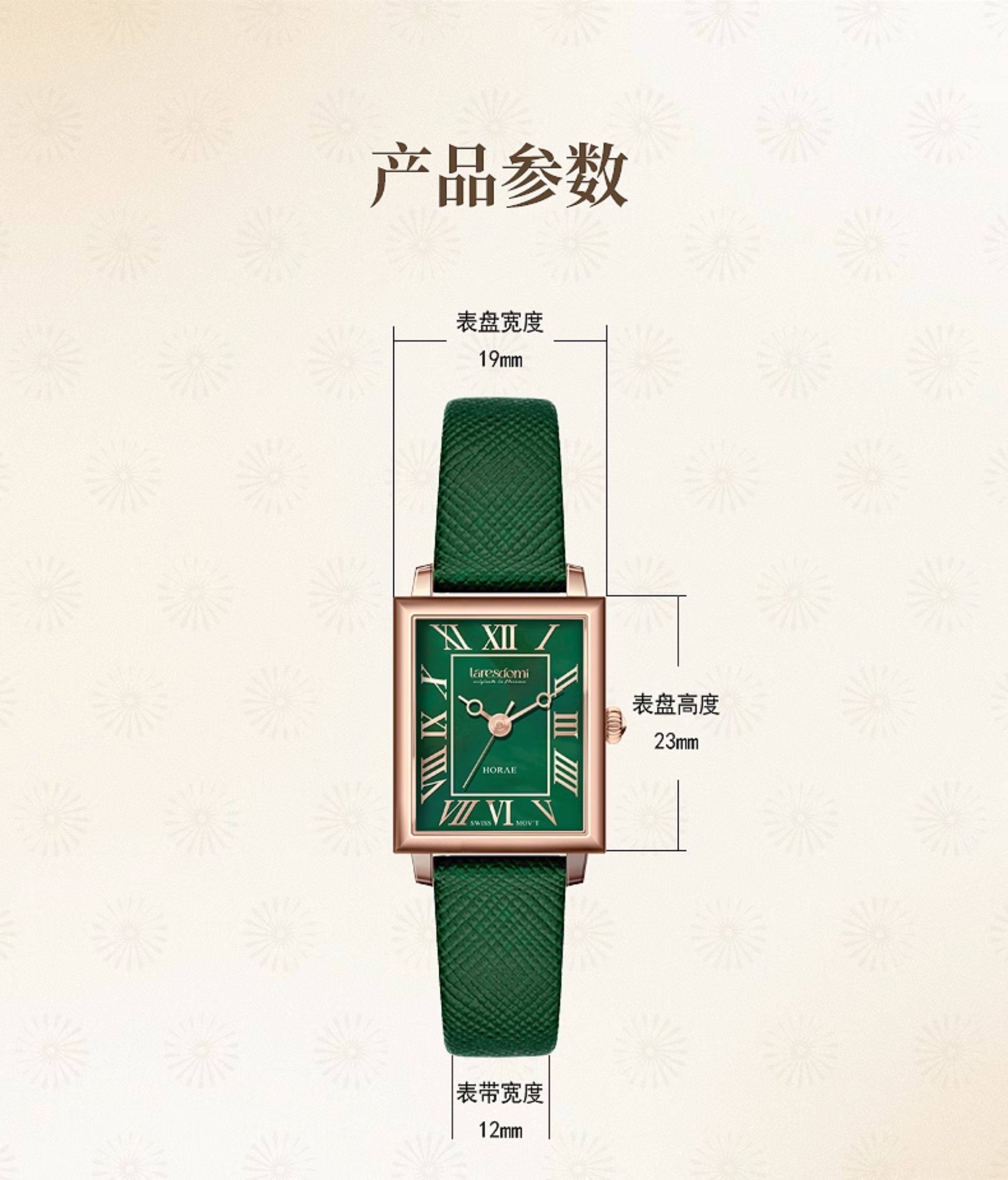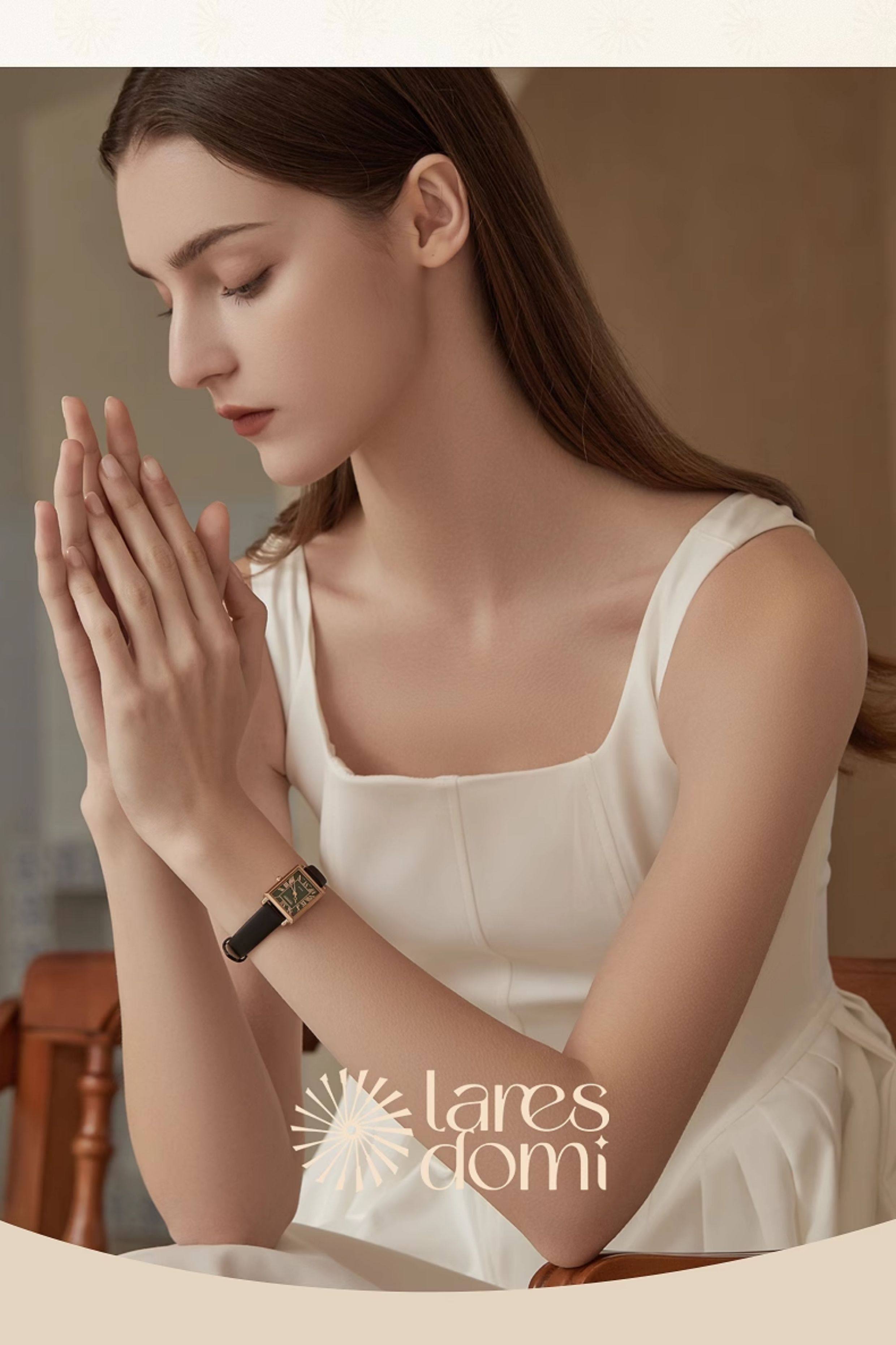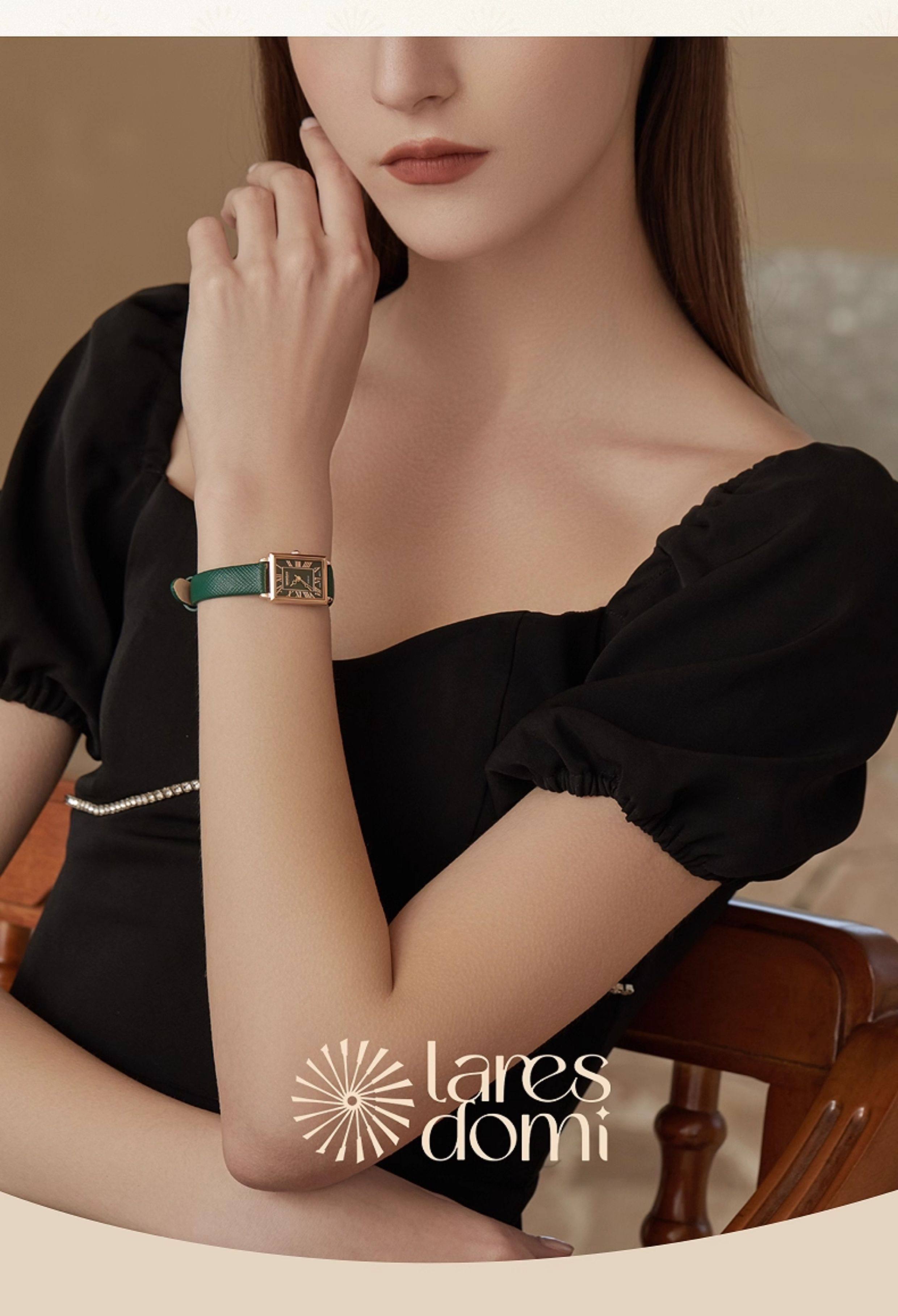 Laresdomi Laredo Mi Damenuhr, klein, grün, Retro-Quadrat, römisch, schlicht, Perlmutt, klassisch für Frühling und Sommer