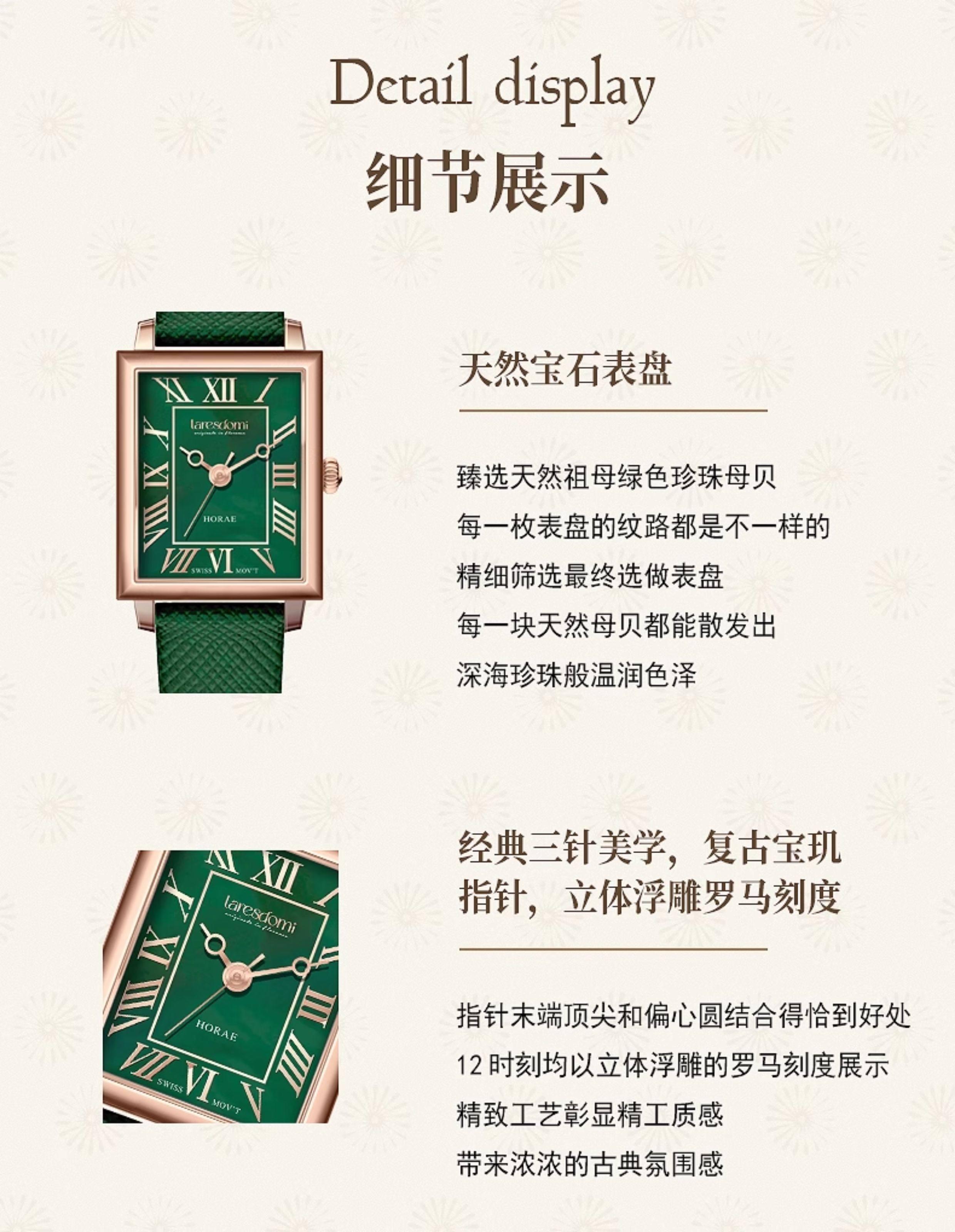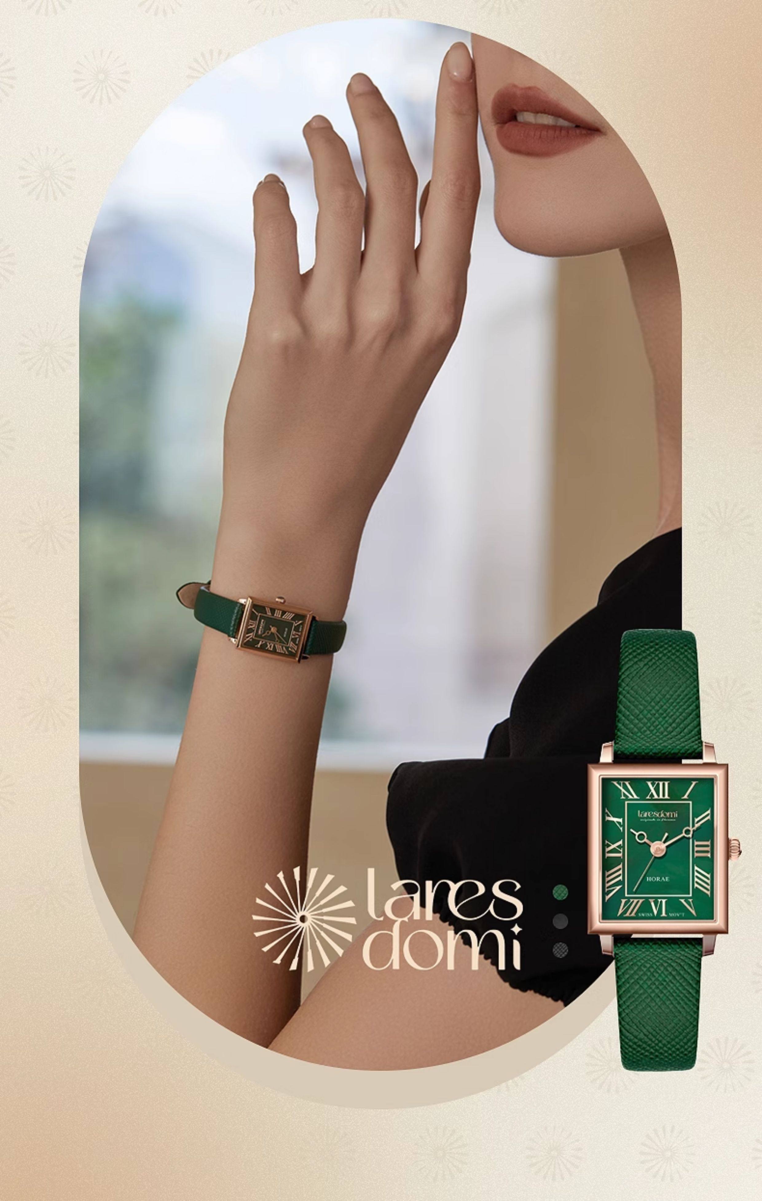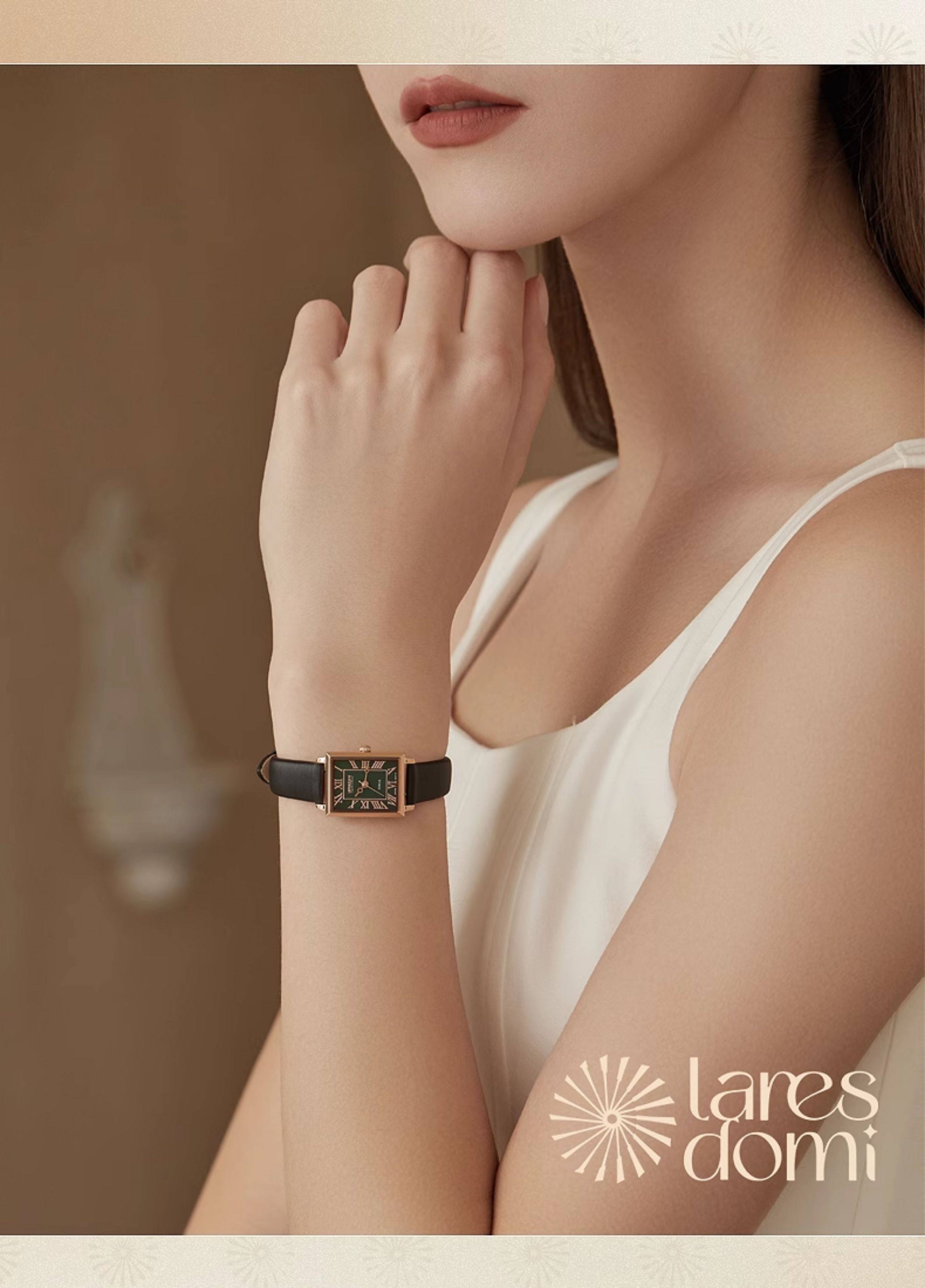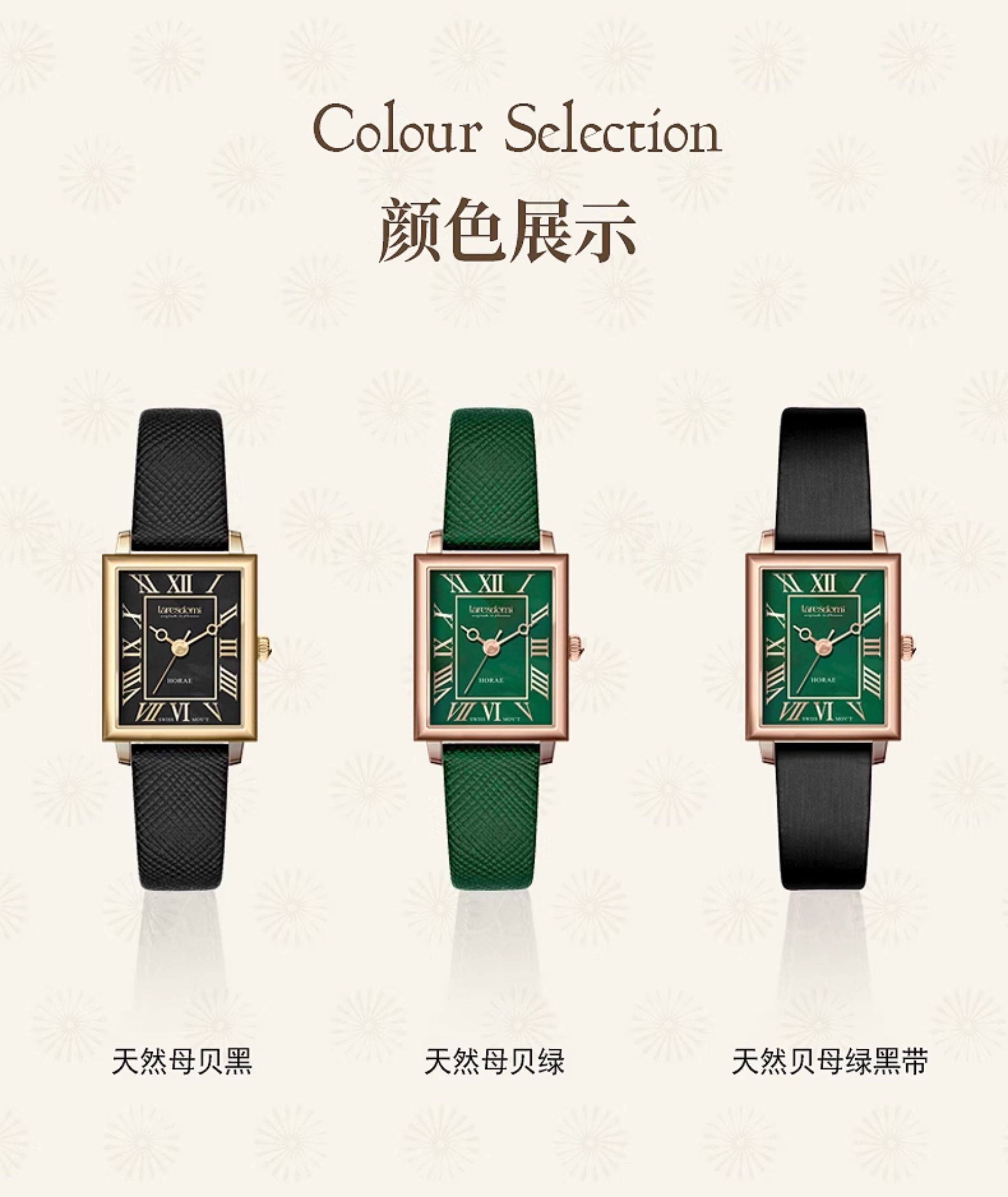 Laresdomi Laredo Mi Damenuhr, klein, grün, Retro-Quadrat, römisch, schlicht, Perlmutt, klassisch für Frühling und Sommer
