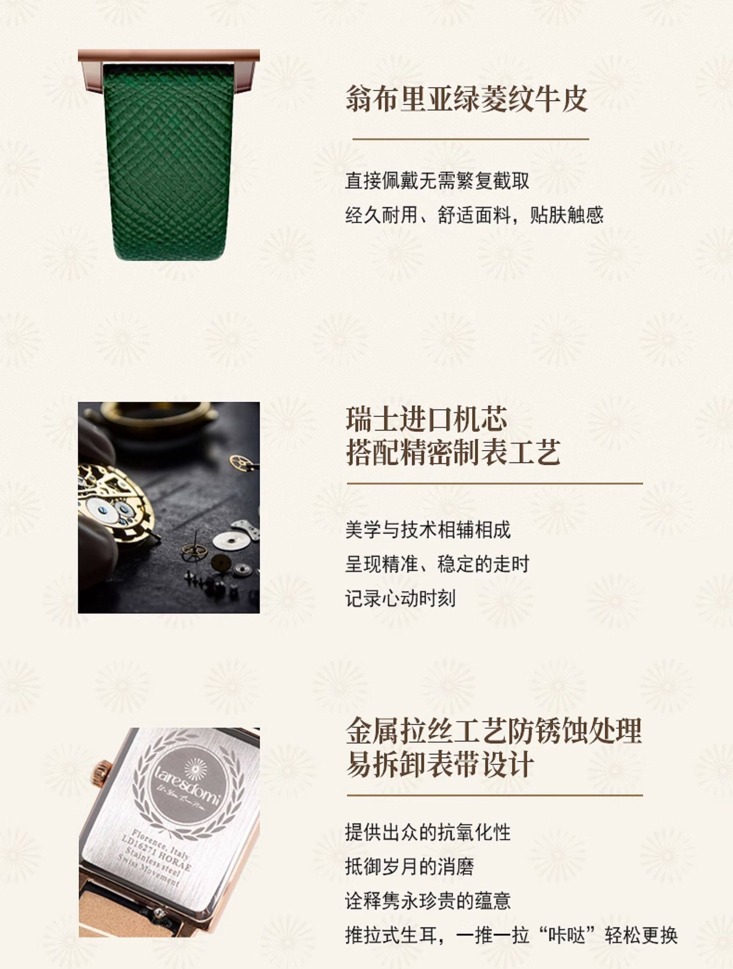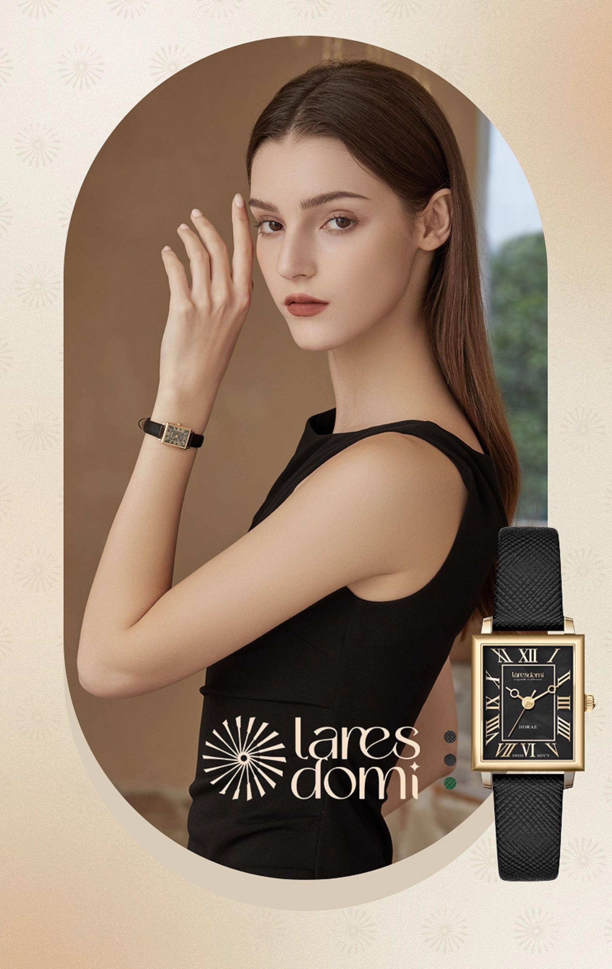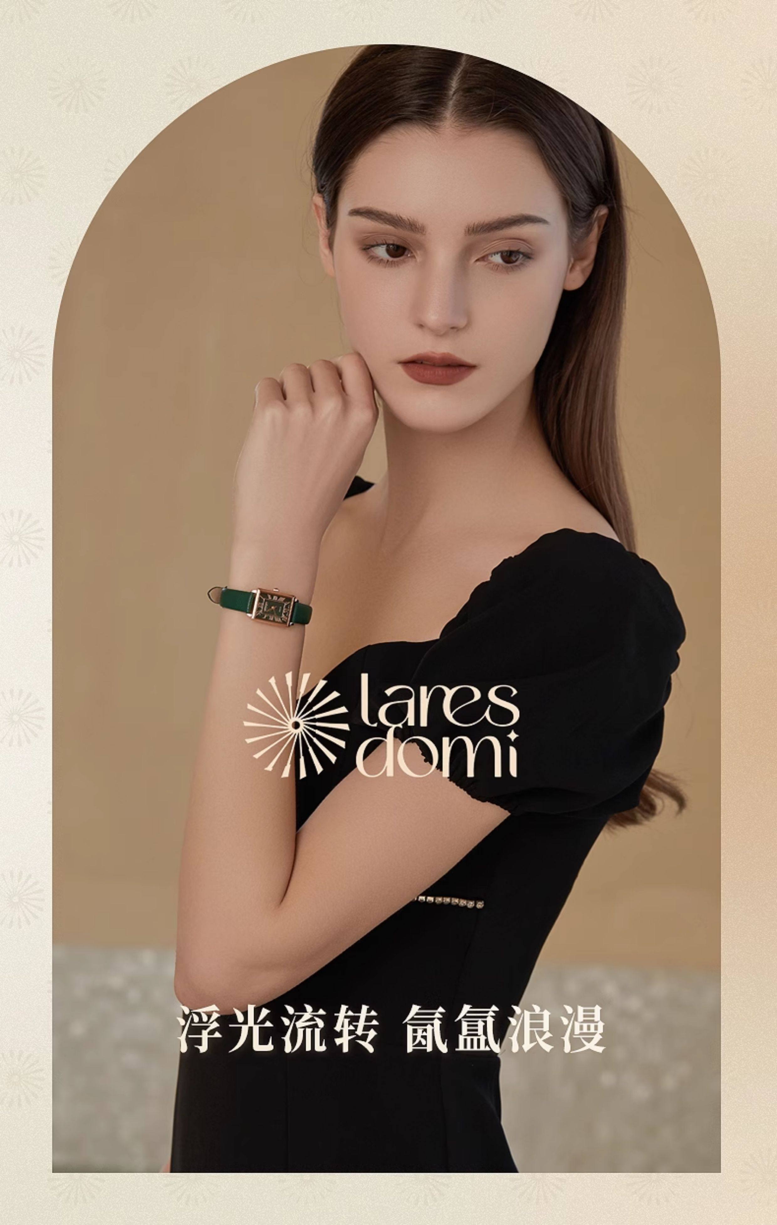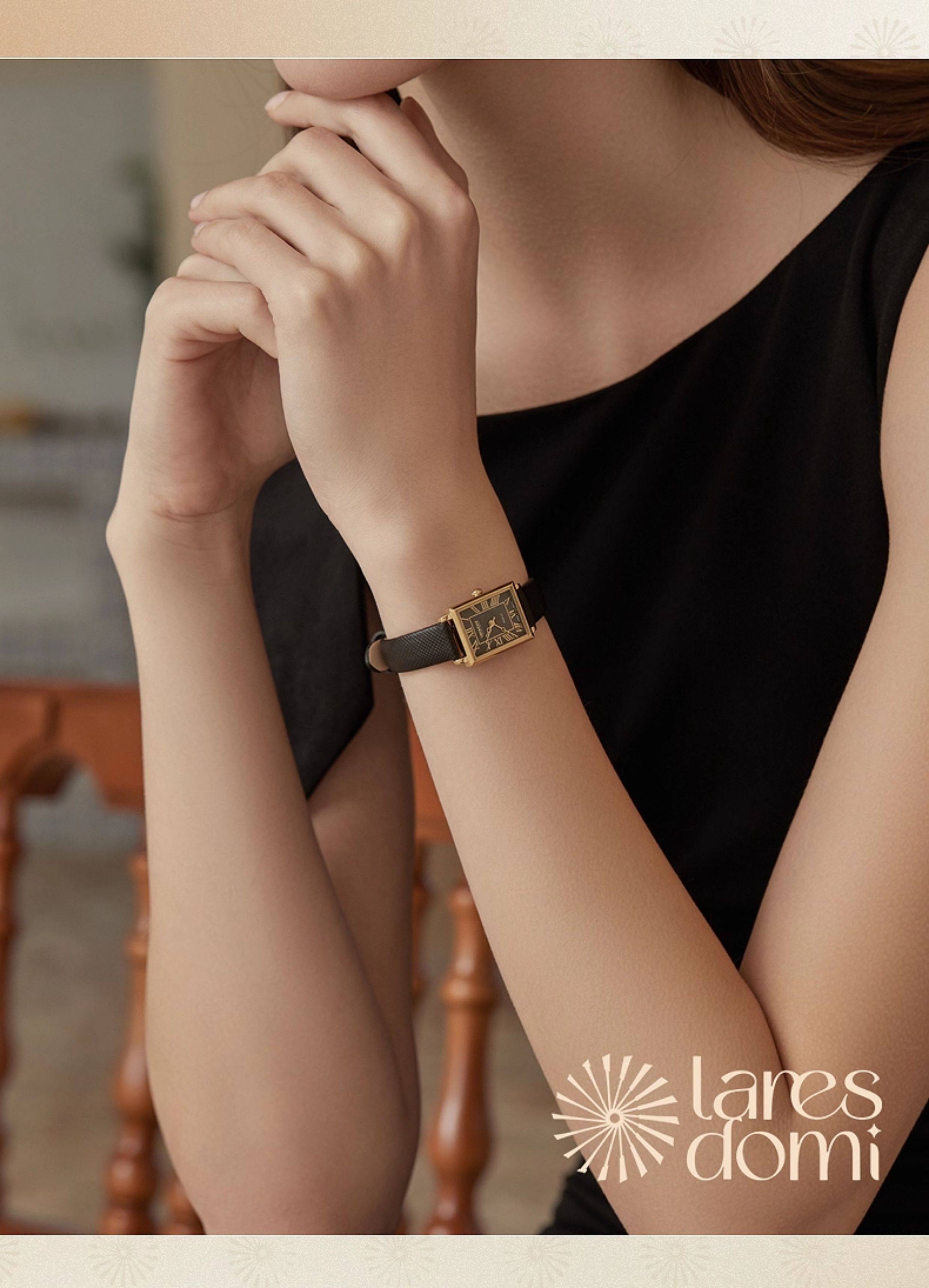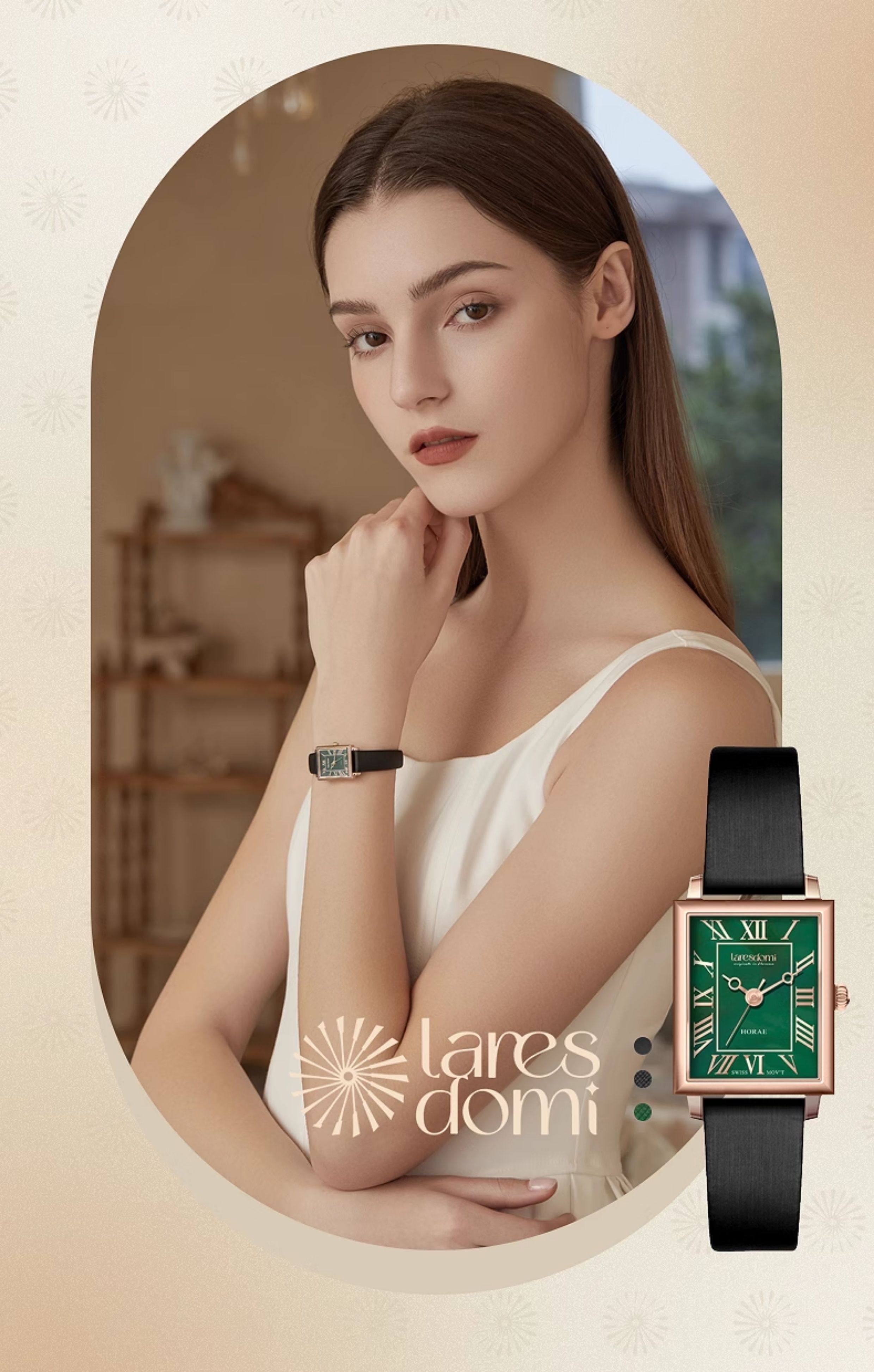 Laresdomi Laredo Mi Damenuhr, klein, grün, Retro-Quadrat, römisch, schlicht, Perlmutt, klassisch für Frühling und Sommer