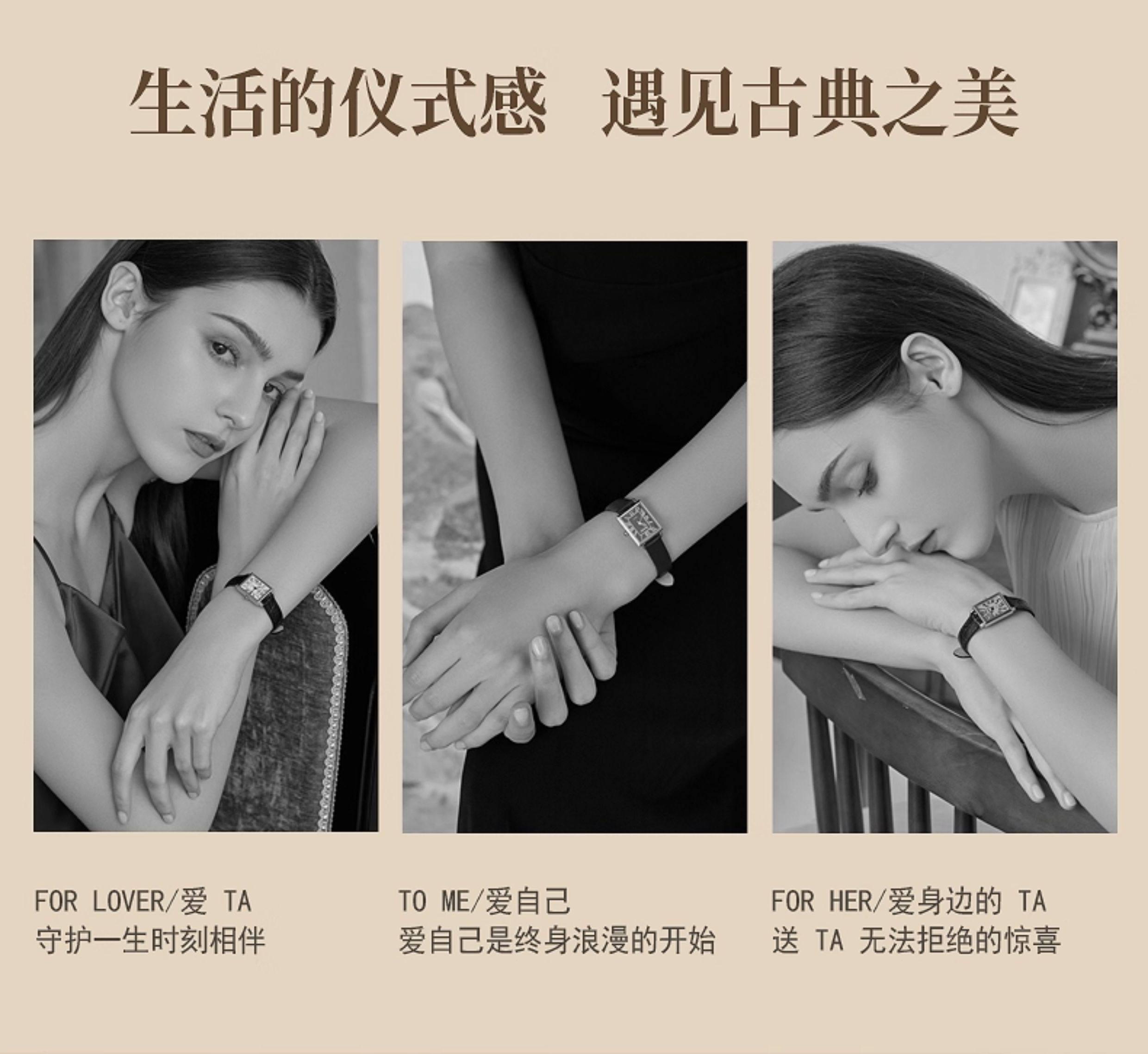 laresdomi拉芮杜谜美拉德风女士手表方形腕表轻奢小金砖新年礼物