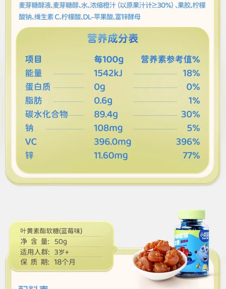 小鹿蓝蓝水果软糖宝宝零食儿童糖果叶黄素高锌营养送无添加辅食谱