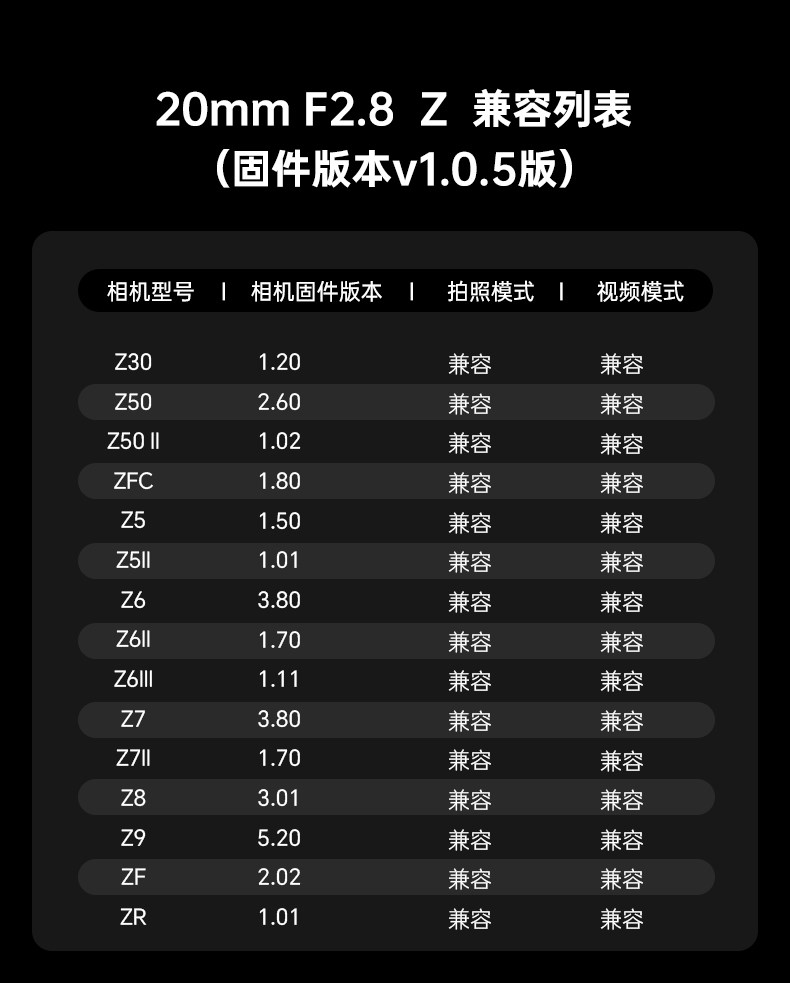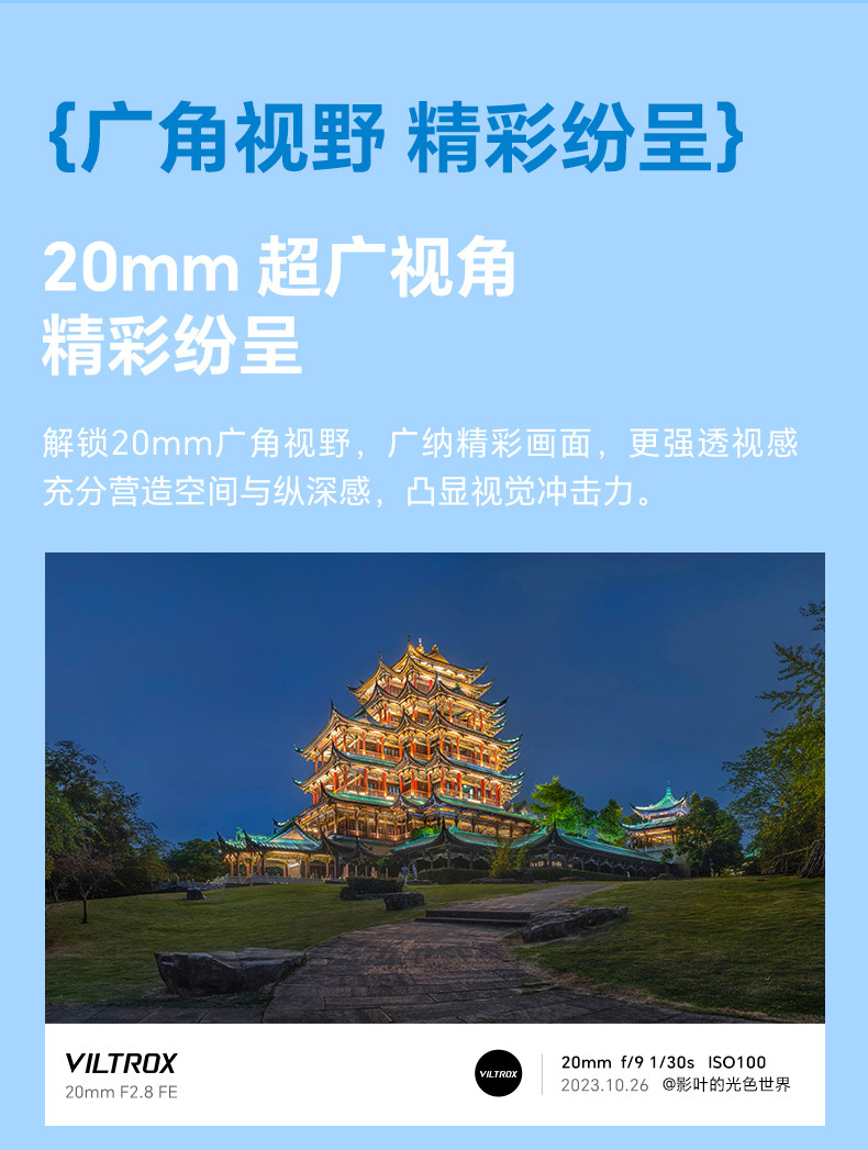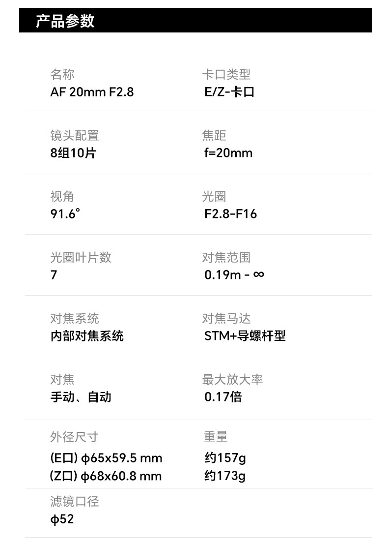 唯卓仕20mm F2.8全画幅广角定焦镜头适用E/Z卡口微单相机自动对焦