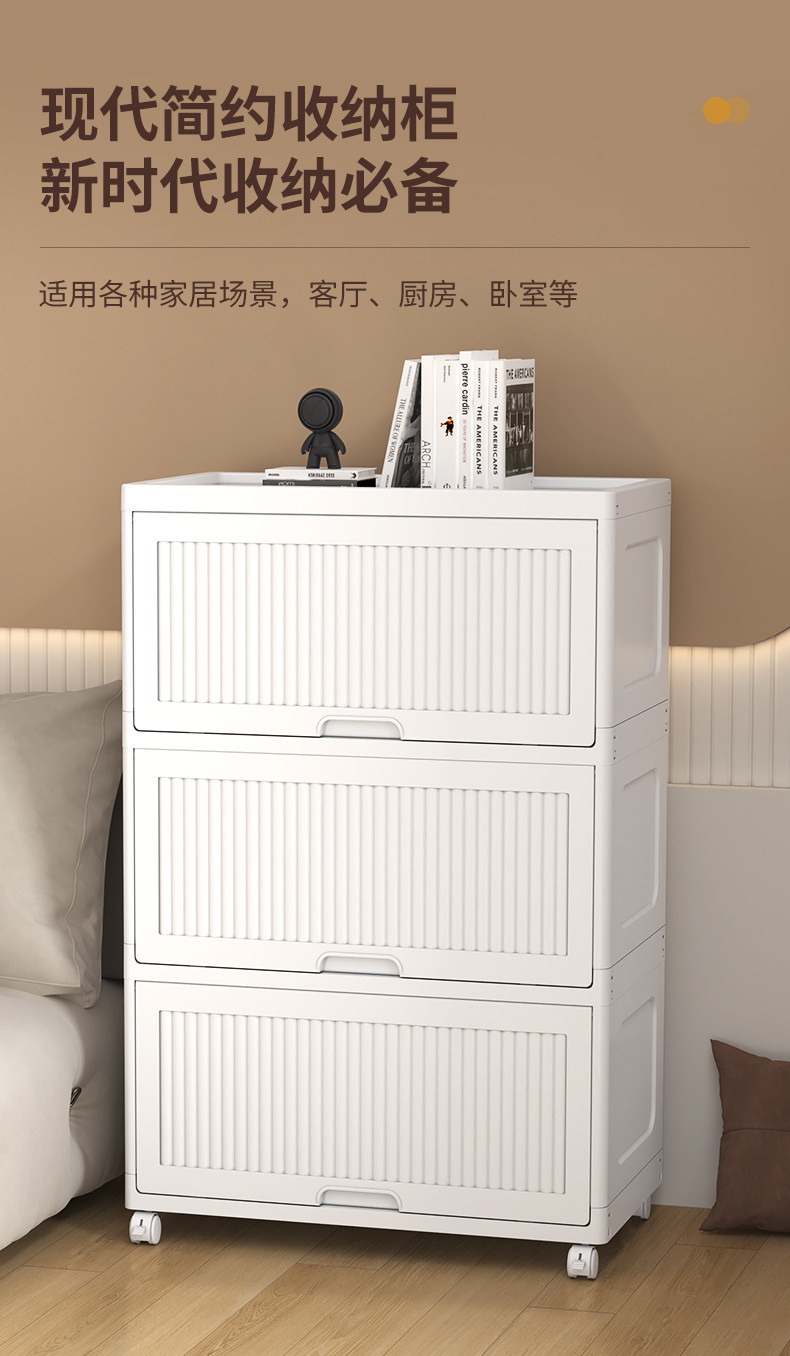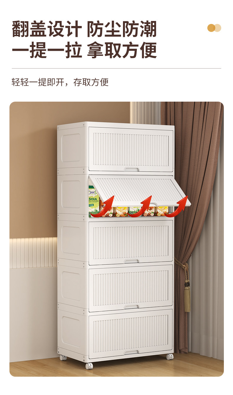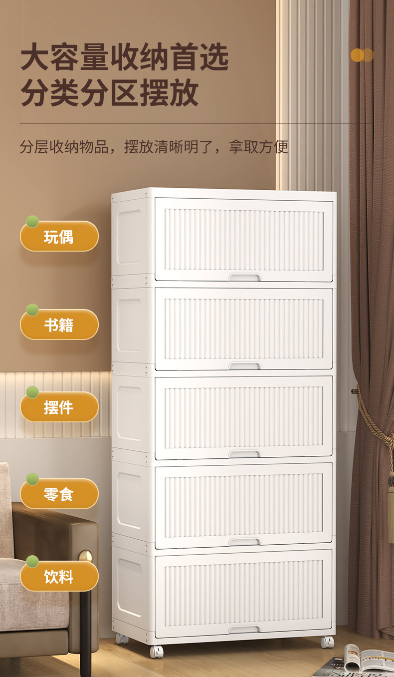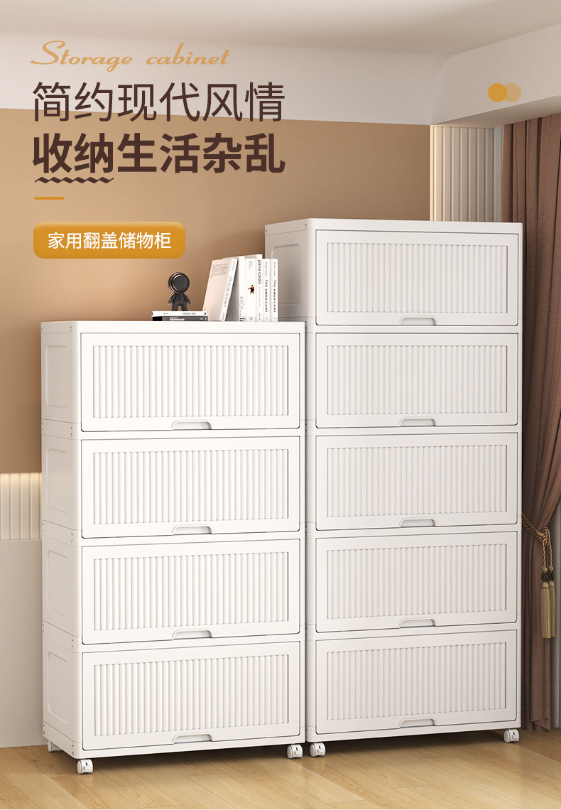 Flip-Top Storage Cabinet, Household Living Room Toy and Snack Plastic Storage Cabinet, Children's Baby Folding Wardrobe