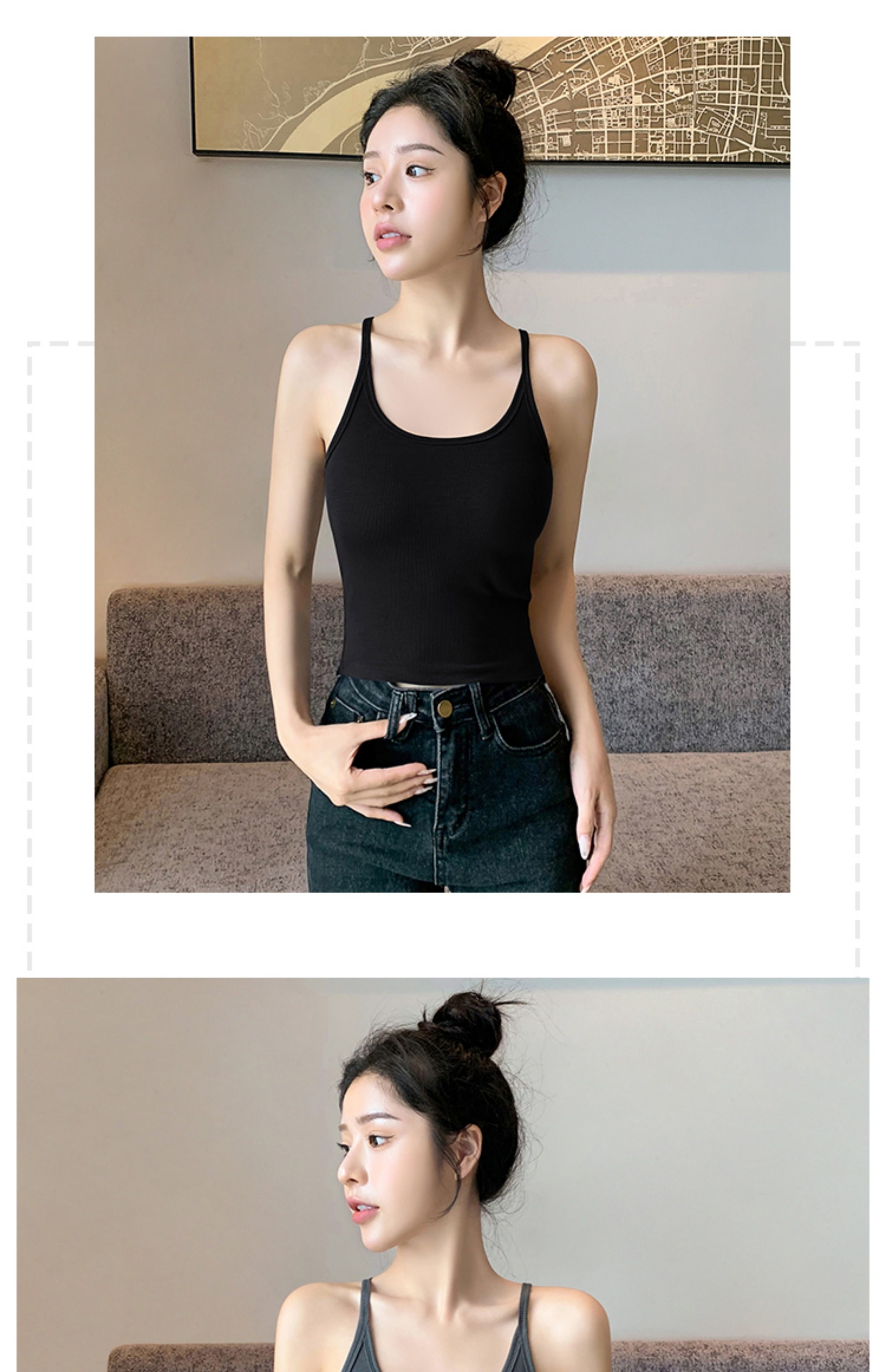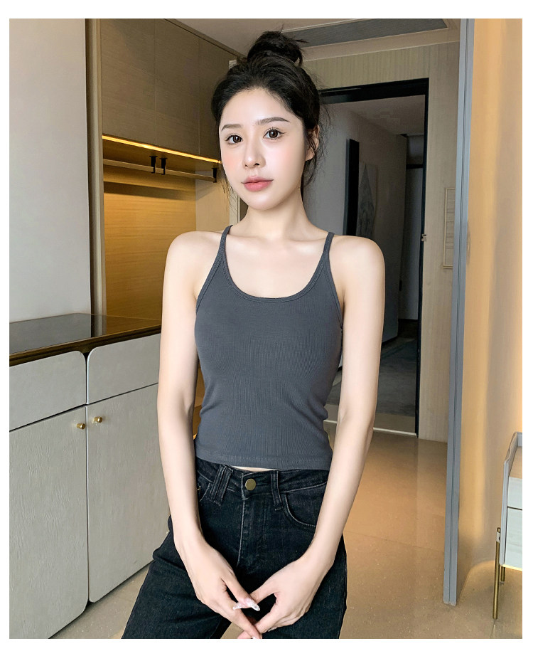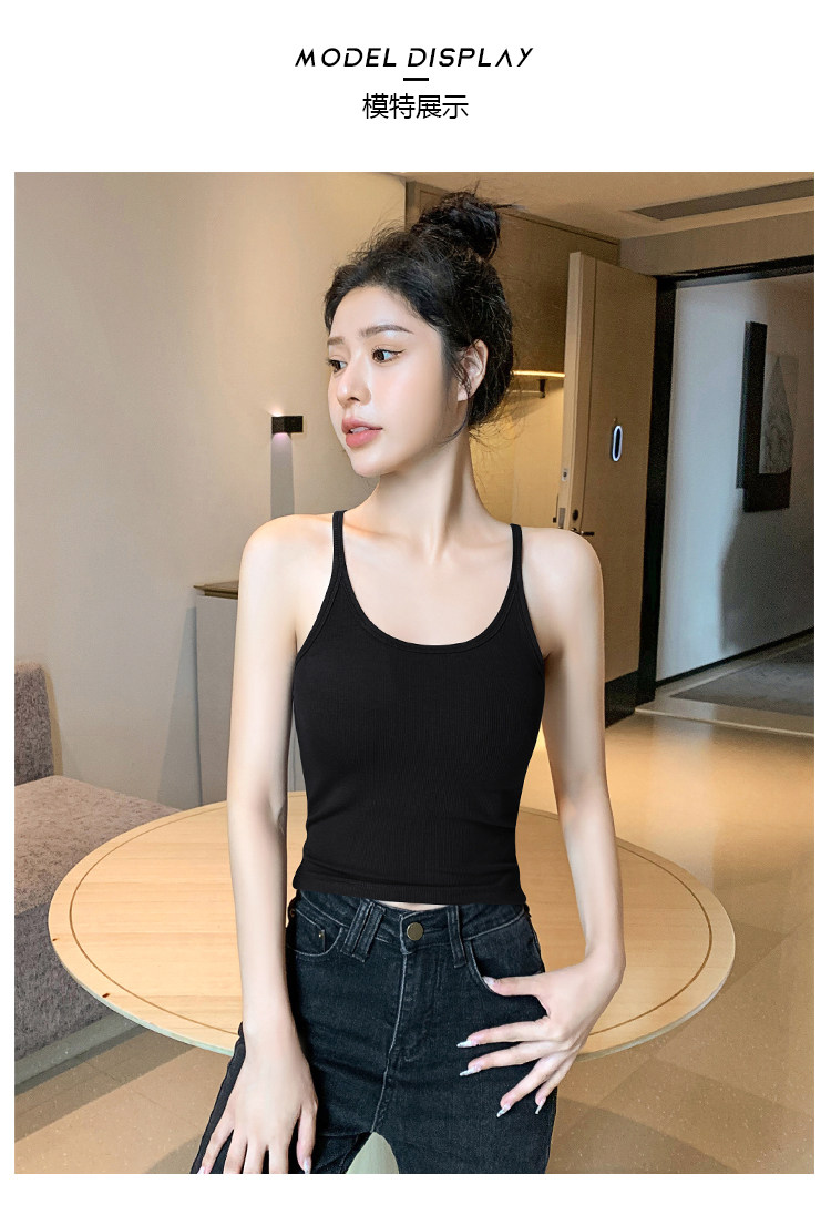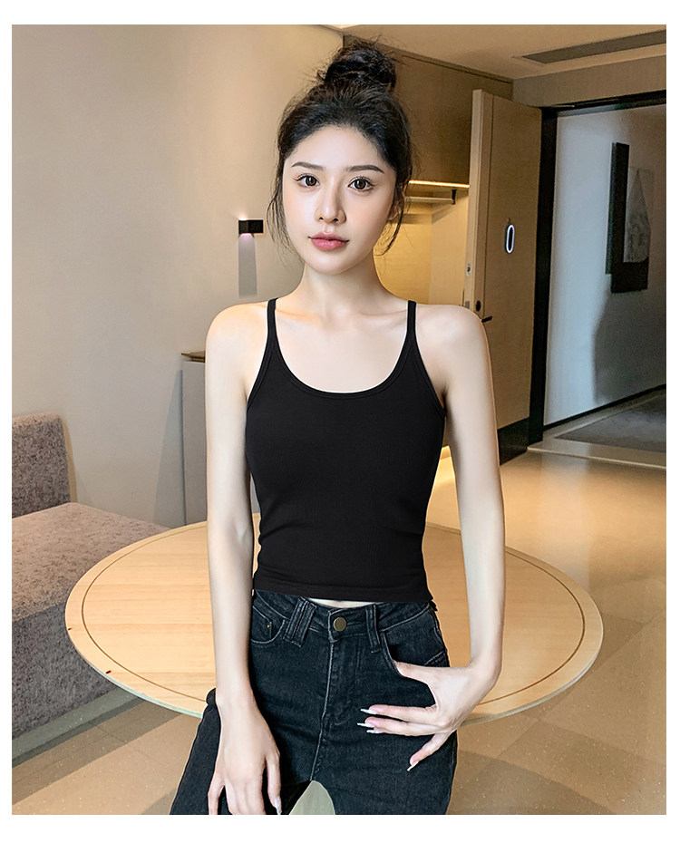 Black Halter Neck Camisole for Women, 2026 New Summer Style, Outerwear Knit Top with Beautiful Back Design and Chest Pads