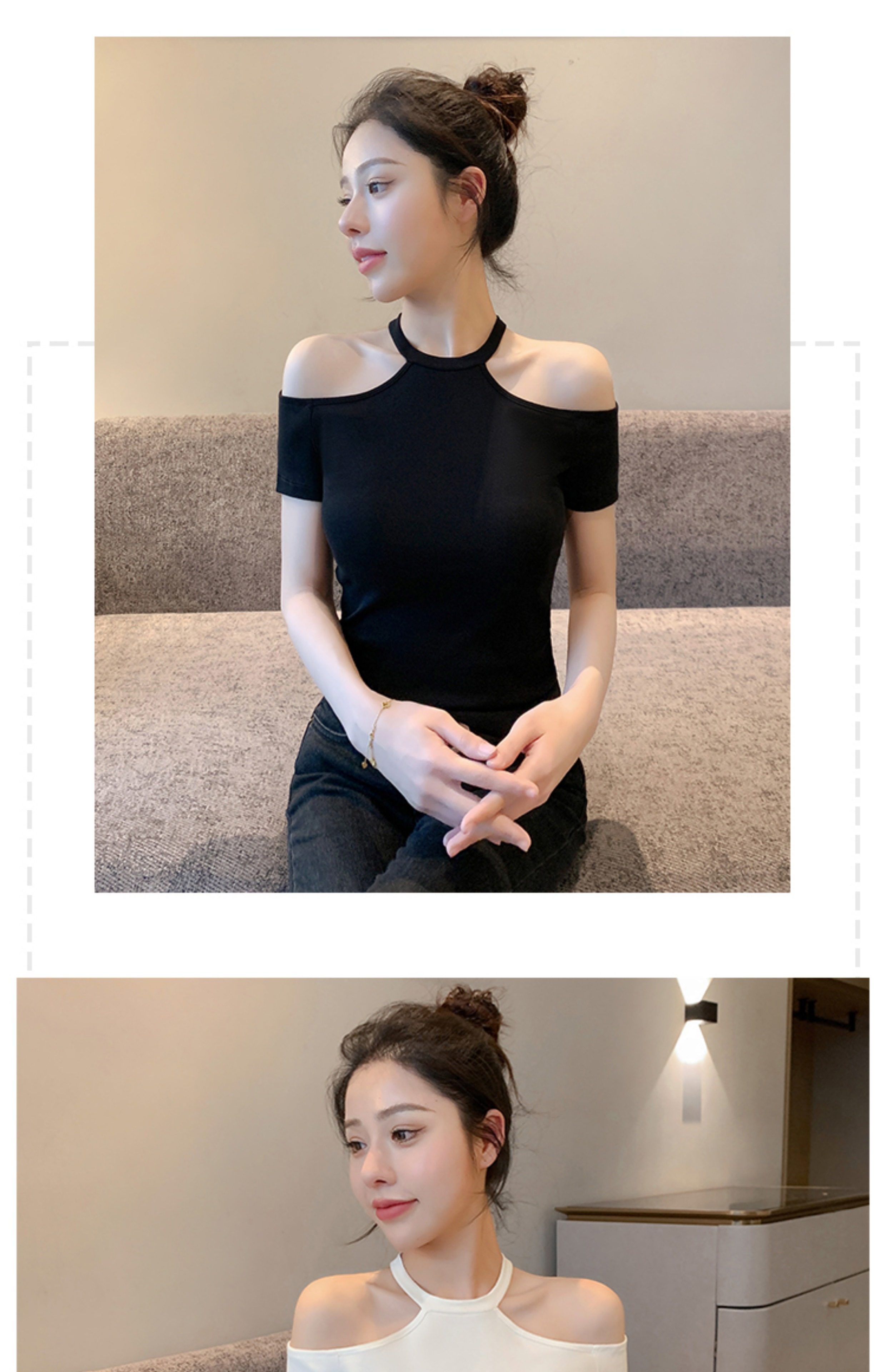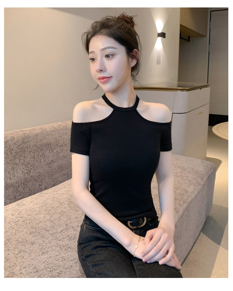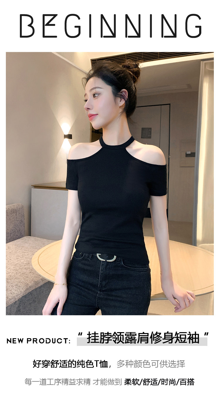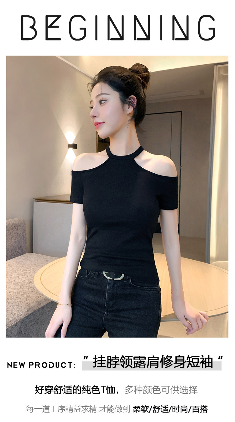Black Halter Neck Off-Shoulder Top for Women, Summer Design, Slim-Fit Short-Sleeve T-Shirt, 2026 New Style, Off-Shoulder Neckline with a High-End Feel